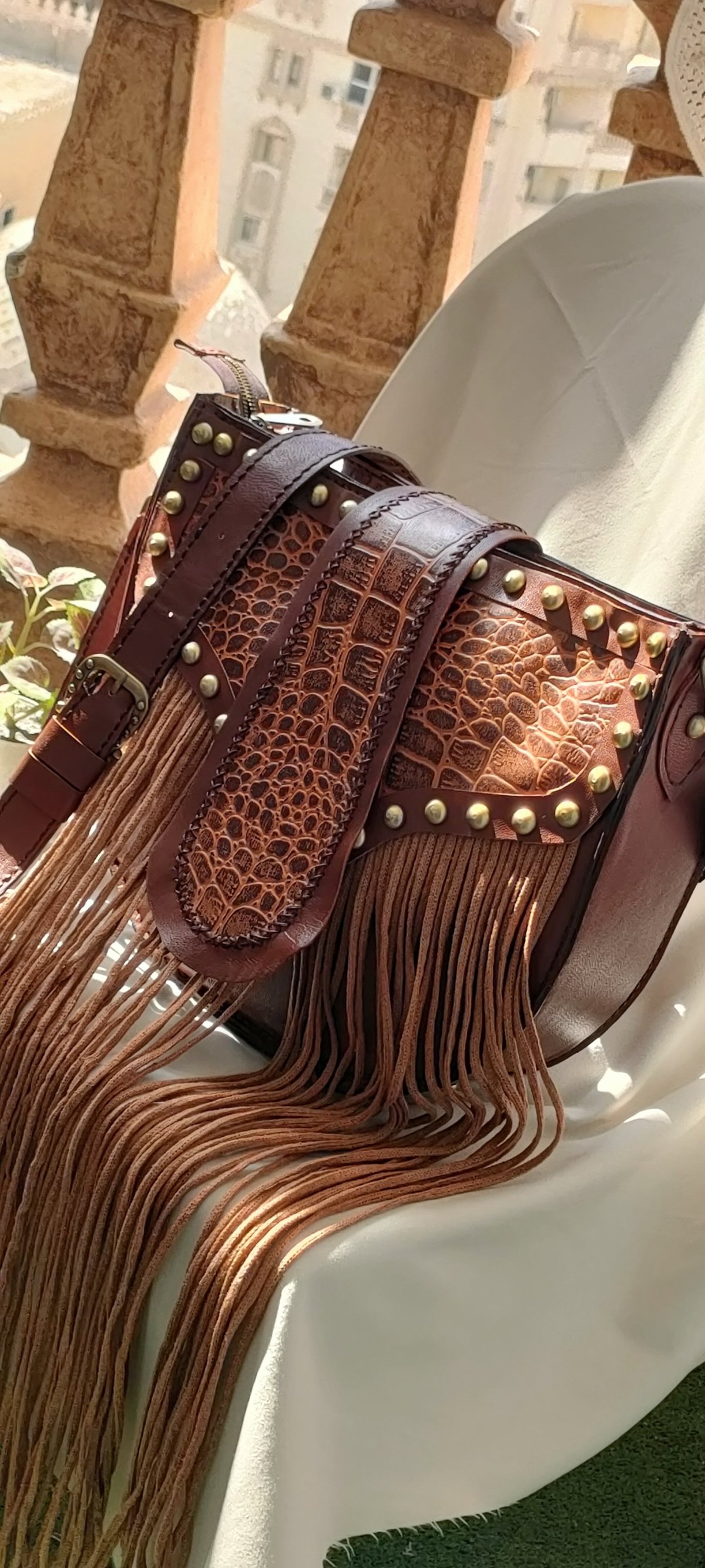 شنطة حريمى جلد طبيعي مقاس ٣٠*٣٤ سم تقريبا سوستة وجيب خارجى