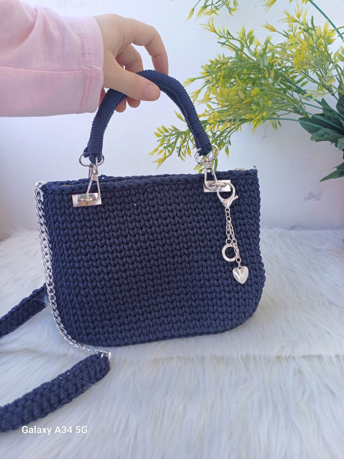 شنطة يد كروشية مصنوعه بأجود أنواع الخيوط القابلة للغسيل ،٣٠*٣٠سم ،بها حزام كروشية بطول متر و٢ سلسلة معدن تستخدم فى زيادة طول الحزام متوفر منها ألوان (الأبيض والأسود والكافيه والنبيتى والأخضر والبيج )