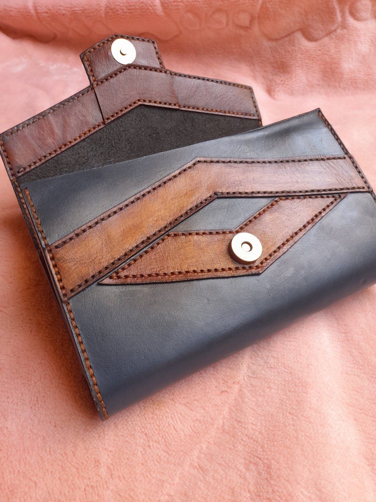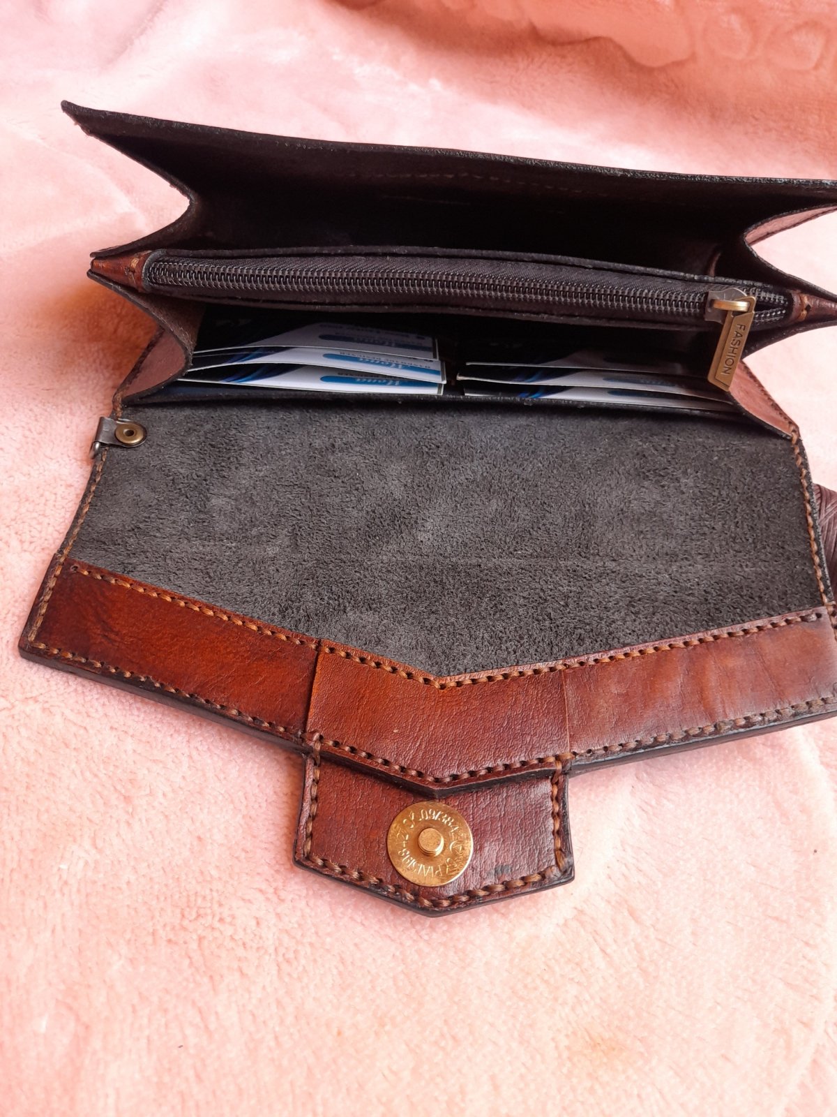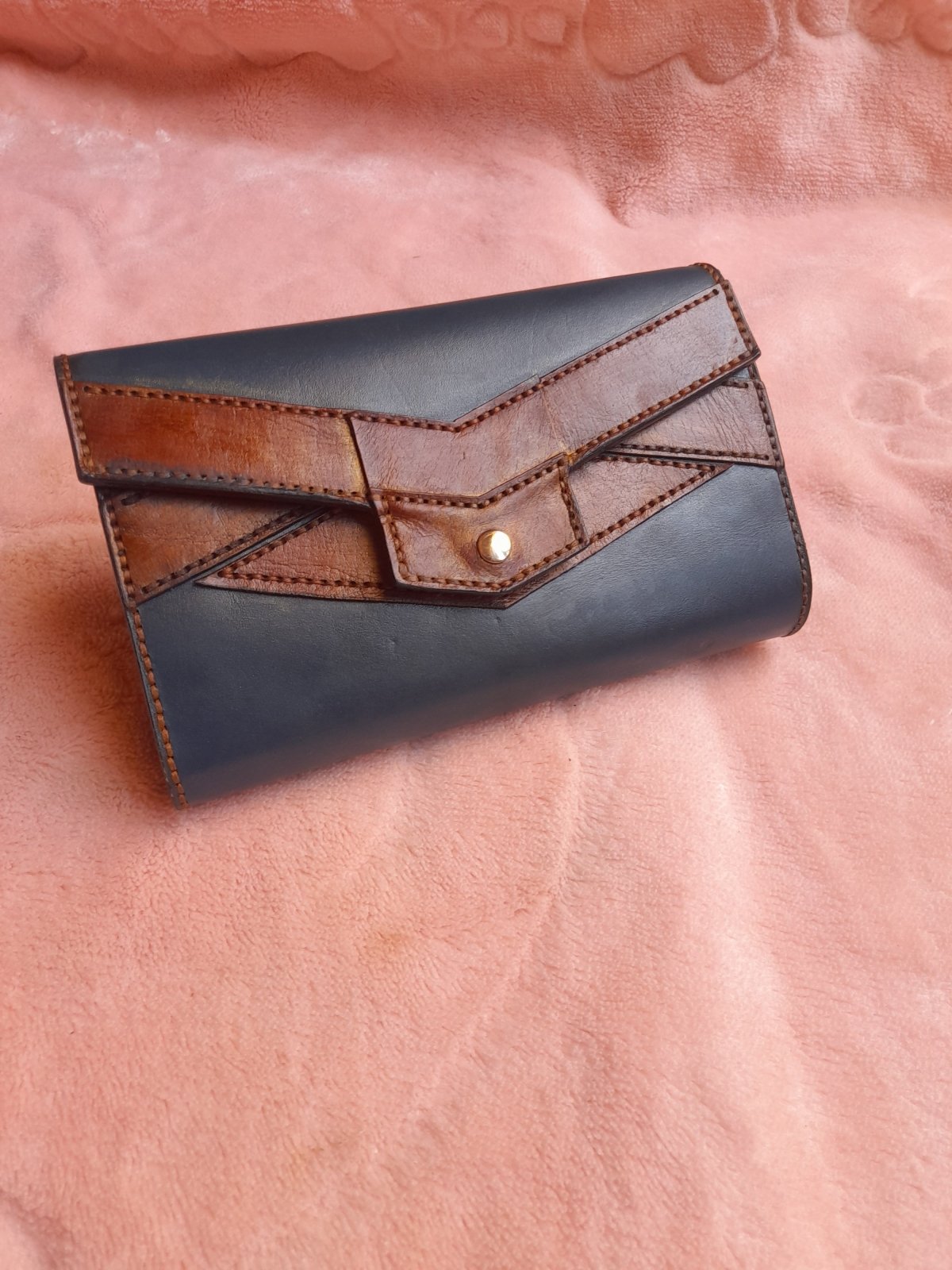 بورتفيه حريمي جلد طبيعي هاند ميد مقاسها 20×12تصميم مميز يشيل 2 موبيل وعدد كتير من كروت وجيب للعمله الورقيه والعمله فضيه