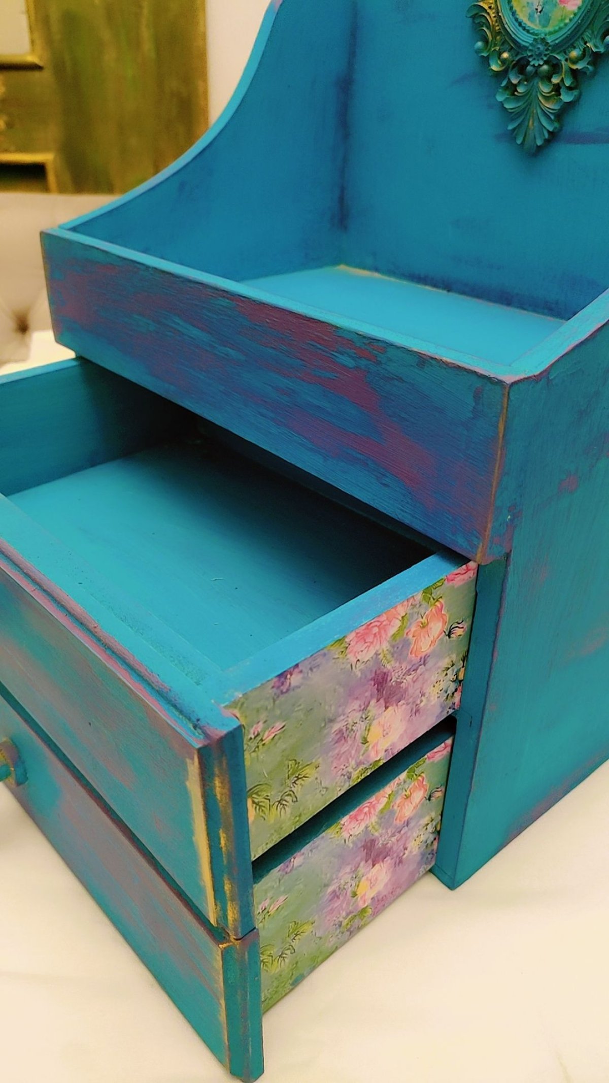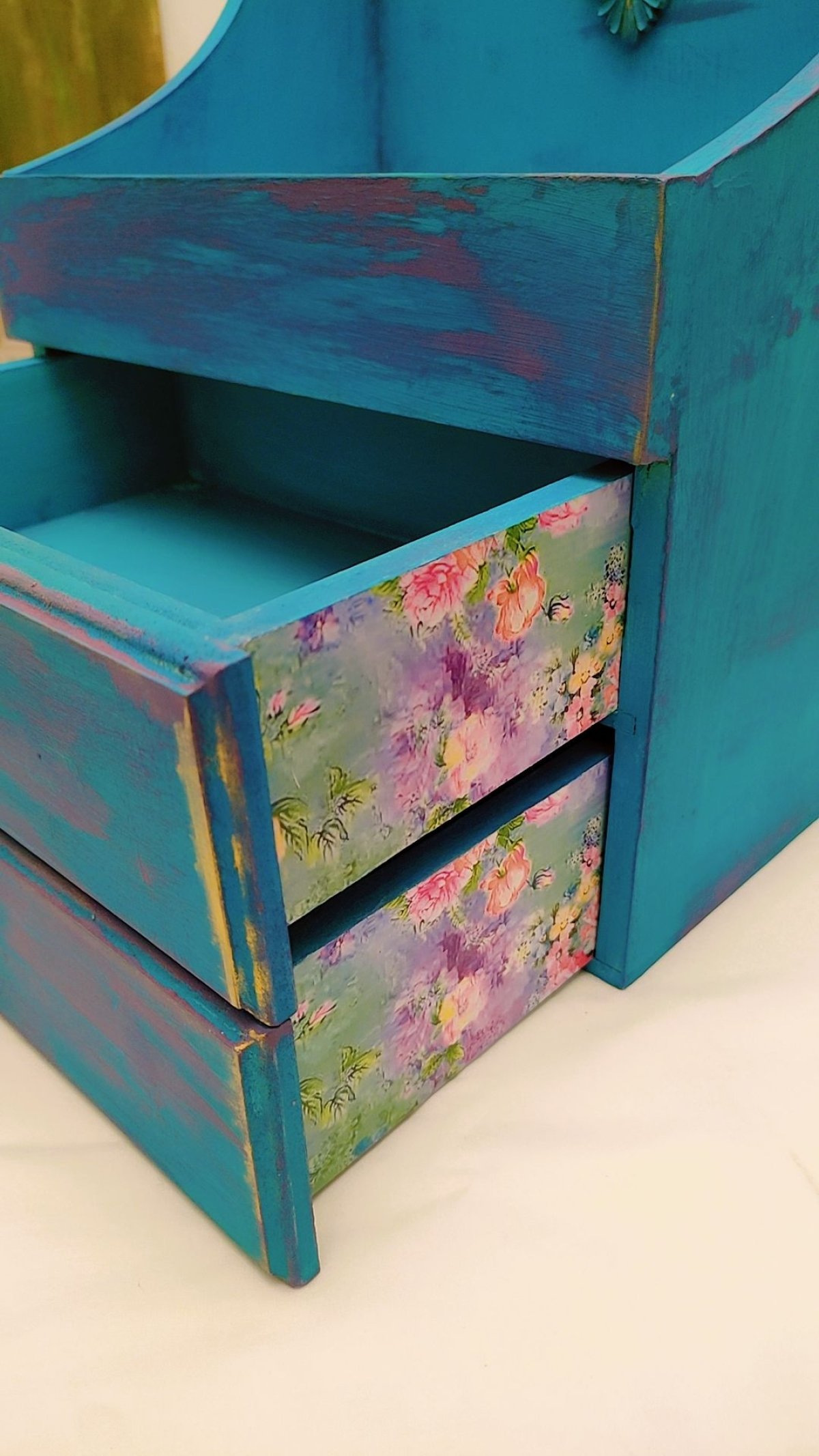 تقنية الديكوباج تضيف لمسة من الإبداع والشخصية إلى منظم مستحضرات التجميل، حيث يمكن تحويل منظم بسيط إلى قطعة فنية فريدة من نوعها ،تعبر عن شخصيتك كما تعتبر بمثابة هدية مميزة وفريدة للأصدقاء