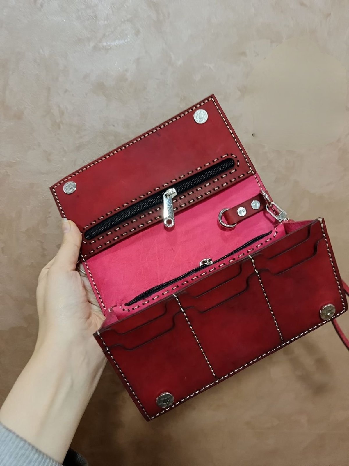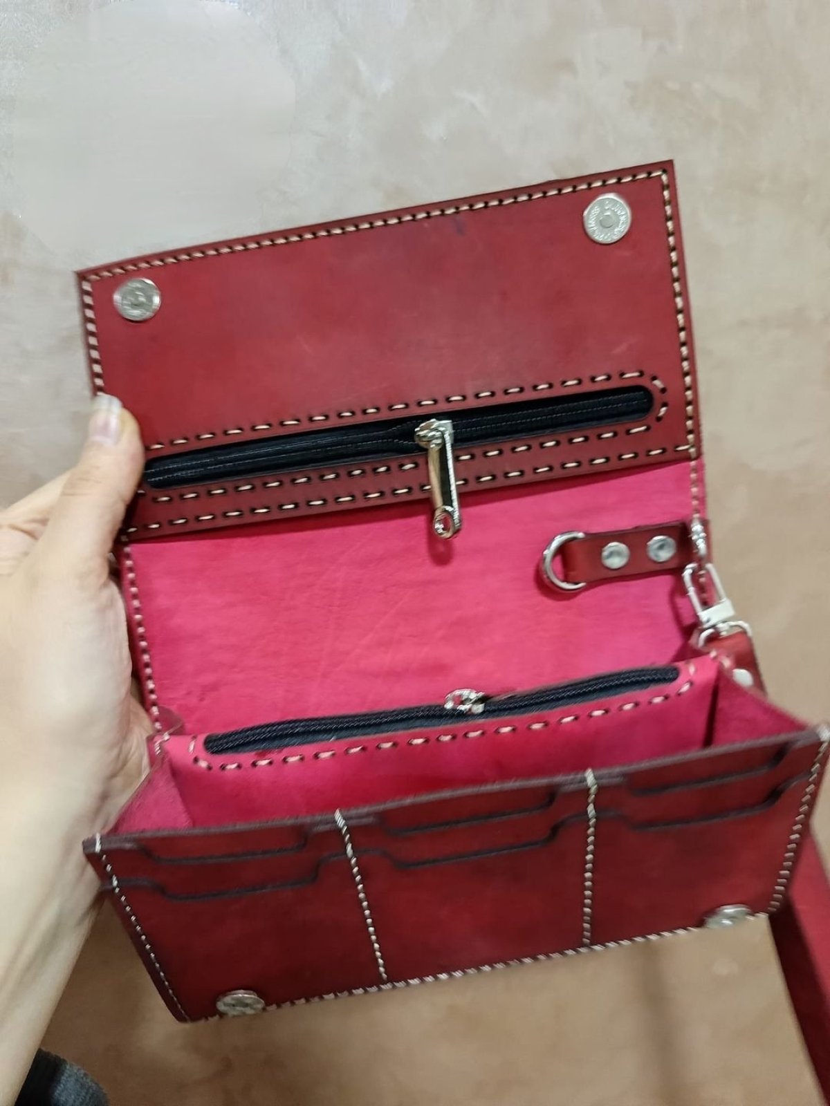 شنطه يد جلد بقري بالكامل متبطنه جلد ماعز مقاس 11*20 متاح تنفيذ اي لون