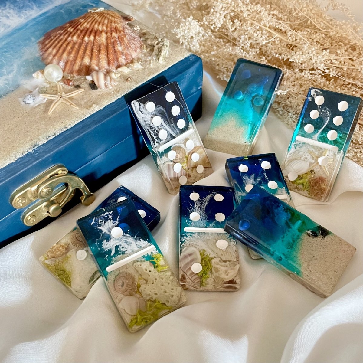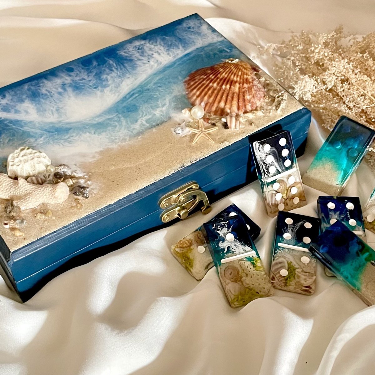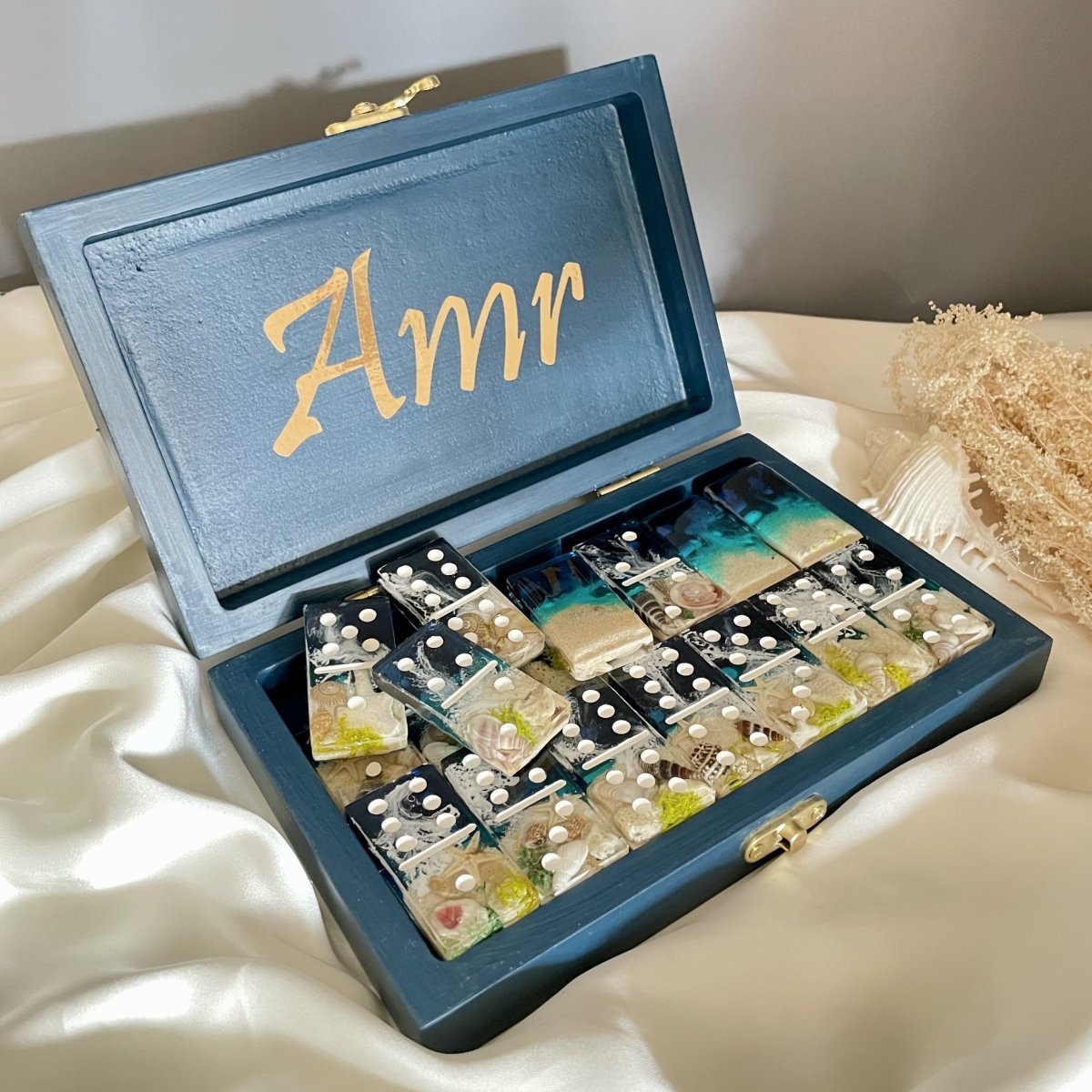 لعبه الدومينو بالريزن مع البوكس والاسم ، غطاء البوكس متغطي ريزن بشكل البحر