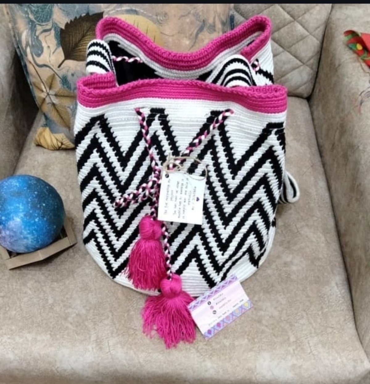 شنطة مصنوعة يدويا ع شكل الزجزاجَ الخيوط الاكليرك