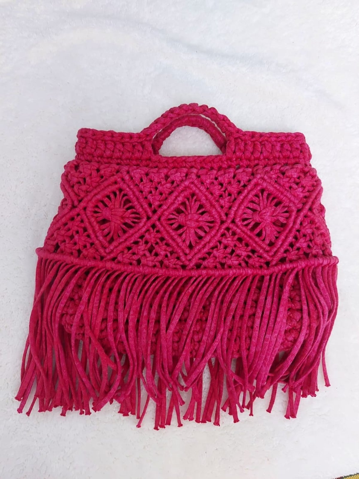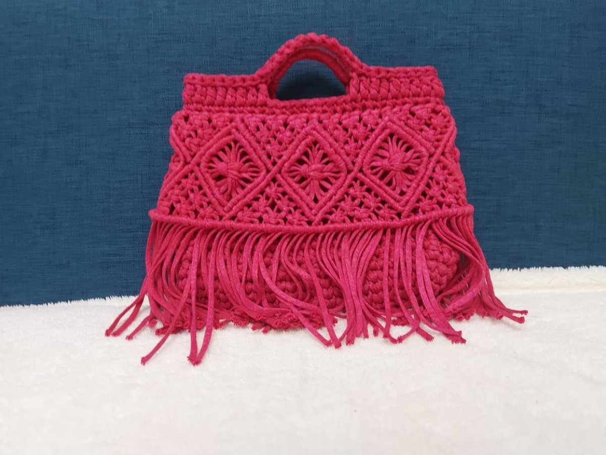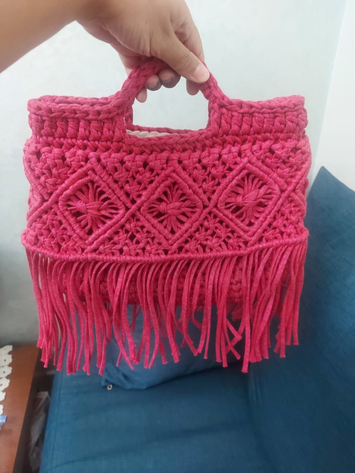 شنطه مزيج بشغل الكروشيه وعقد المكرمية جميله وعمليه وتناسب اي مناسبه