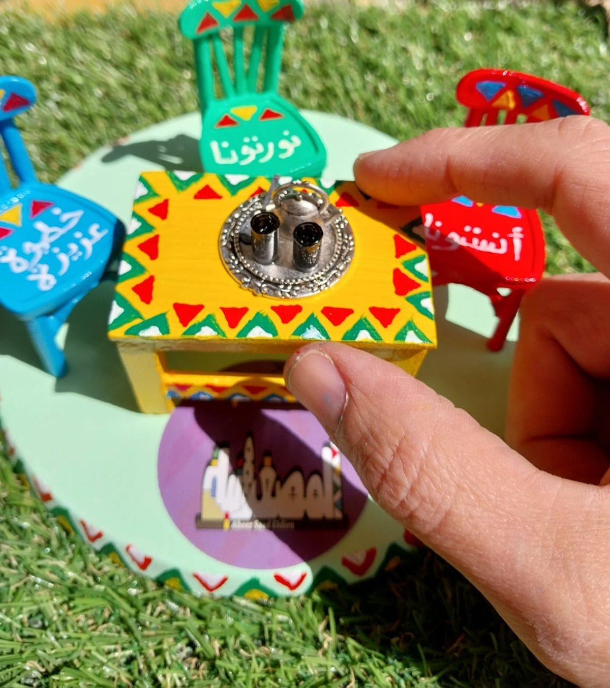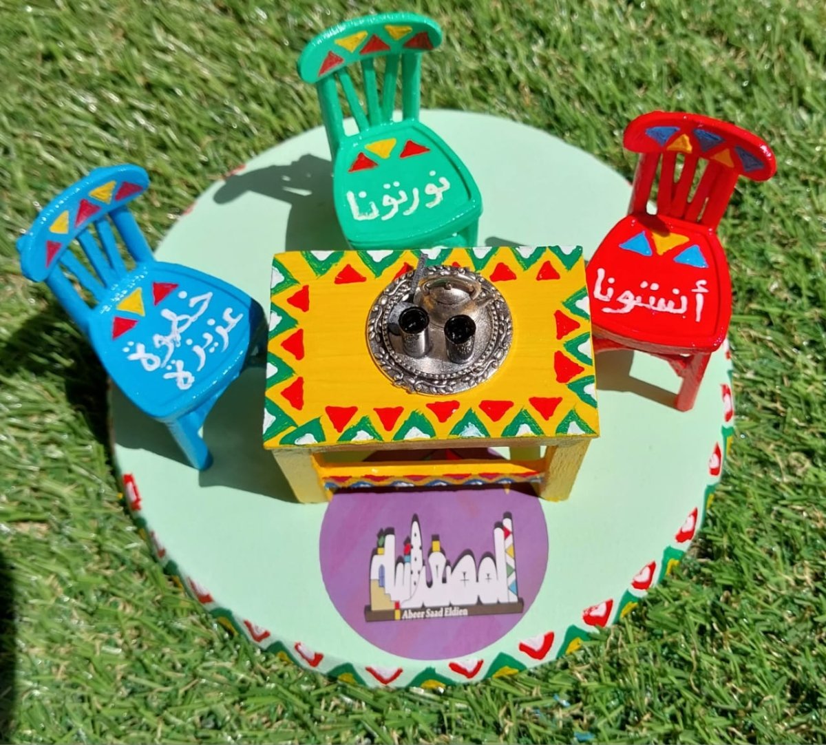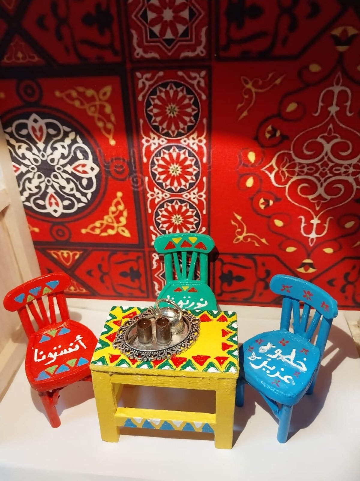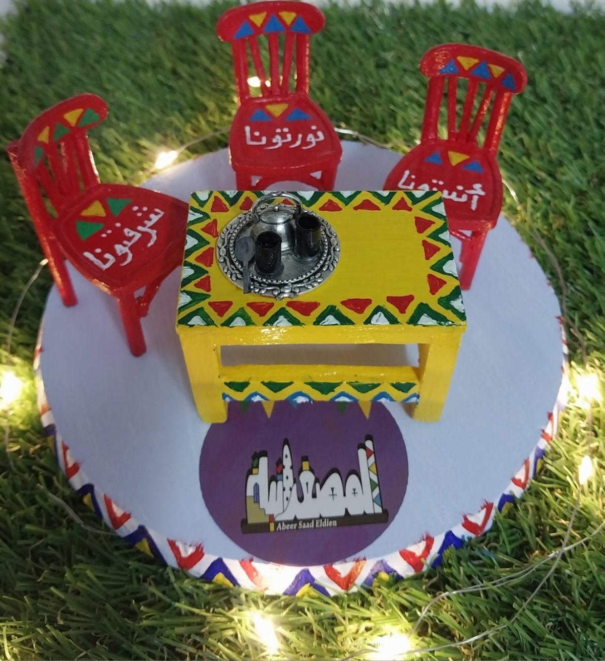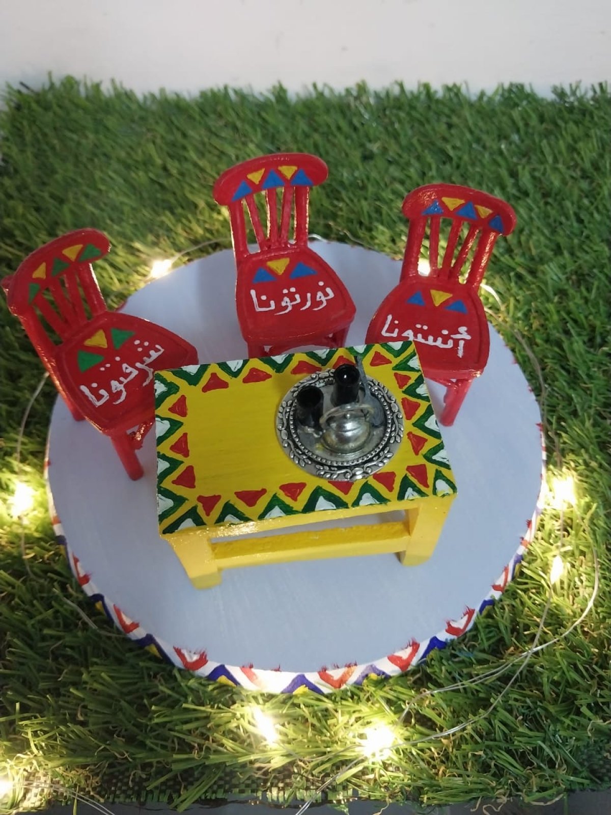 عدد٣ كرسى وترابيزة وصينية شاى و٢ كوباية وبراد