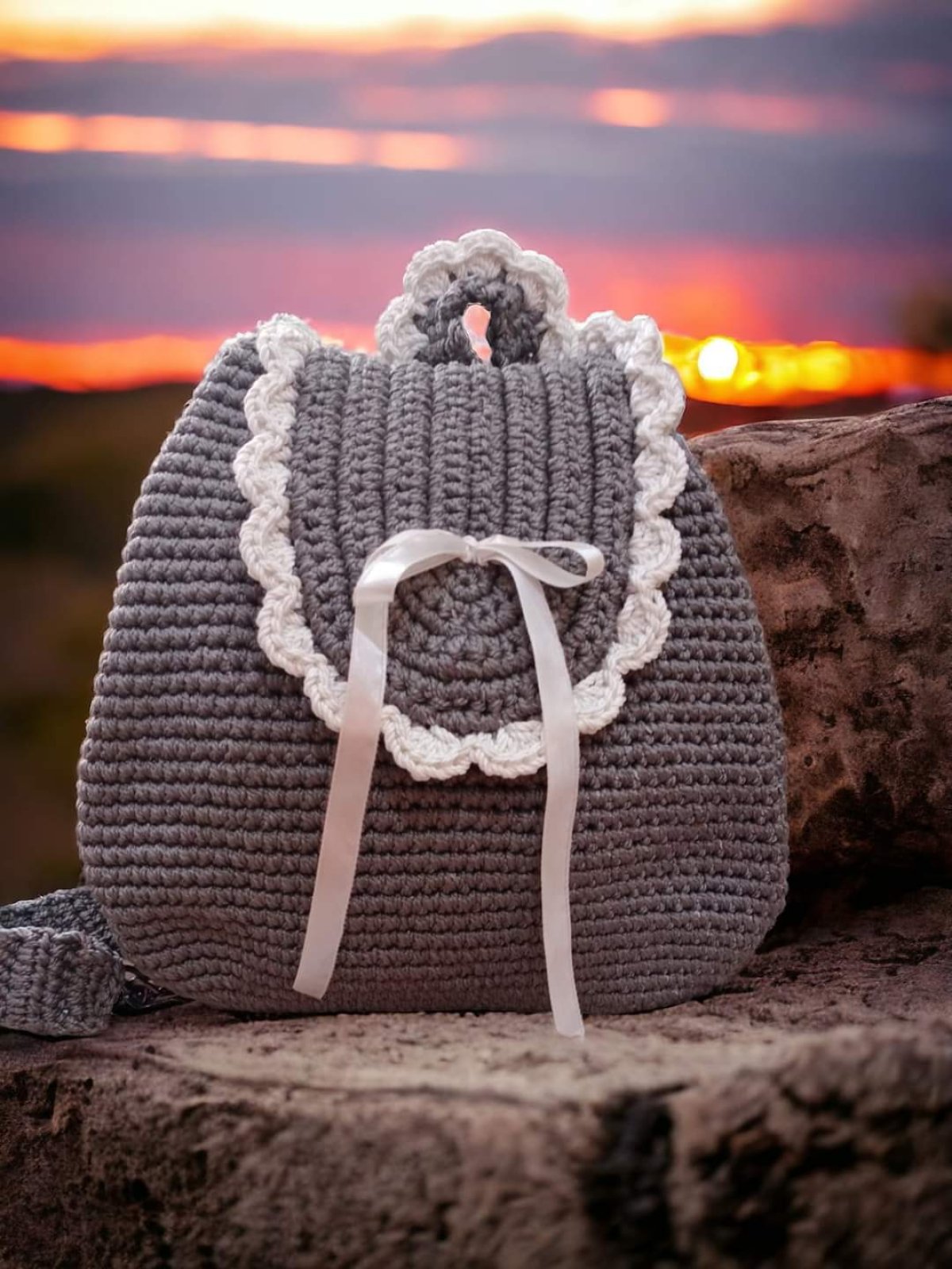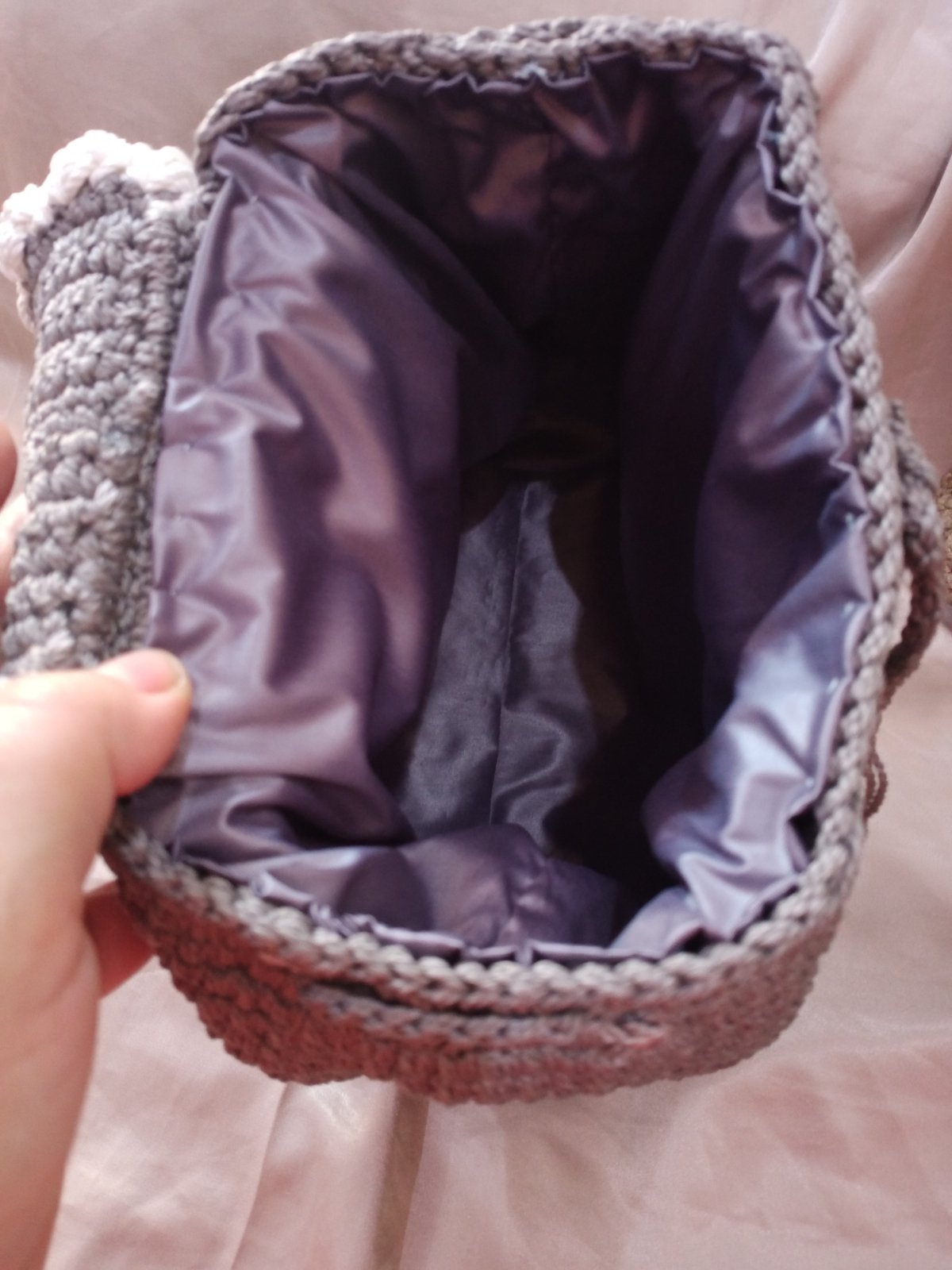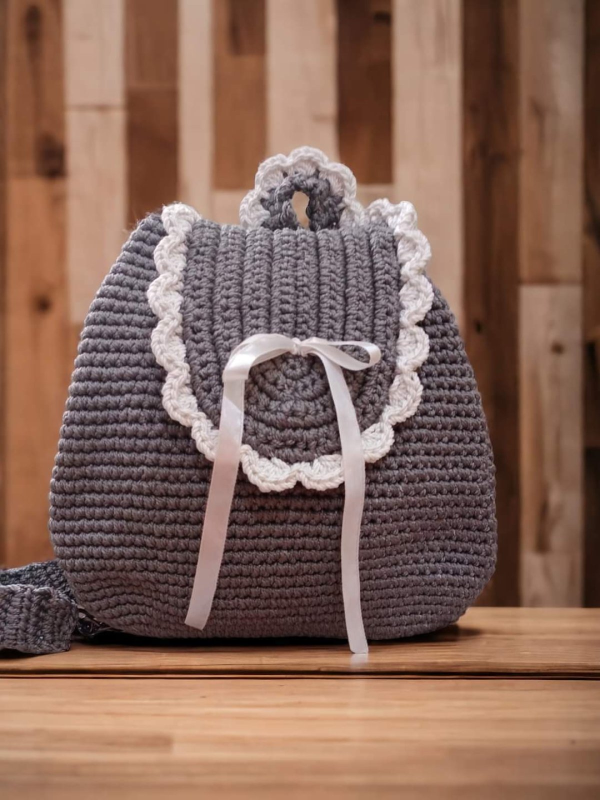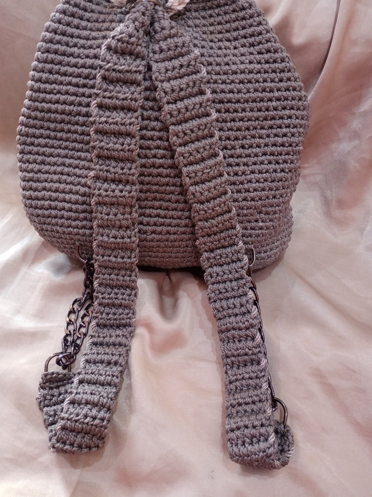 شنطه باك كروشيه صنعت يدويا من خيط المكرميه المصري واسعه من الداخل تشيل كتب مقاس كبير مبطنه من الداخل مذود دراع الشنطه بسلسله للتحكم في مقاس الذراع مقاس 30×30