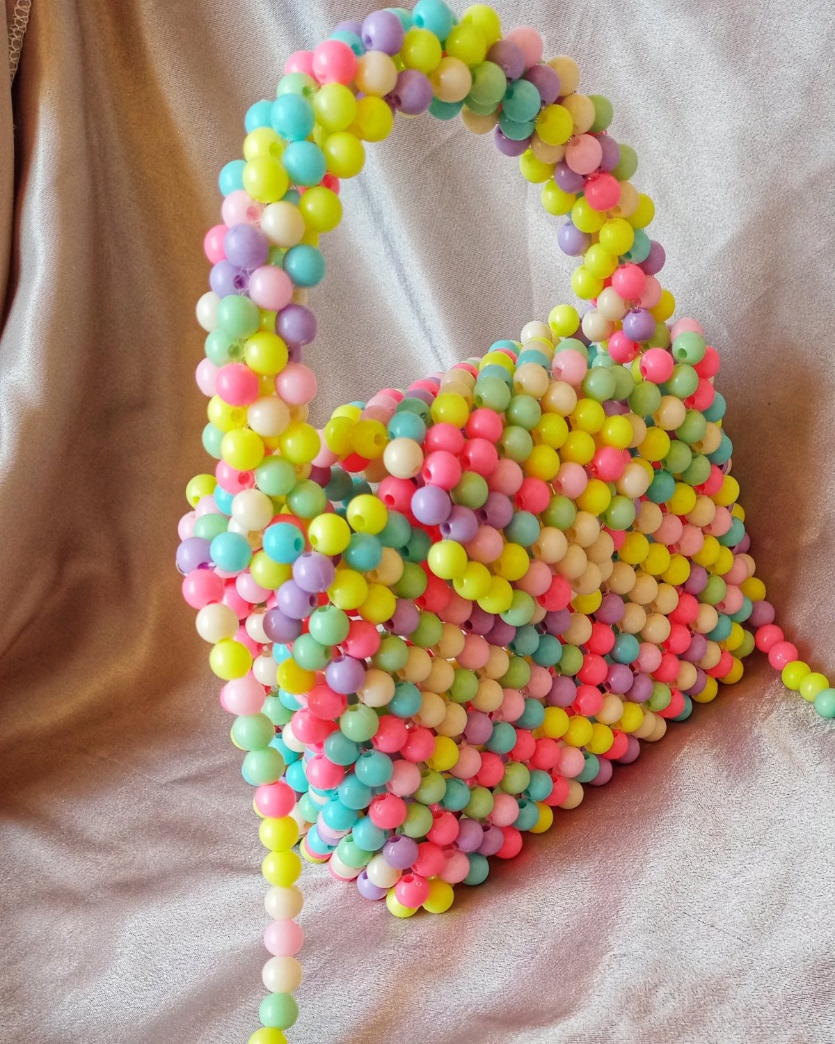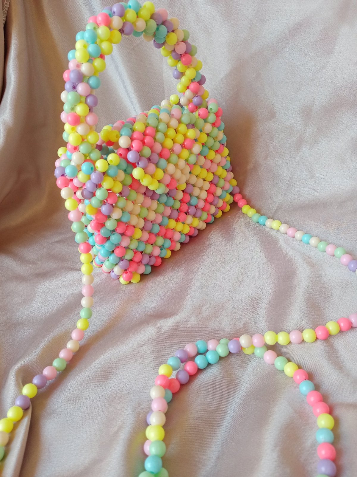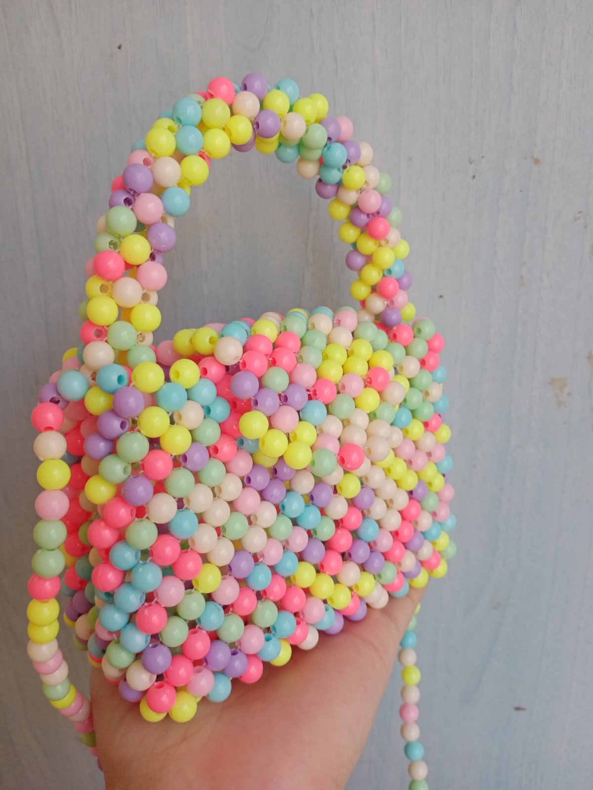 شنطه من الخرز الميكس للاطفال مقاس ١٥×١١ واسعه من الداخل دراع الشنطه من اللولي بيها قفل مغناطيس