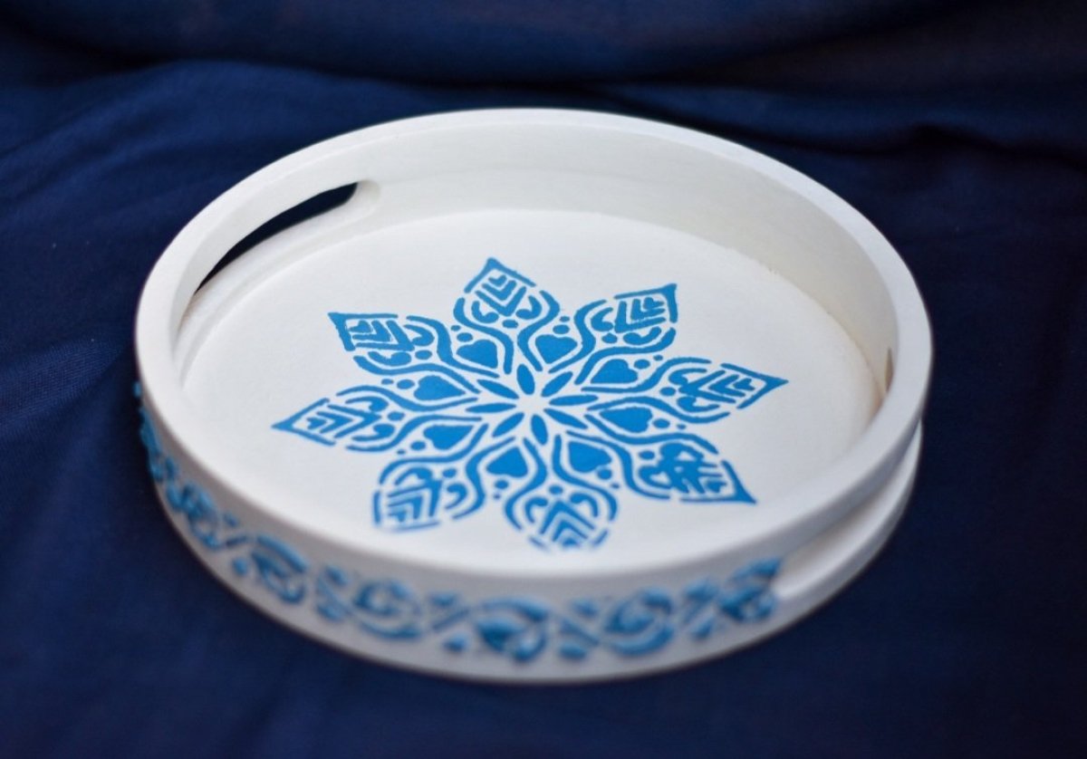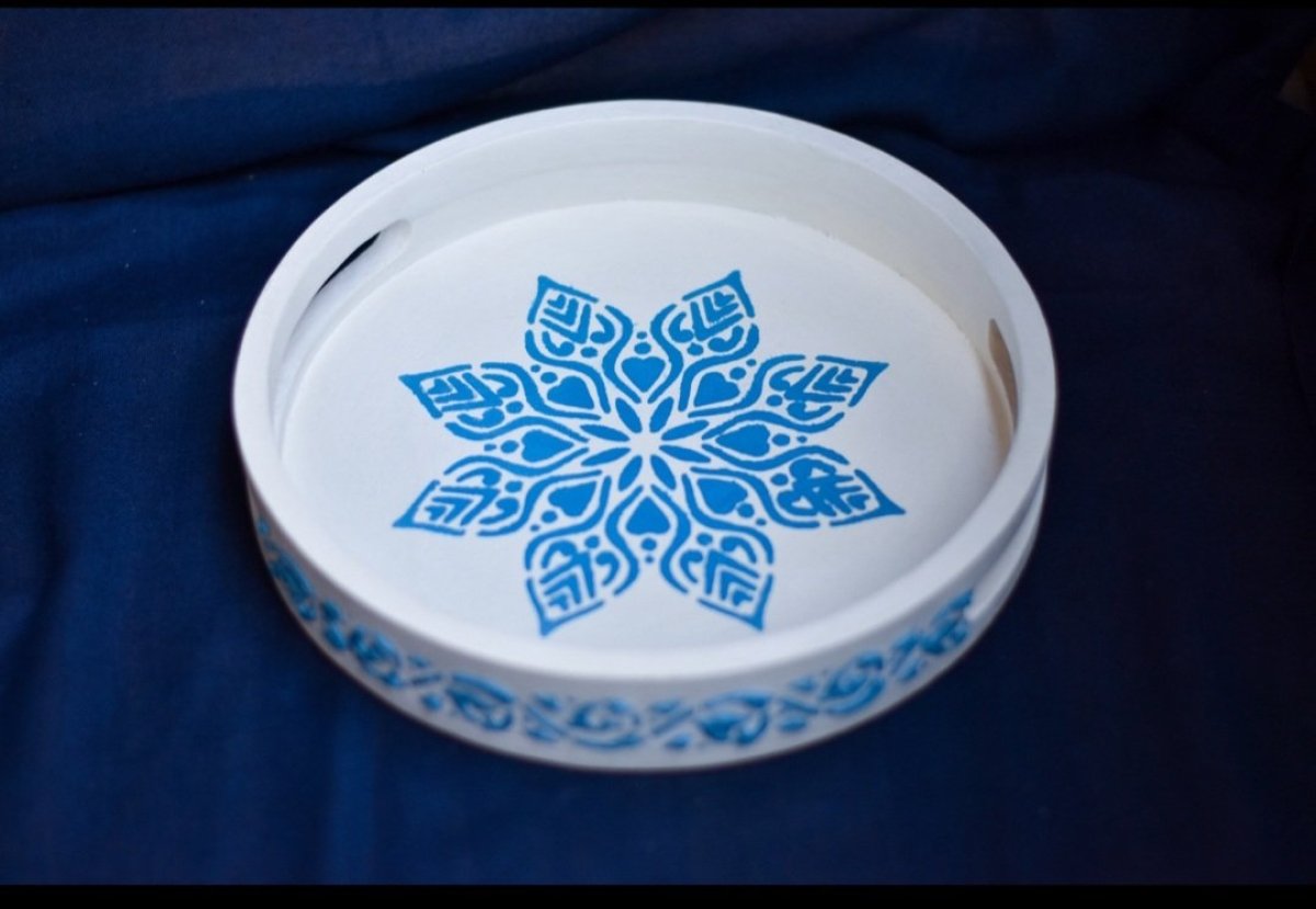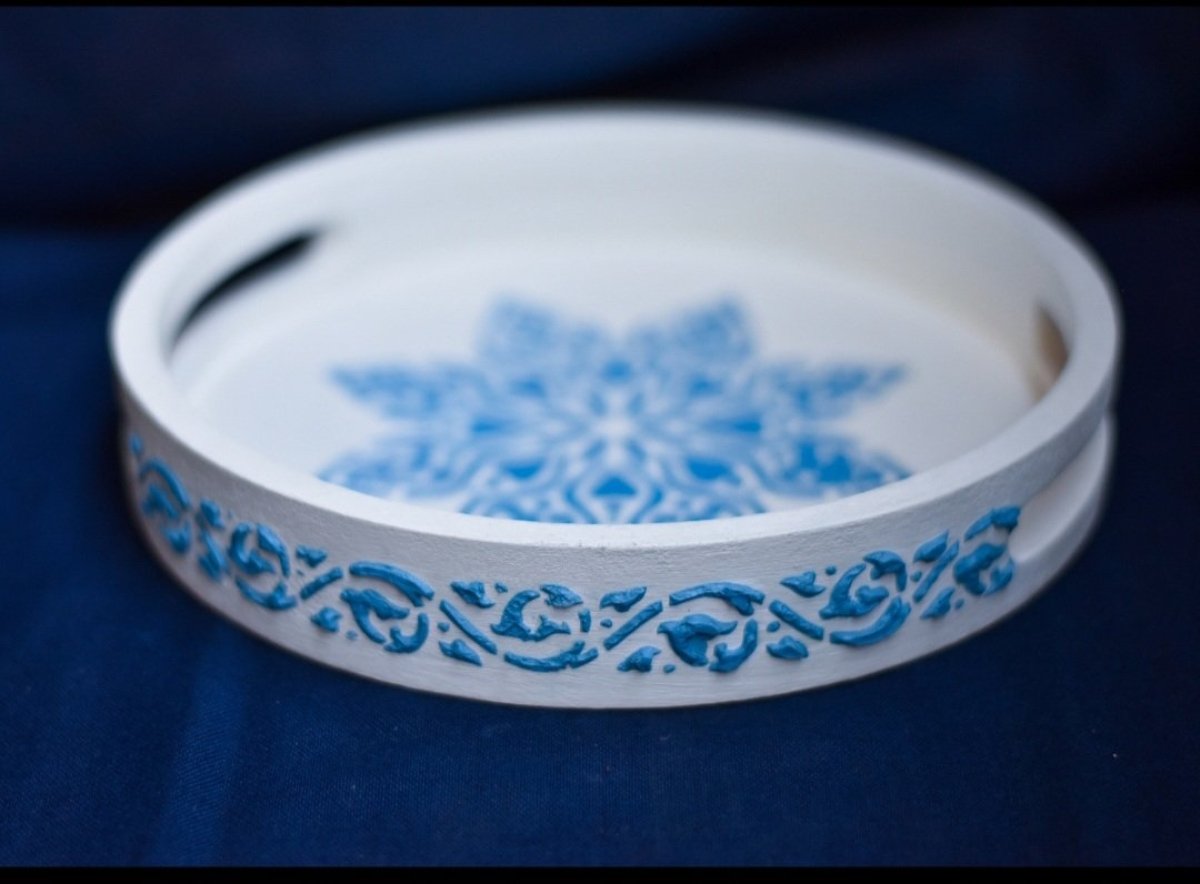 صينيه صغيره بستايل والوان يوناني وشغل بارز علي اطار الصينيه