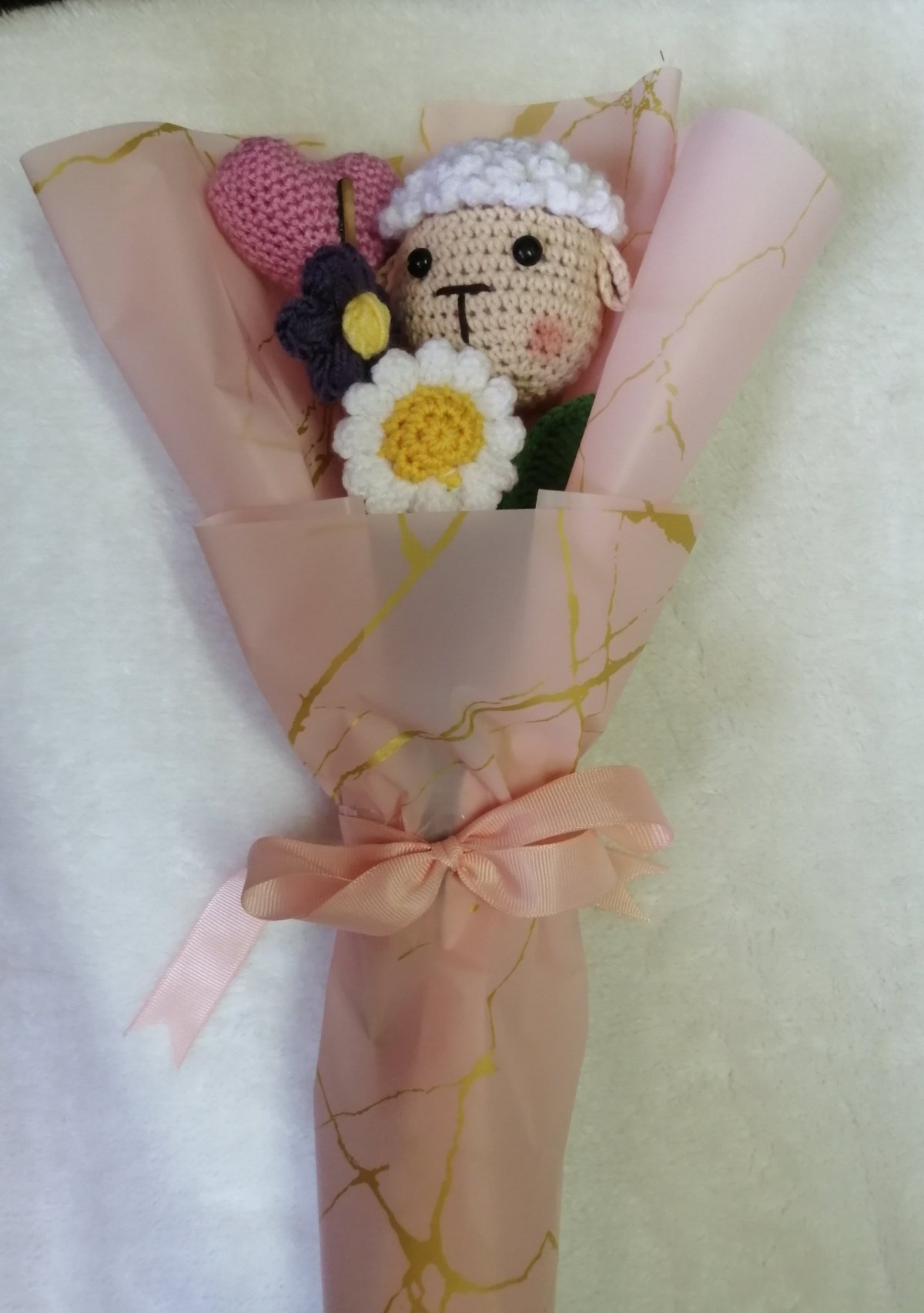 بوكيه العيد المكون من خروف العيد وقلب و2 ورده صغيره