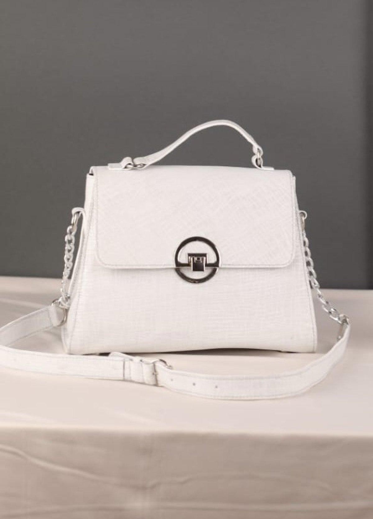 شنطة جلد طبيعي أبيض مفضض بطبعة هادئة،٢٨*٢٠*١٠،يد دابل ،مبطنة بجلد طبيعي من الداخل،تحتوي على جيب داخلي بسوستة،متاح تنفيذها من ١٠ايام لاسبوعين .
