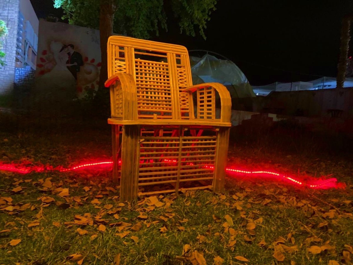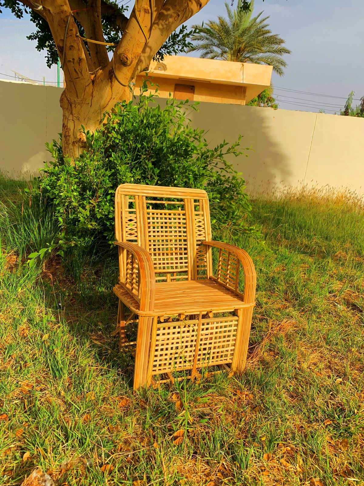 كرسي سعفة النخيل للمنزل المنزلي أو استراحة من التراث، مريح للجسم وطبيعي من منتجات طبيعية وأكثر راحة وهدوءًا