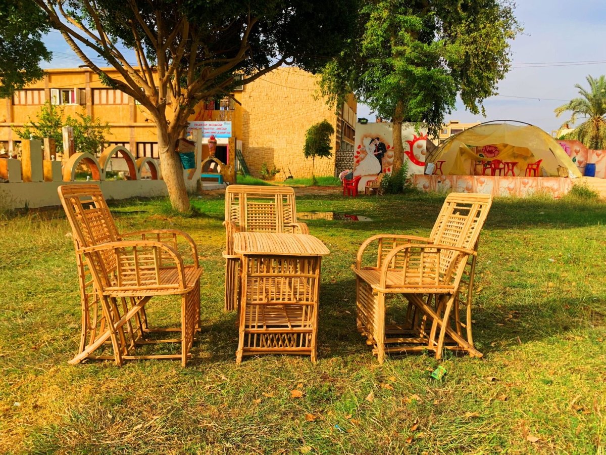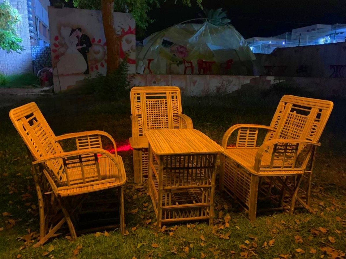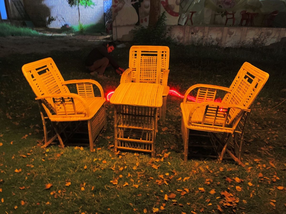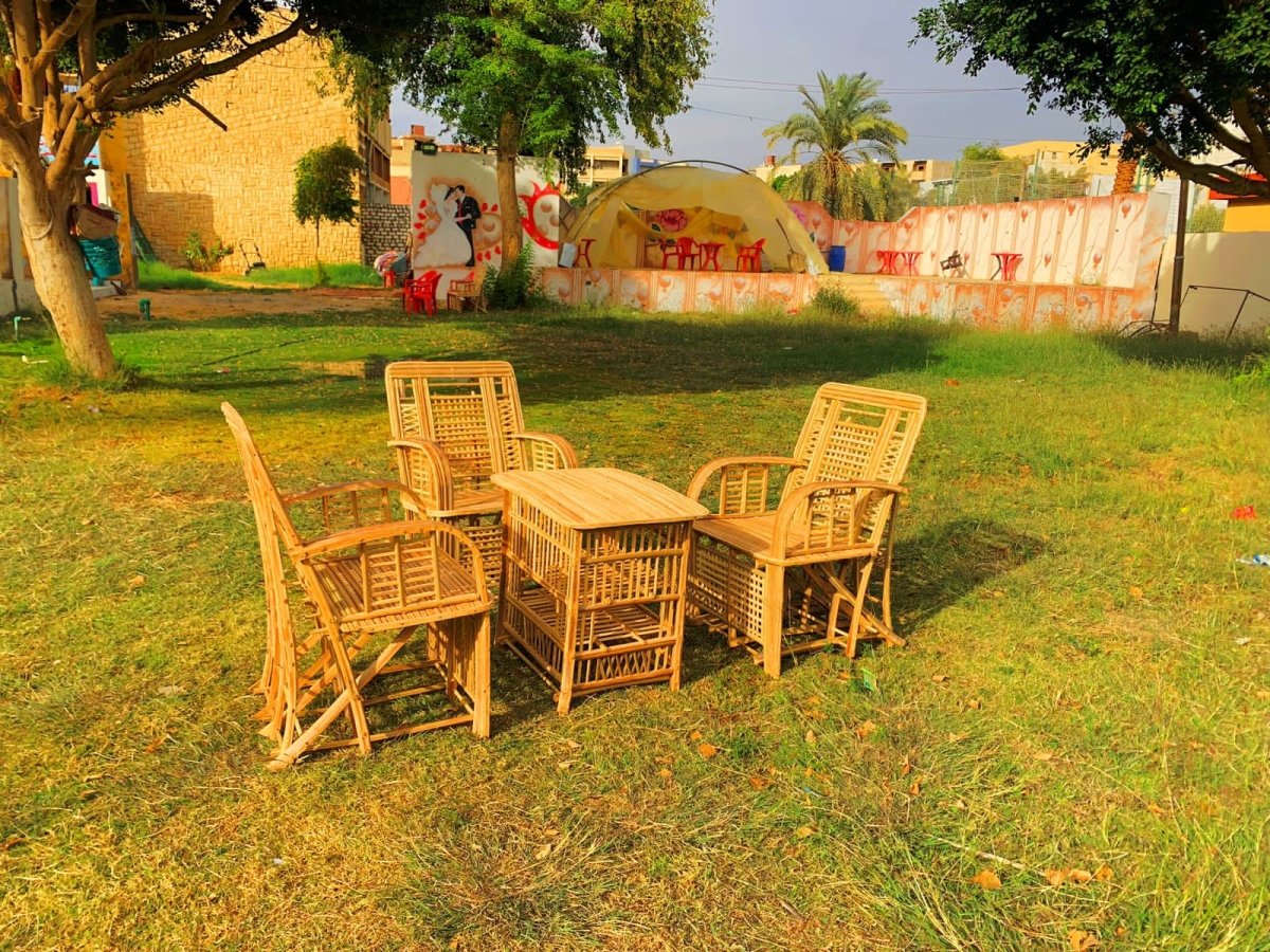 كرسي وترابيزة من سعف النخيل يدوي الصنع للحديقة المنزلية أو الفناء من التراث، مريح للجسم وطبيعي من مواد طبيعية تجعلك أكثر راحة وهدوءًا