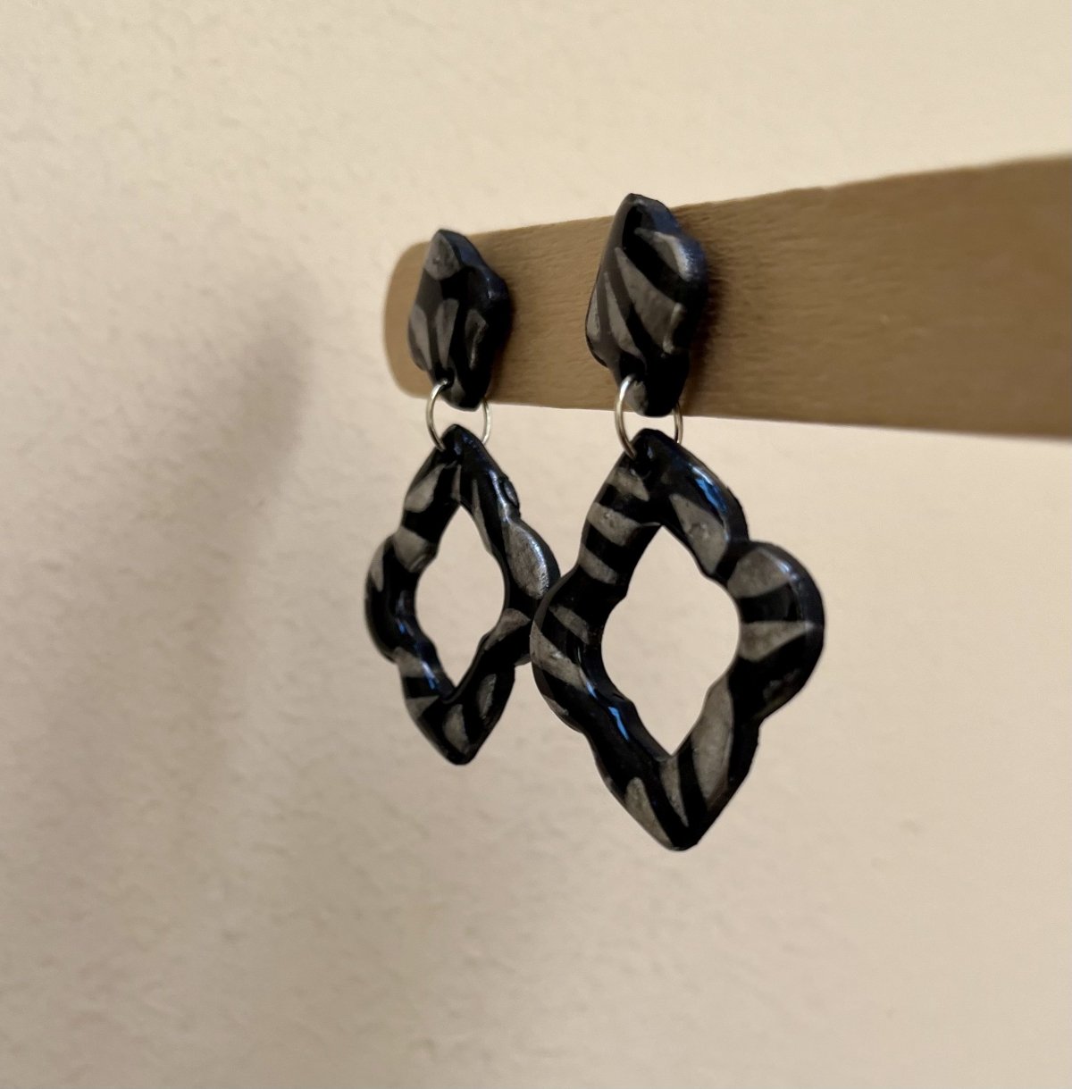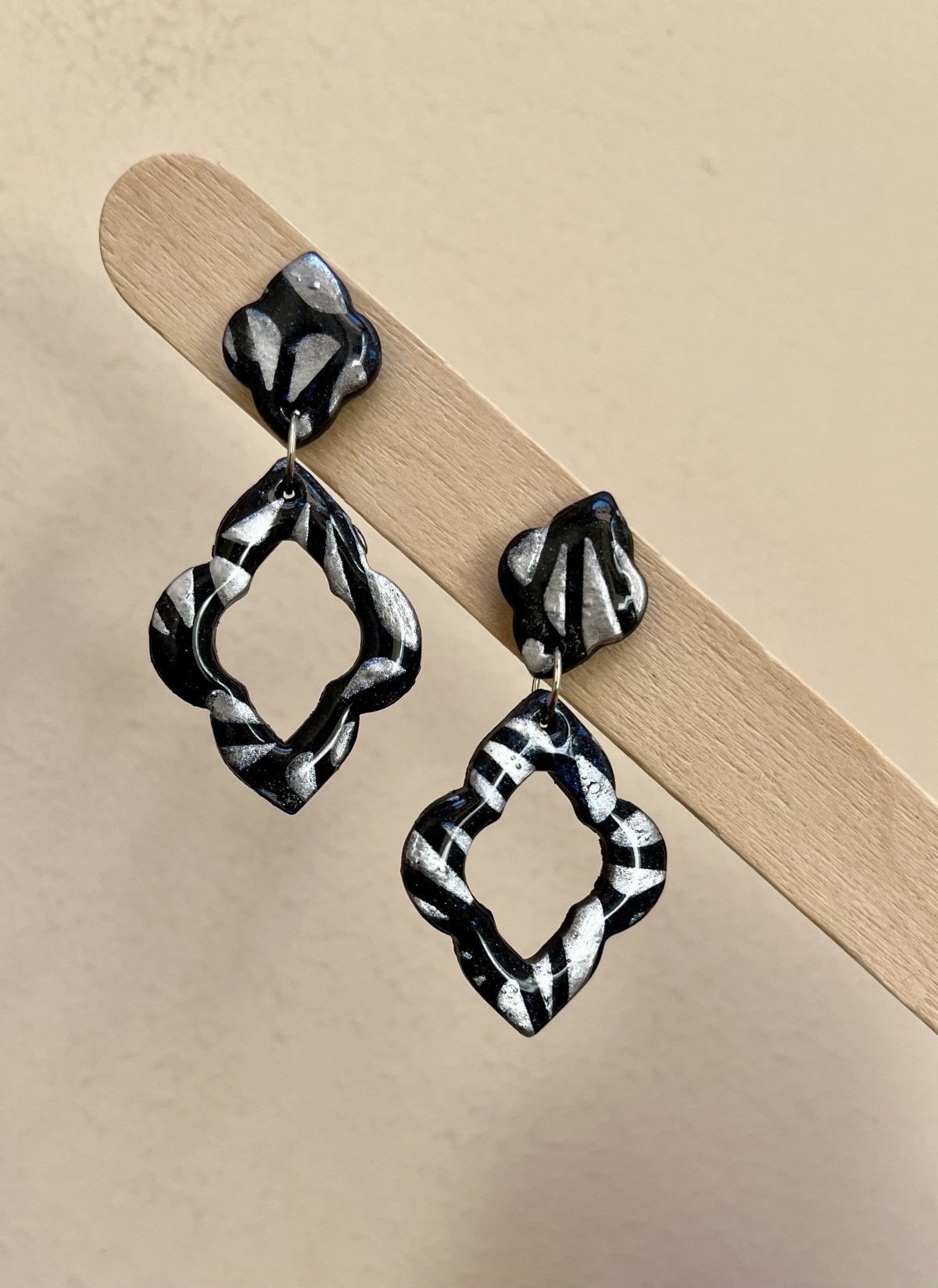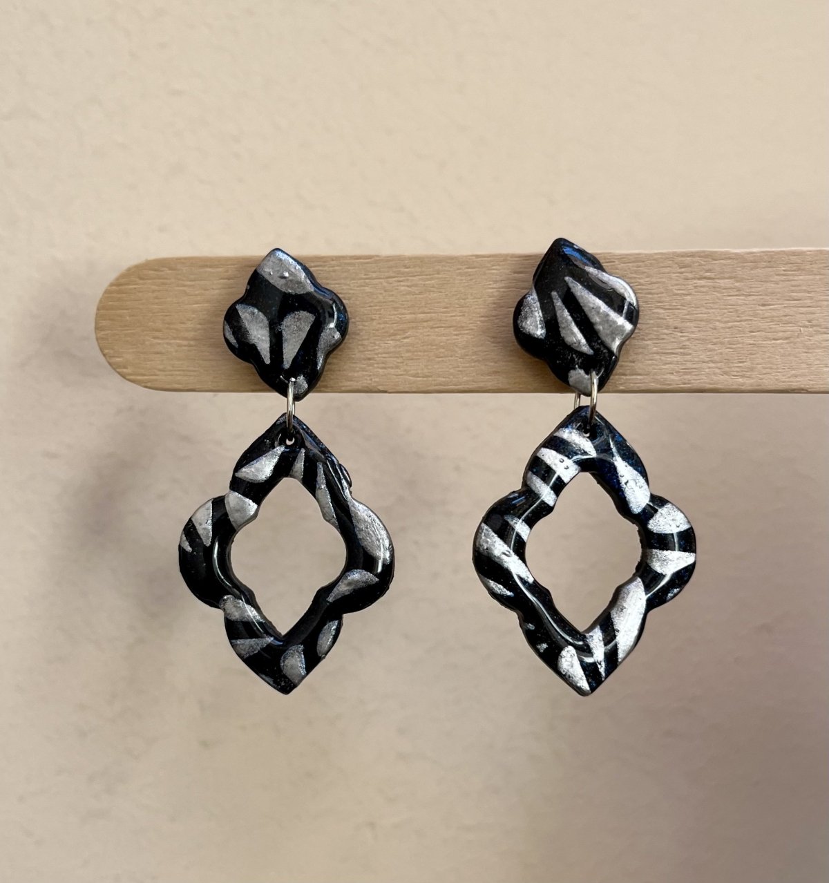 مصنوع يدوياً من الصلصال الحراري ، خفيف الوزن عالأذن مغطى بطبقة من الريزن تزيد من الحماية و تحافظ عالالوان واللمعان مع اجزاء معدن ستانلس ستيل مقاوم للصدأ و لا يسبب الحساسية