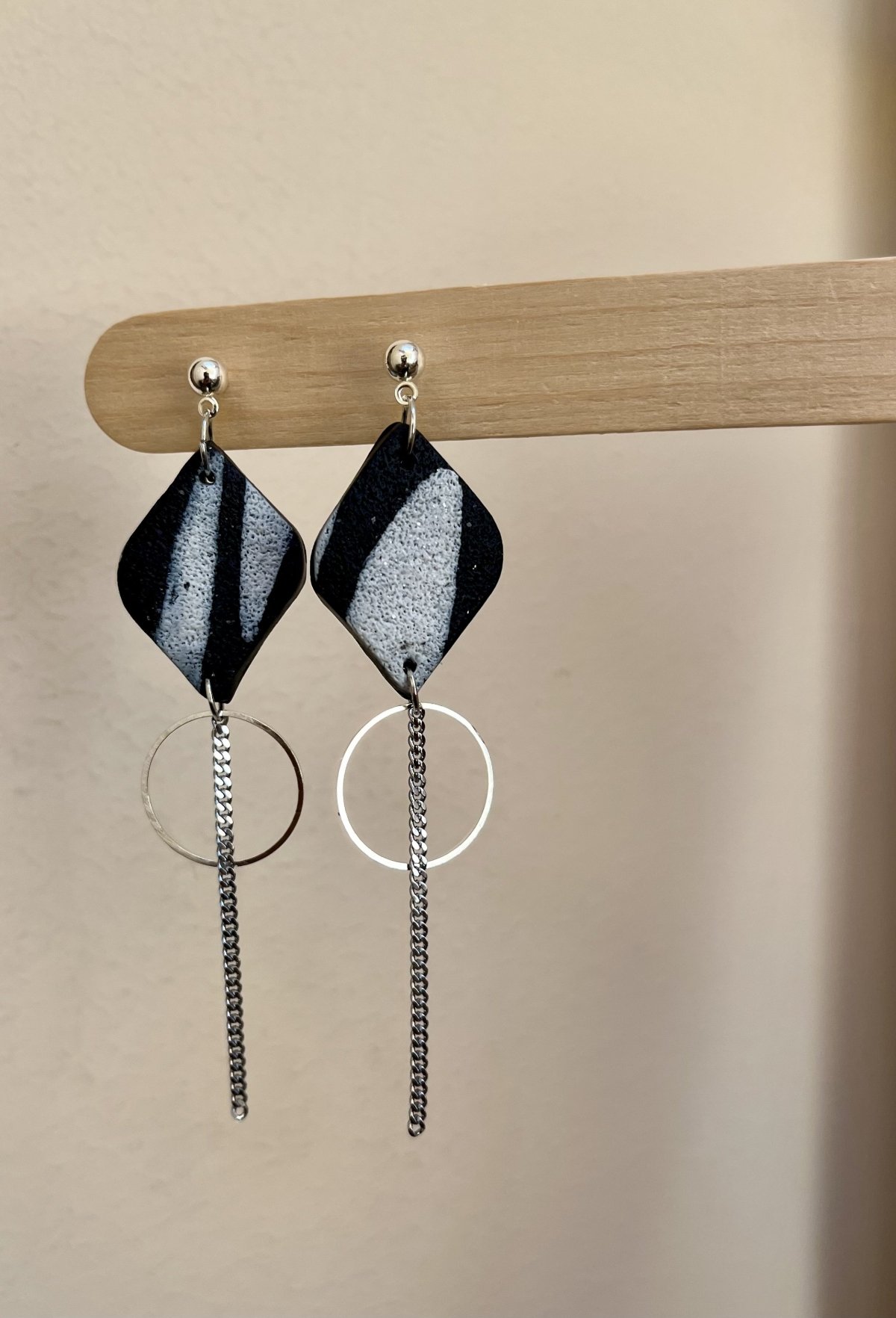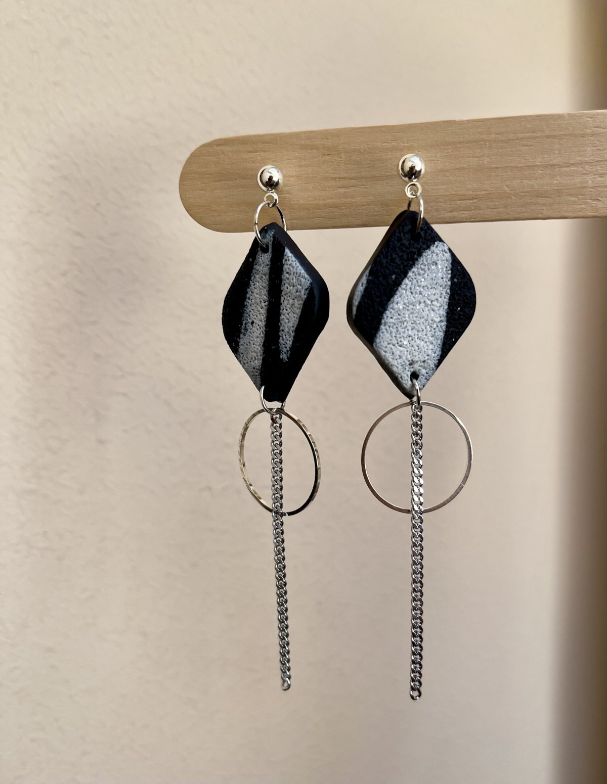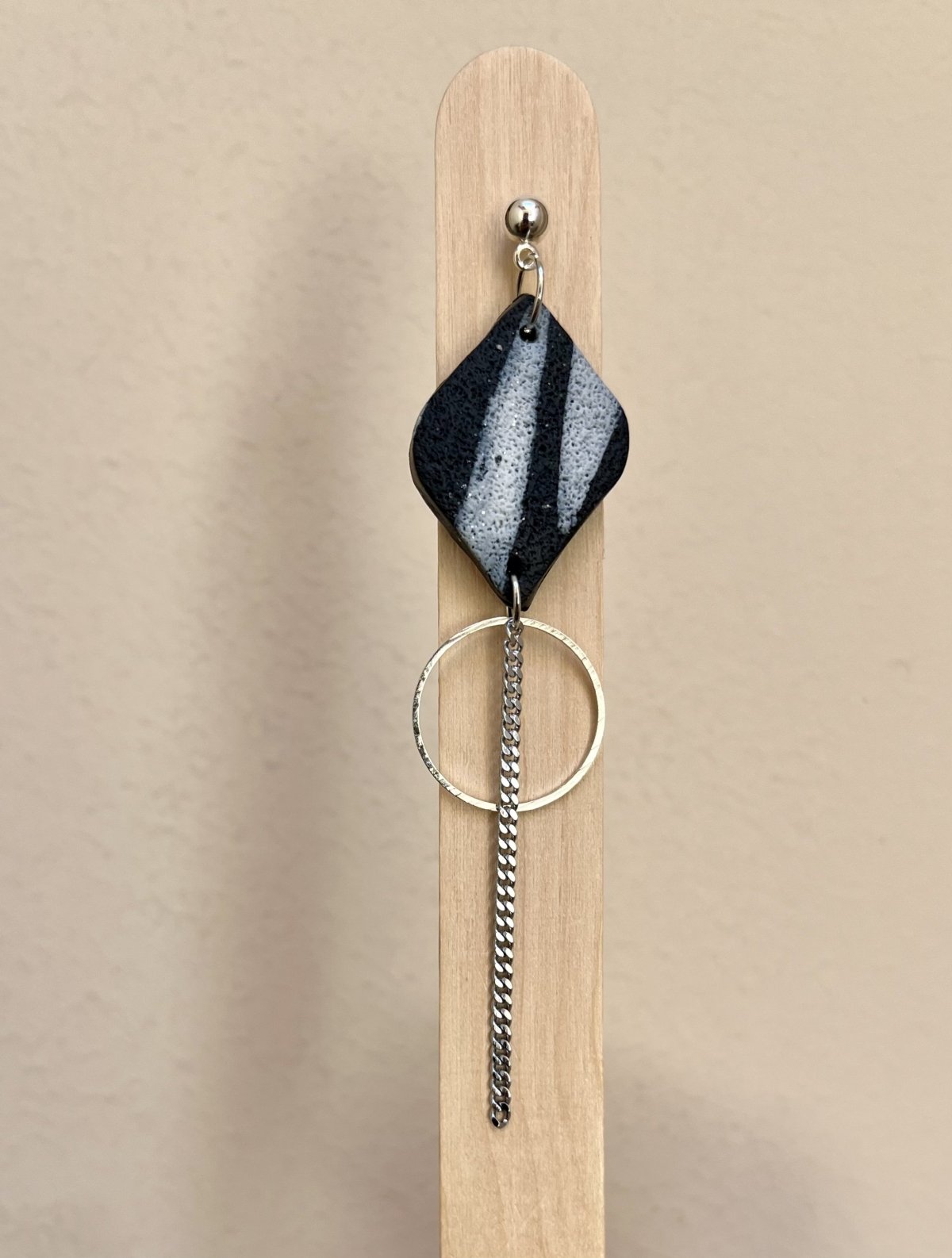 مصنوع يدوياً من الصلصال الحراري ، خفيف الوزن عالأذن مغطى بطبقة من الريزن تزيد من الحماية و تحافظ عالالوان واللمعان مع اجزاء معدن ستانلس ستيل مقاوم للصدأ و لا يسبب الحساسية