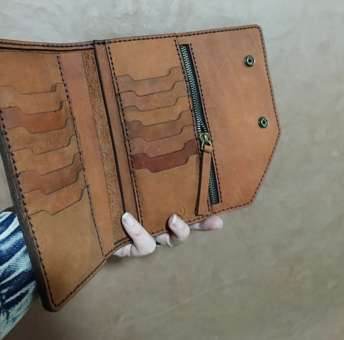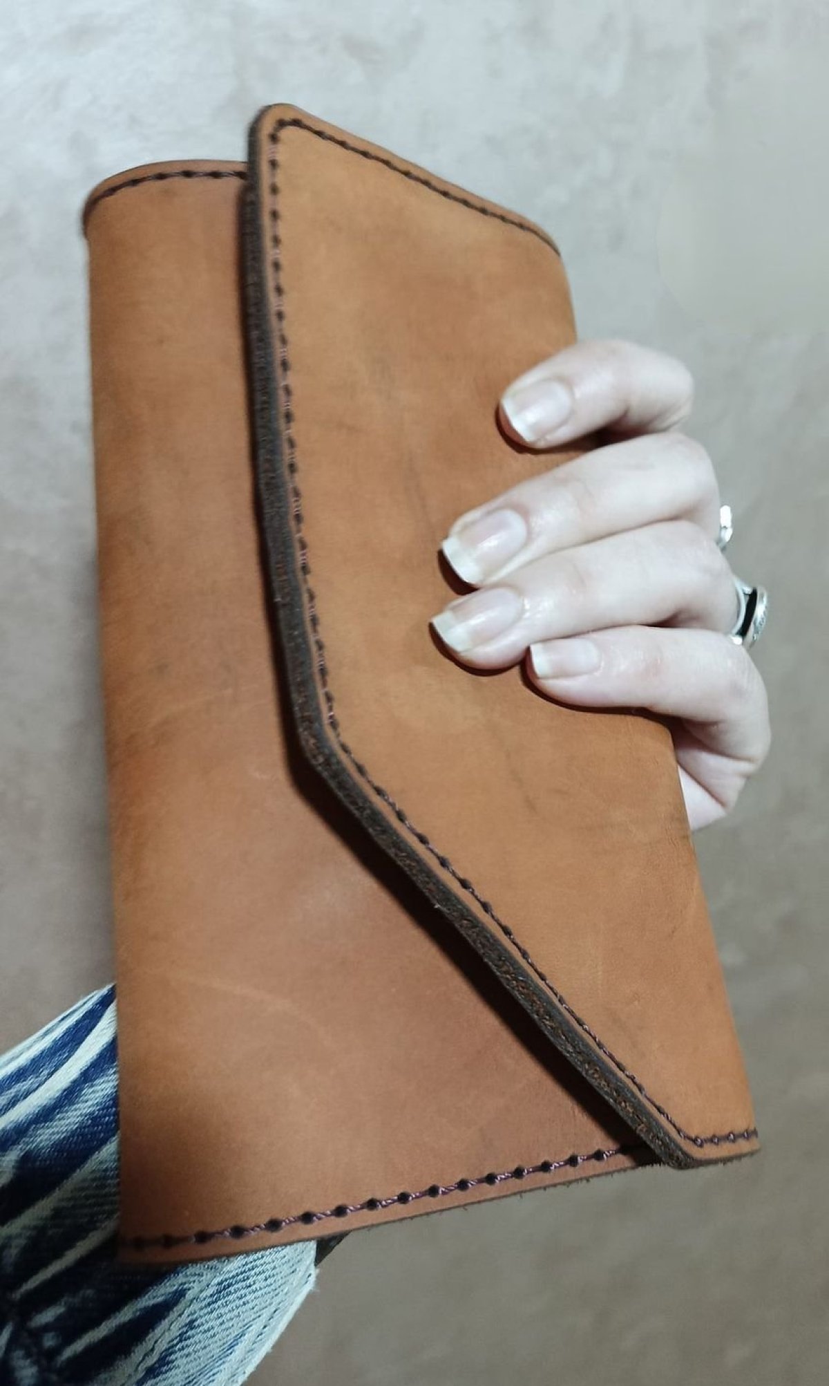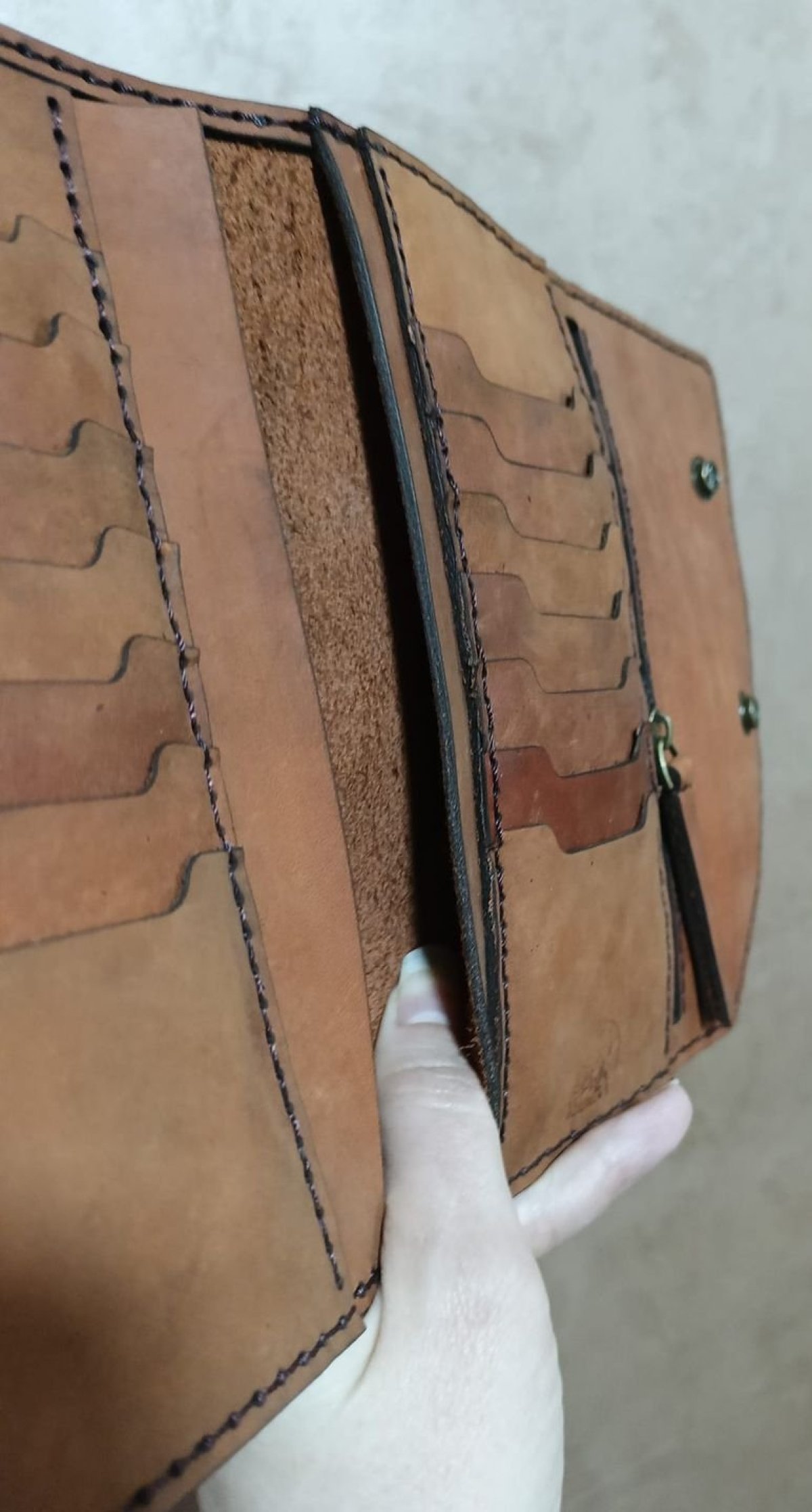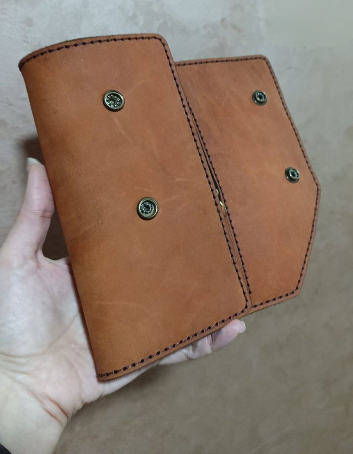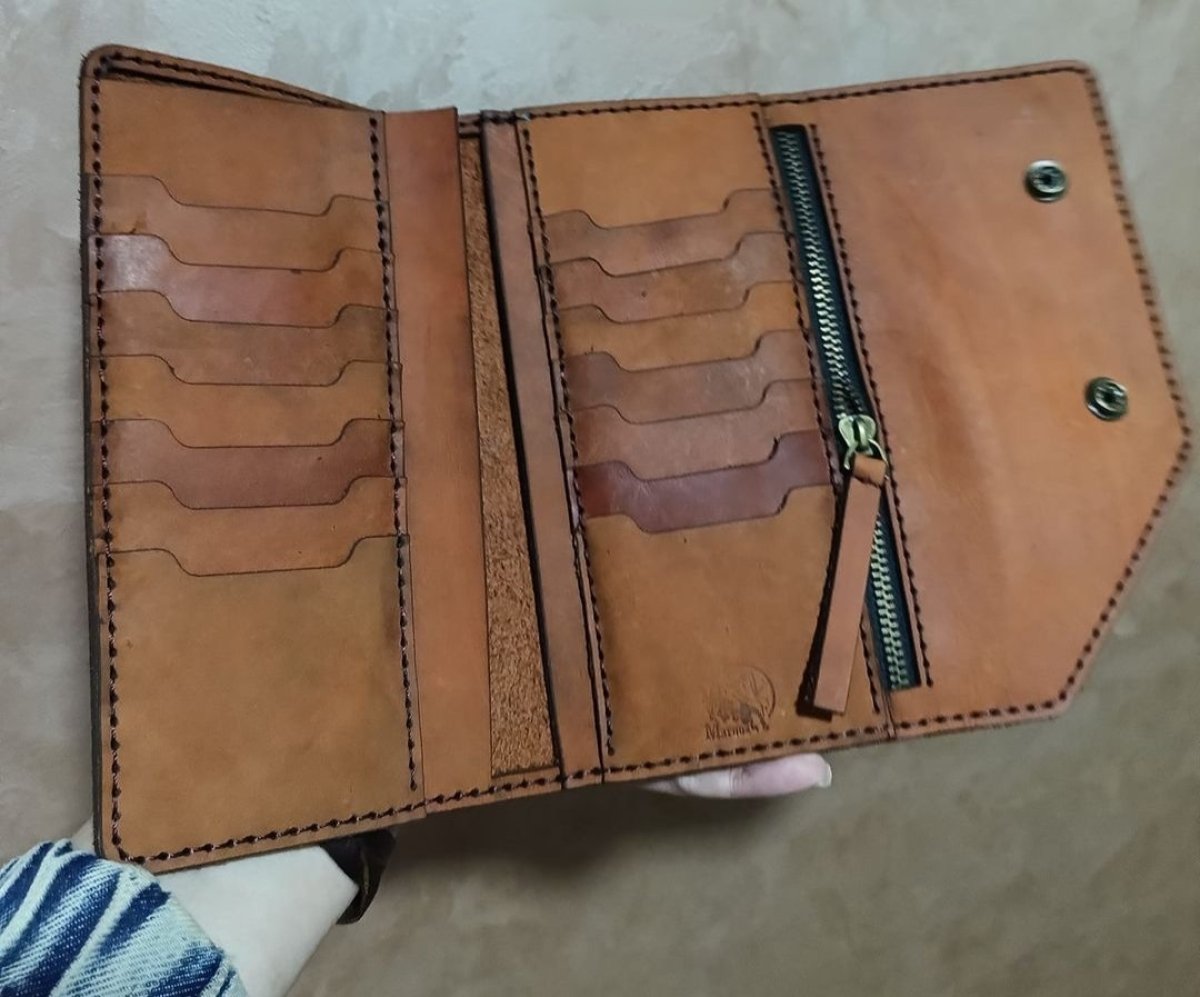 محفظه يد طويله جلد بقري بالكامل برا وجوا الابعاد 10*20
