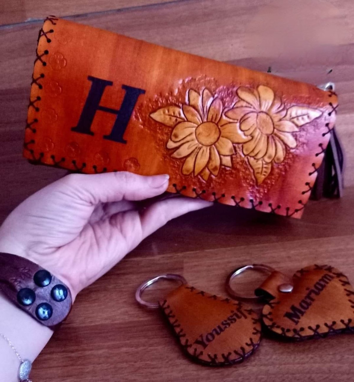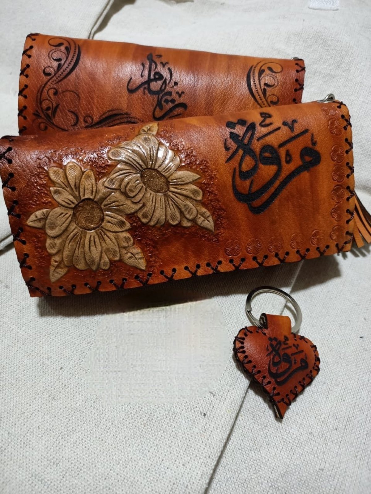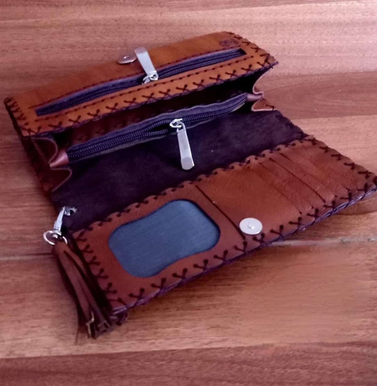 محفظه حريمي جلد بقري من الخارج ومن الداخل جلد بقري وماعز الابعاد 11*20