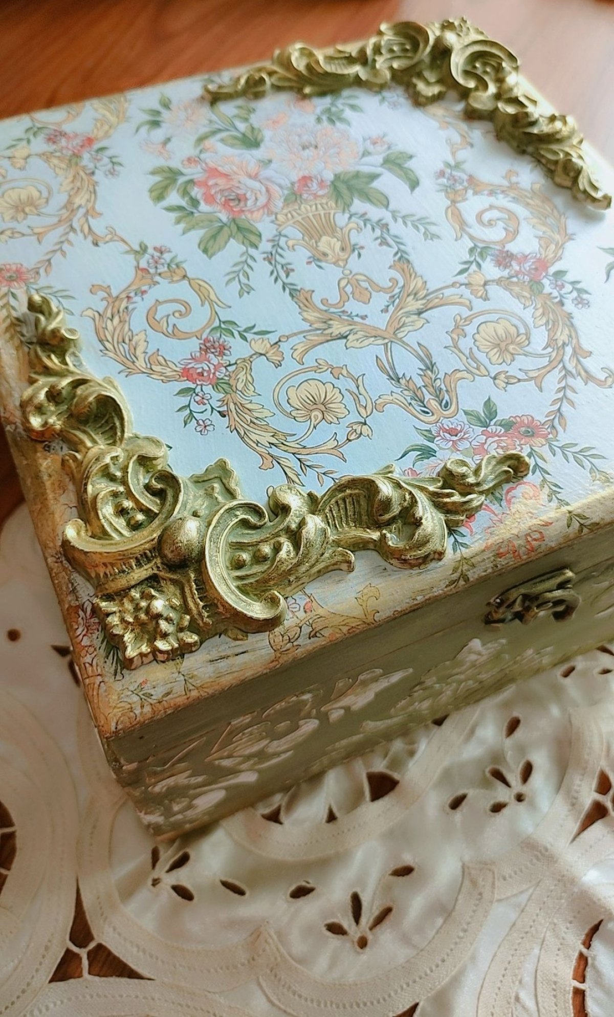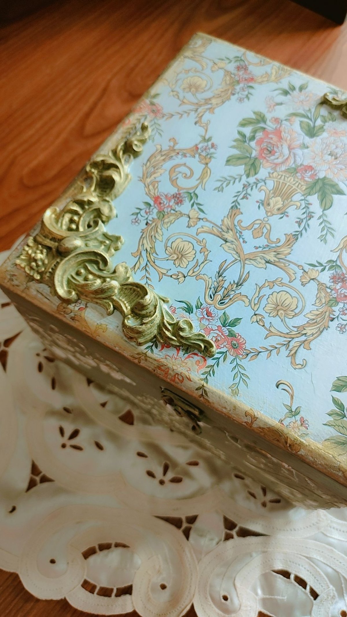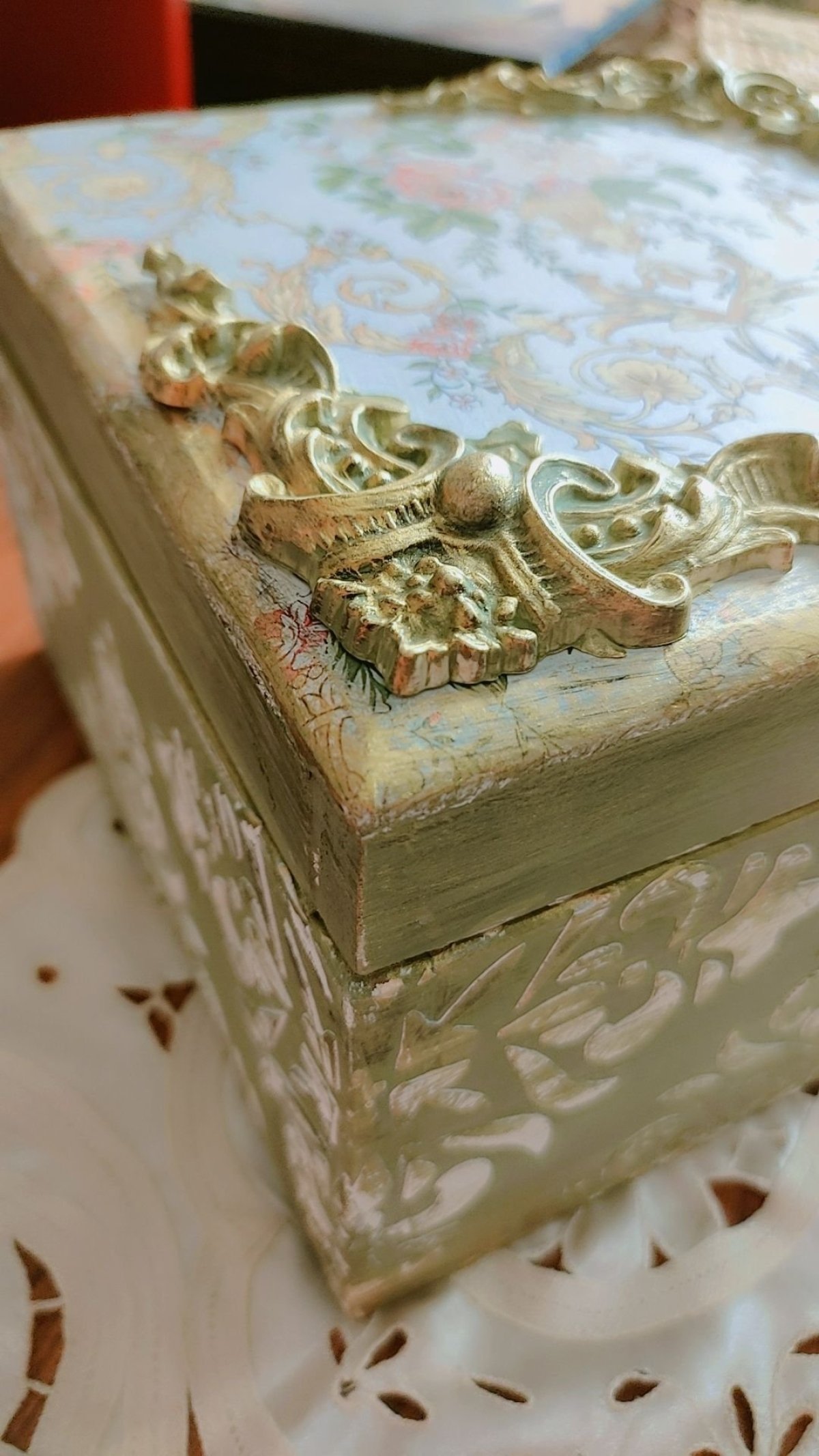 صندوق إكسسوارات بتقنية الديكوباج هو قطعة فنية تجمع بين الجمالية والعملية، يستخدم هذا الصندوق لتخزين المجوهرات والإكسسوارات بشكل آمن ومرتب، وهو مناسب لأغراض مختلفة