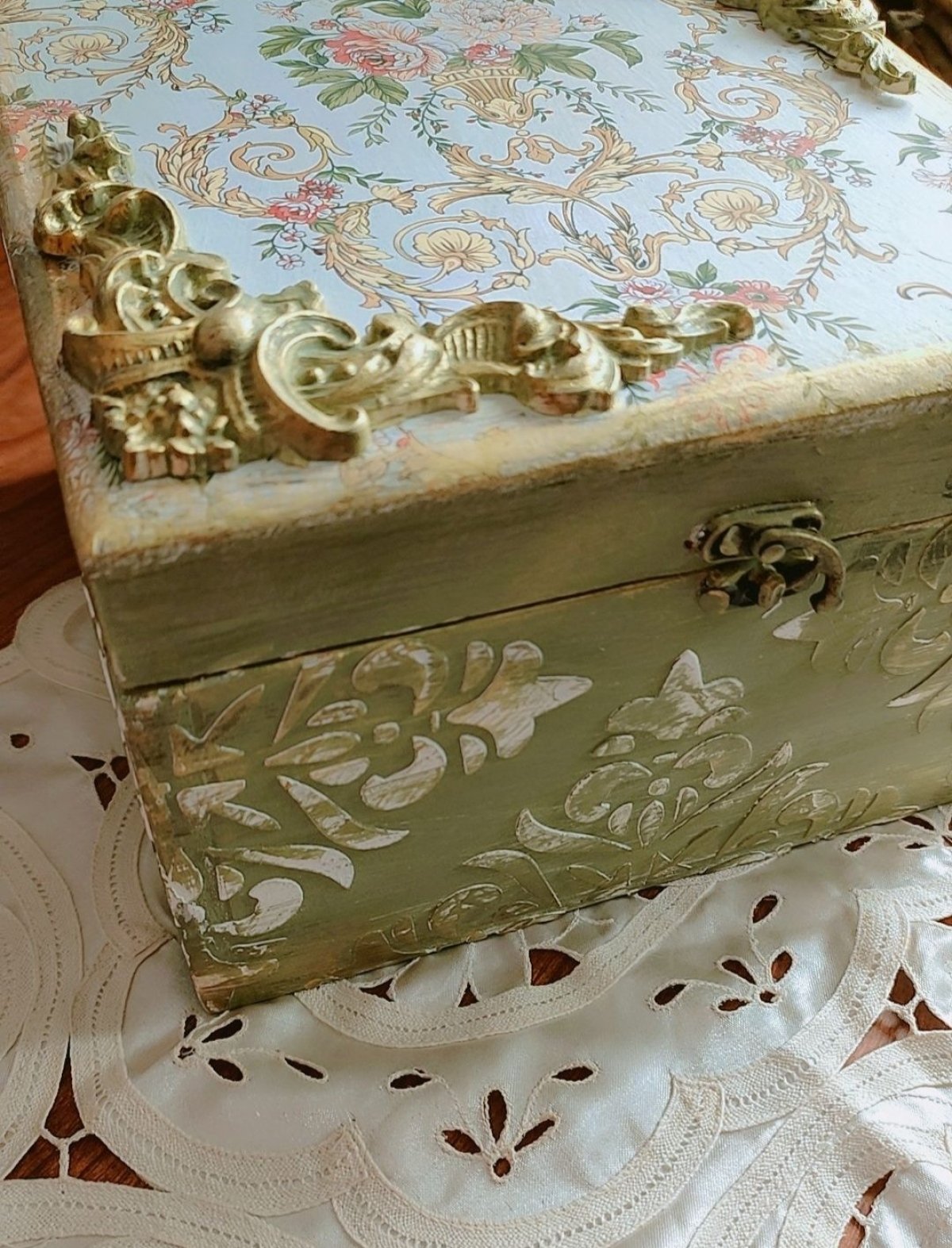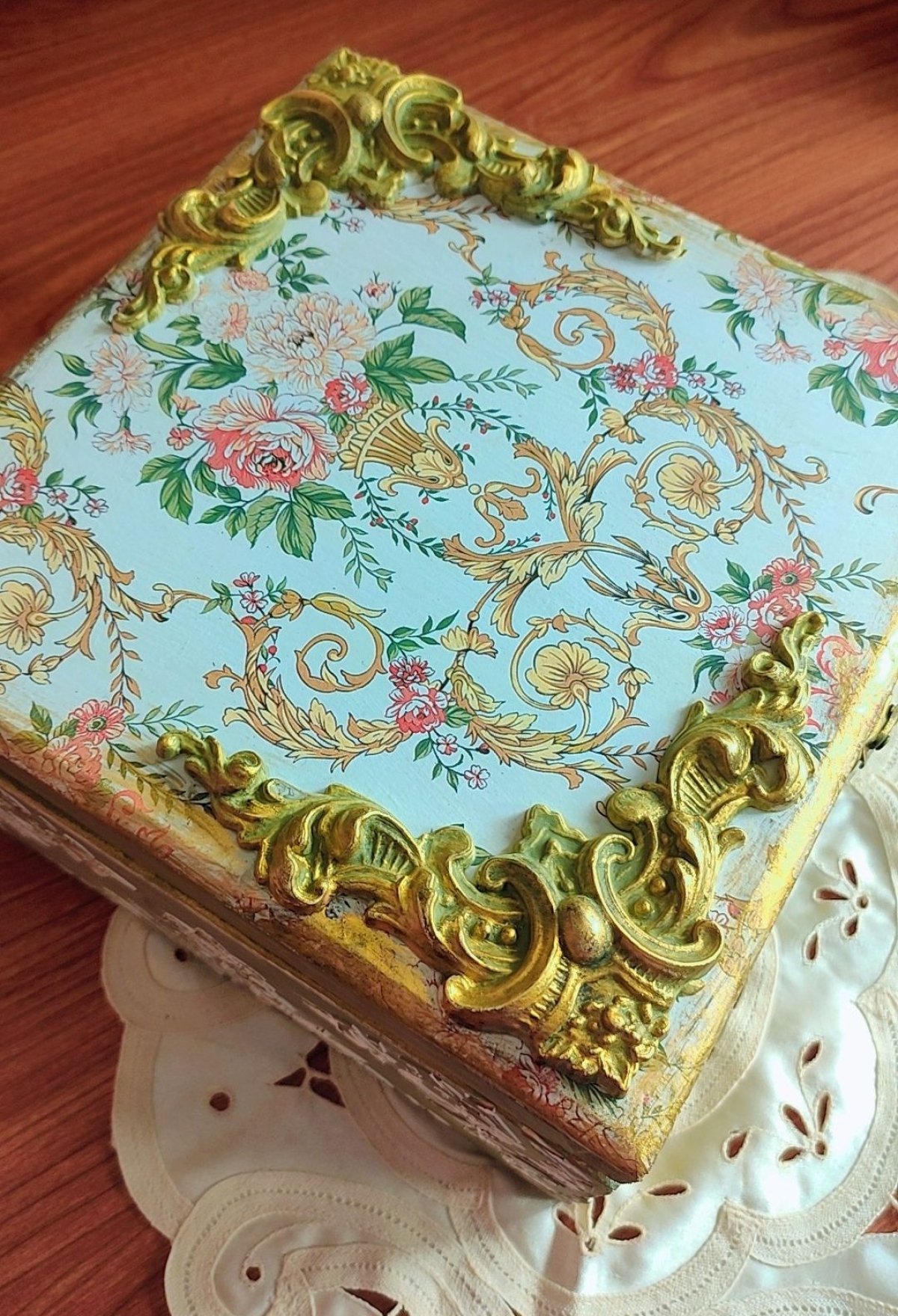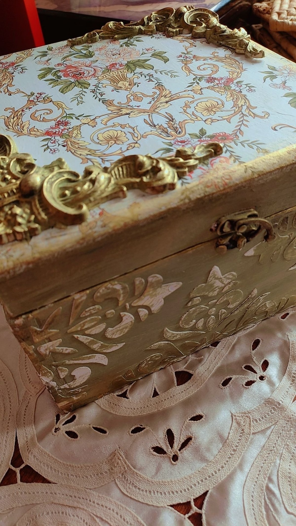 صندوق إكسسوارات بتقنية الديكوباج هو قطعة فنية تجمع بين الجمالية والعملية، يستخدم هذا الصندوق لتخزين المجوهرات والإكسسوارات بشكل آمن ومرتب، وهو مناسب لأغراض مختلفة