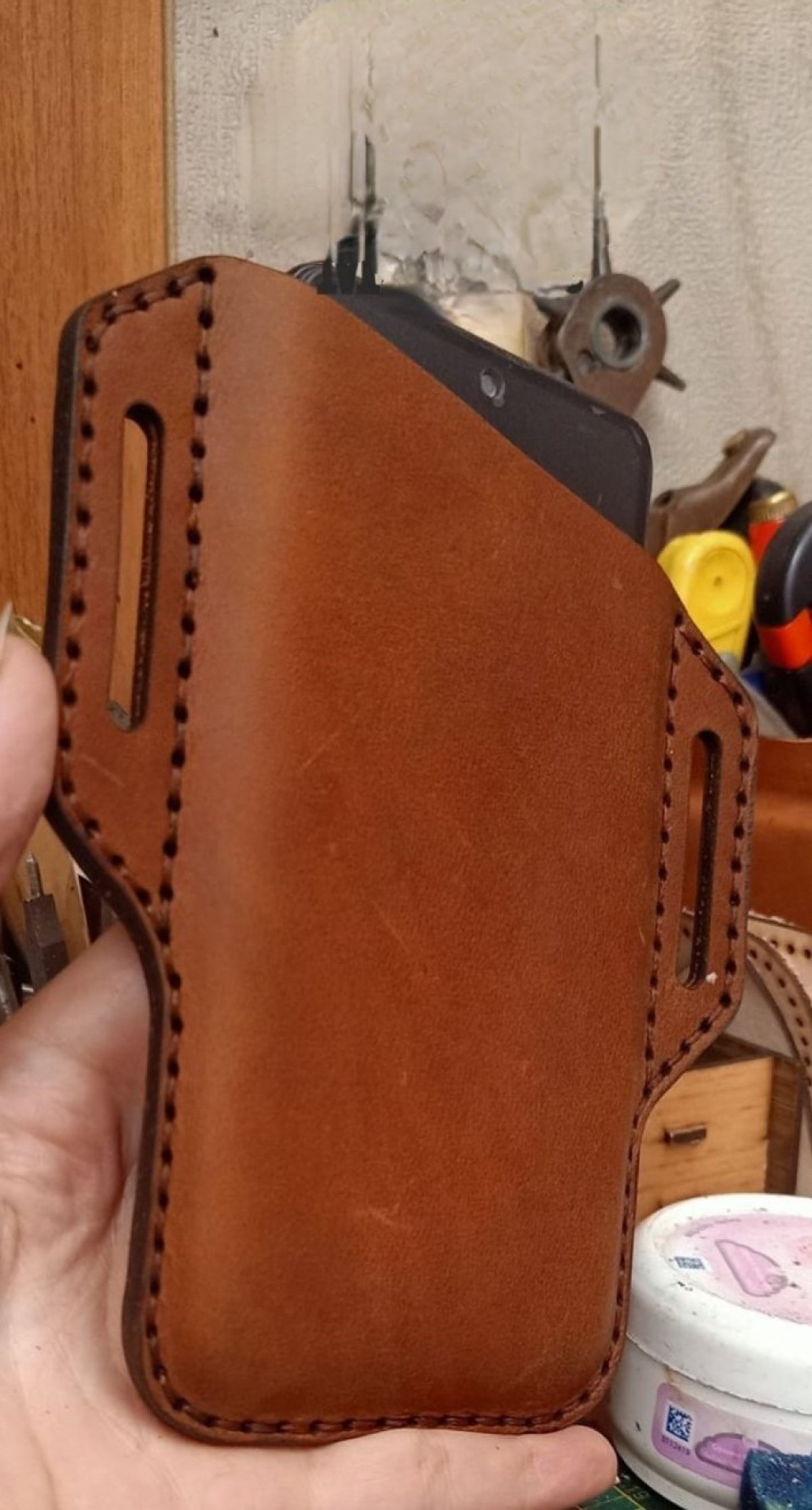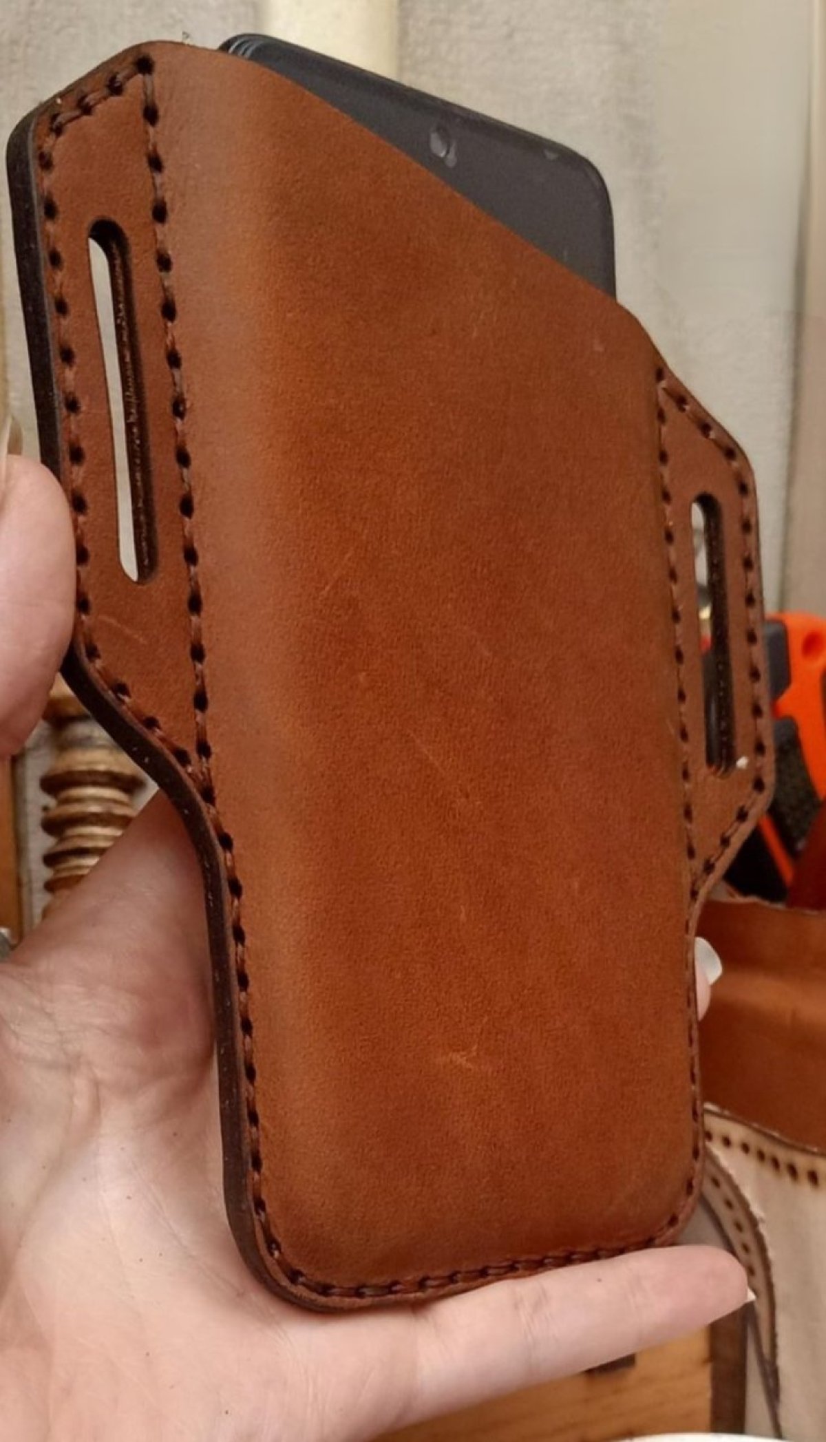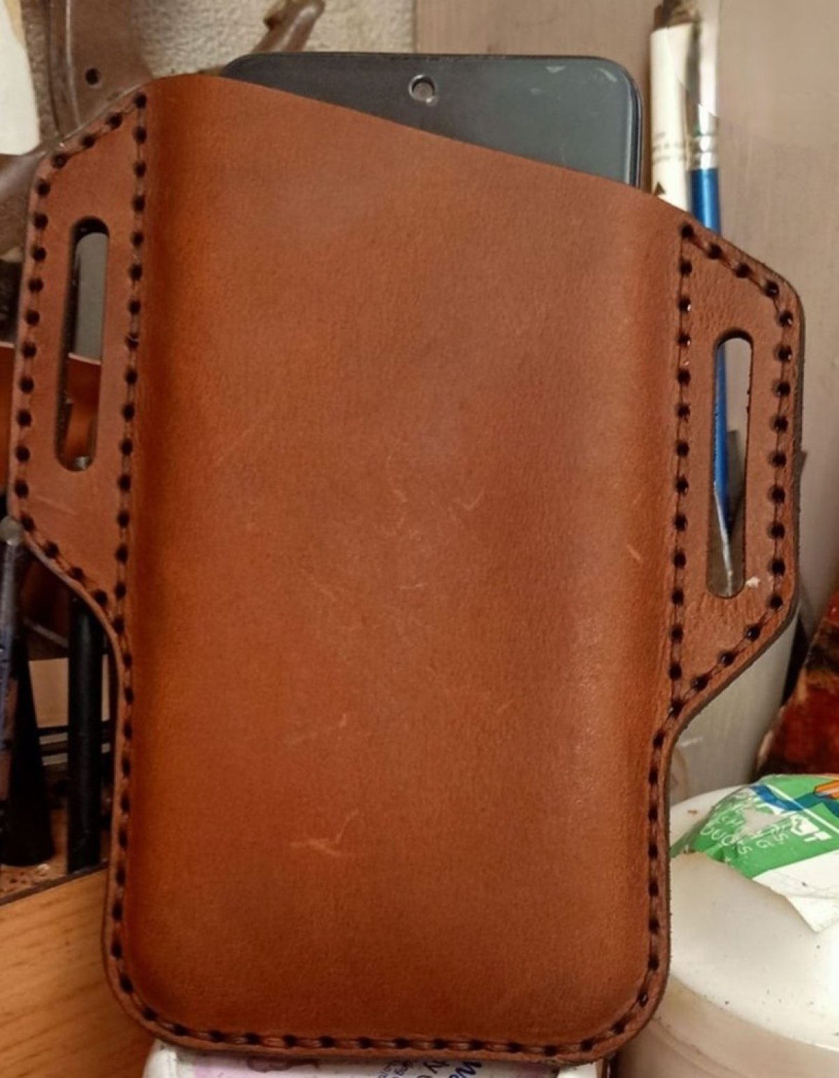 جراب موبايل جلد بقري بالكامل يوضع في حزام الوسط الابعاد 10*16