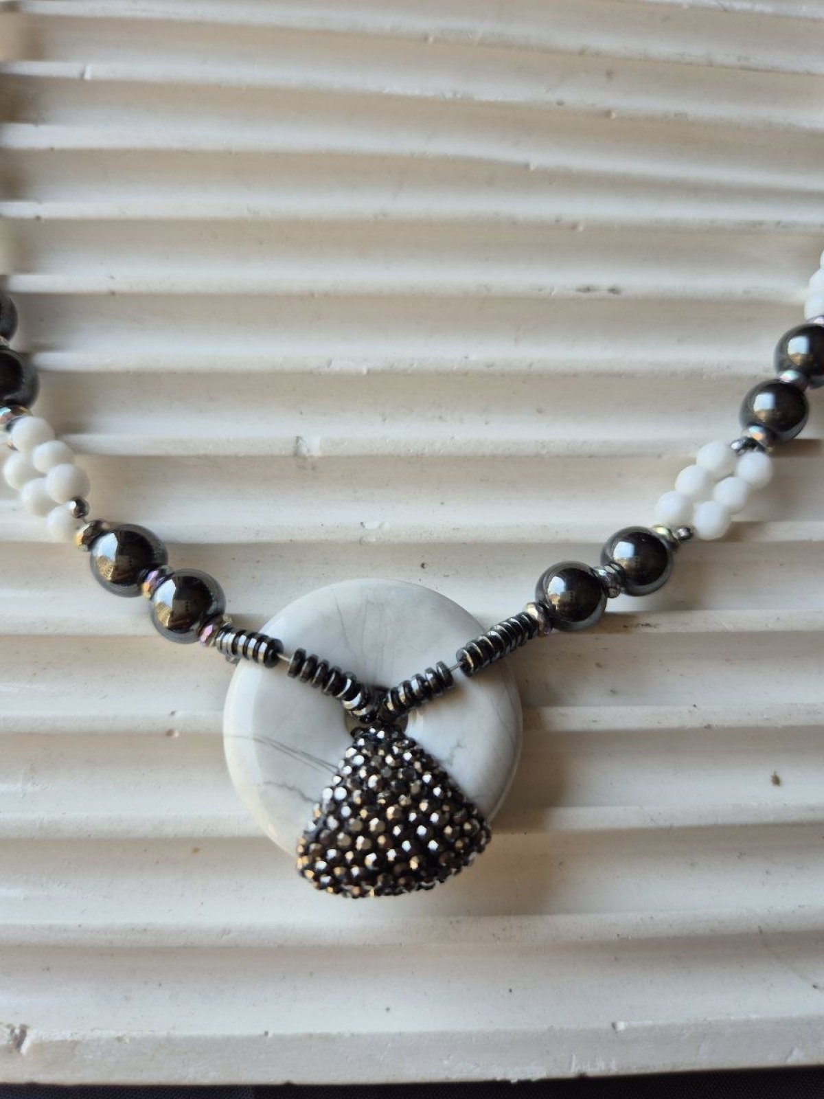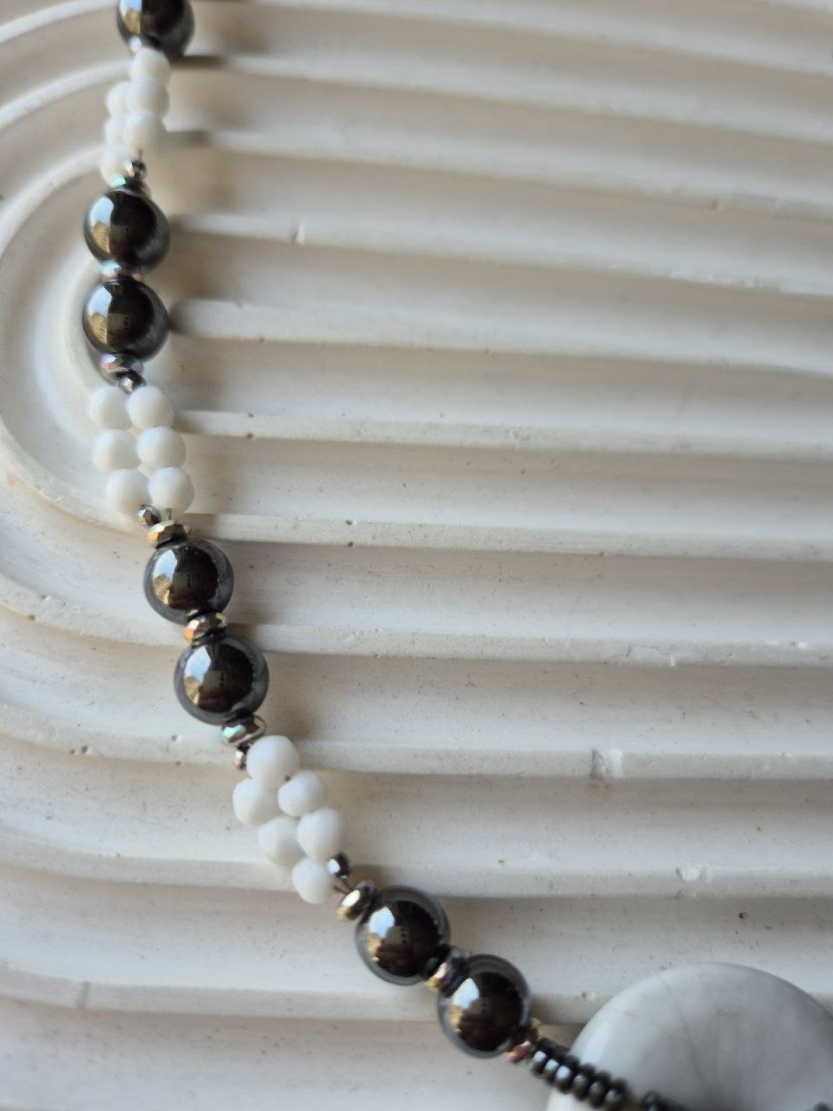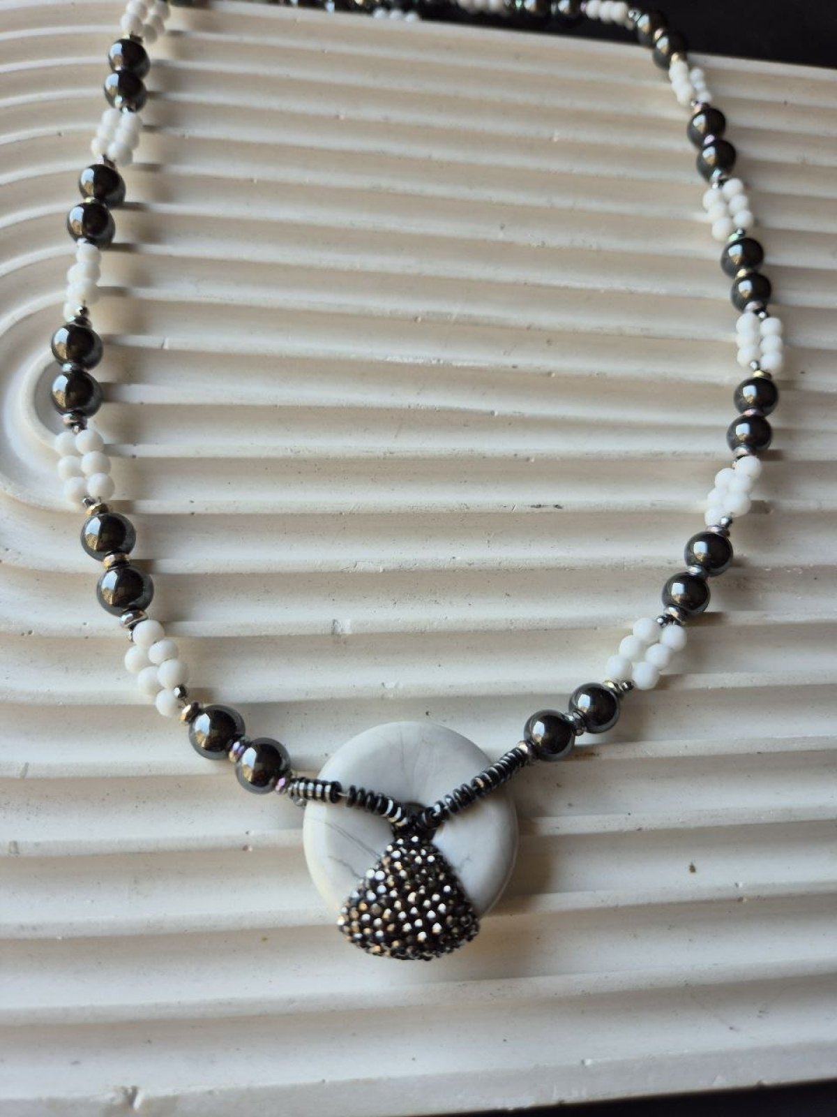 كوليه عقيق مع هيماتيت و فاصل هيماتيت و دلاية دونت مشغولة بالماركيزات