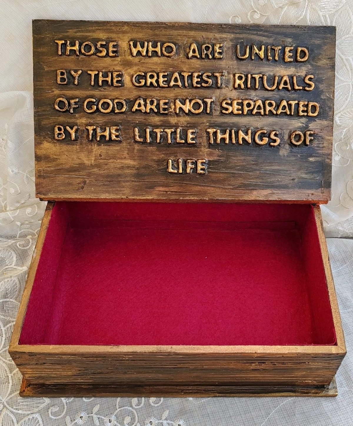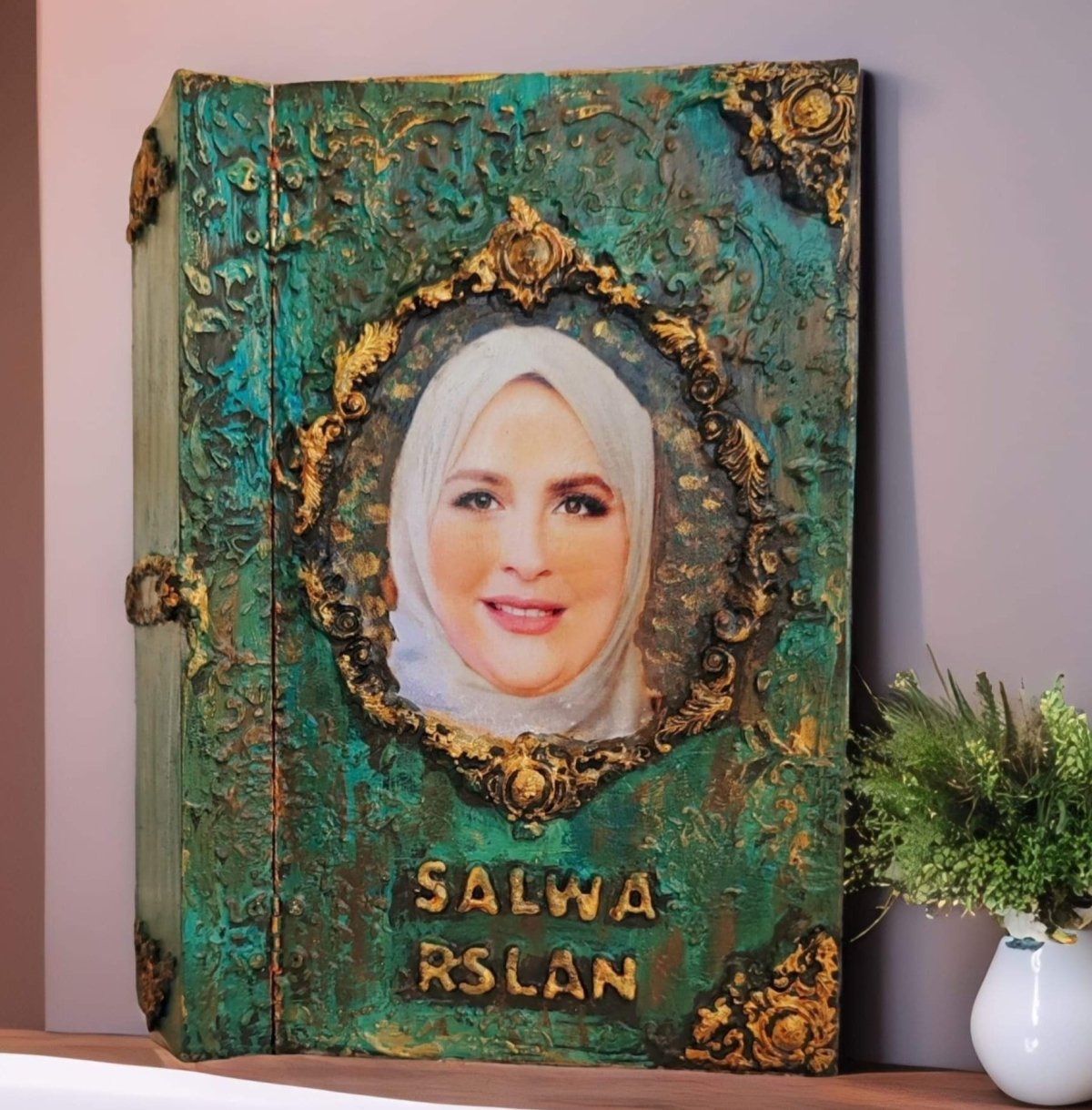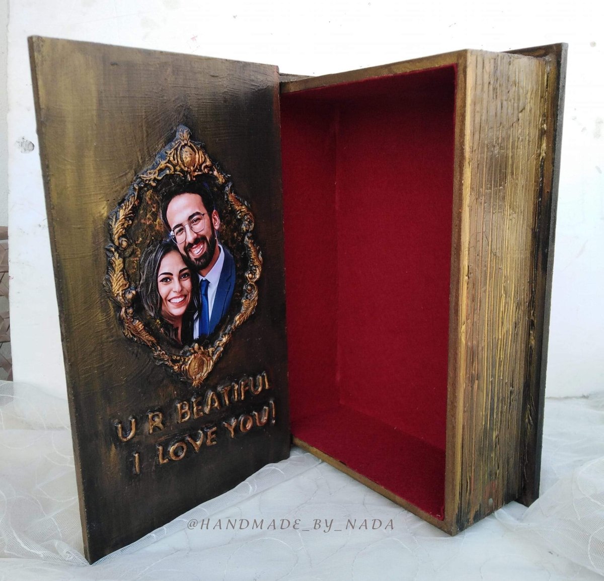 صندوق خشبي عتيق بصورتك شكل كتاب