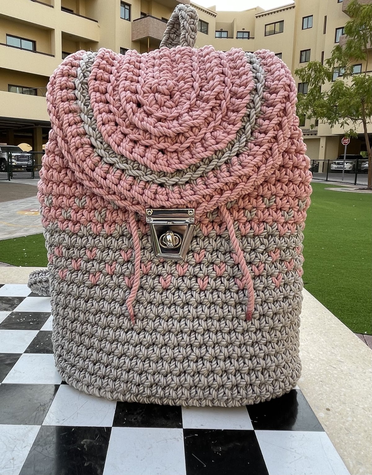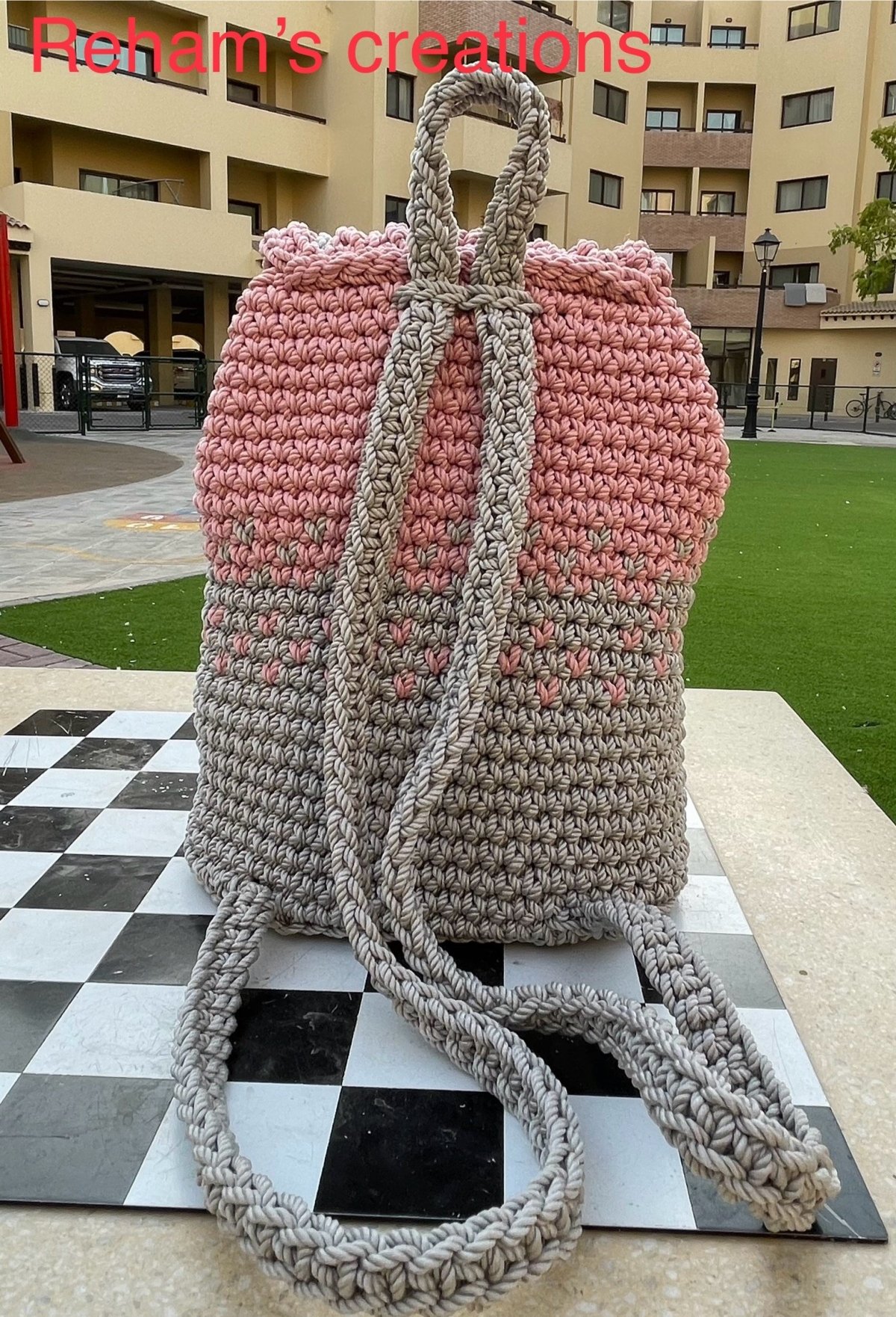 شنطة كروشية مصنوعة يدويا مزيج من لونين