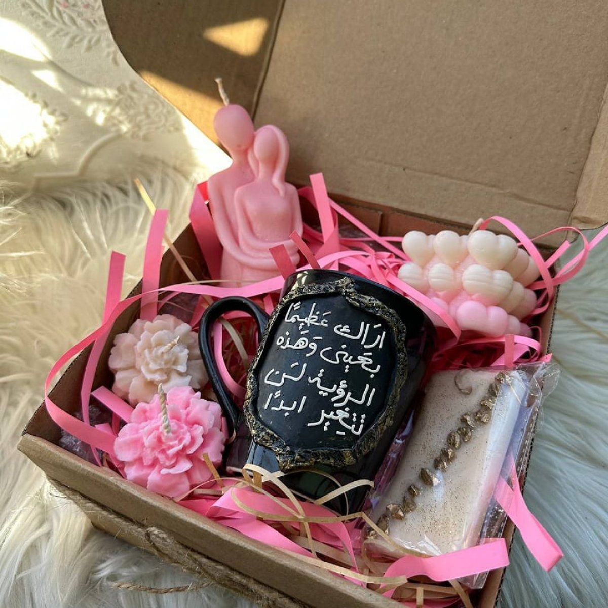 1- شمعة زوجية 120 جرام 2- 2 شمعه ورد وزن الشمعه 40 جرام 3- شمعة قلوب الفقاعات وزن 140 جرام 4- شمعة معطرة بالورد المجفف معلقة لخزانة الملابس والسيارة وزن 40 جرام