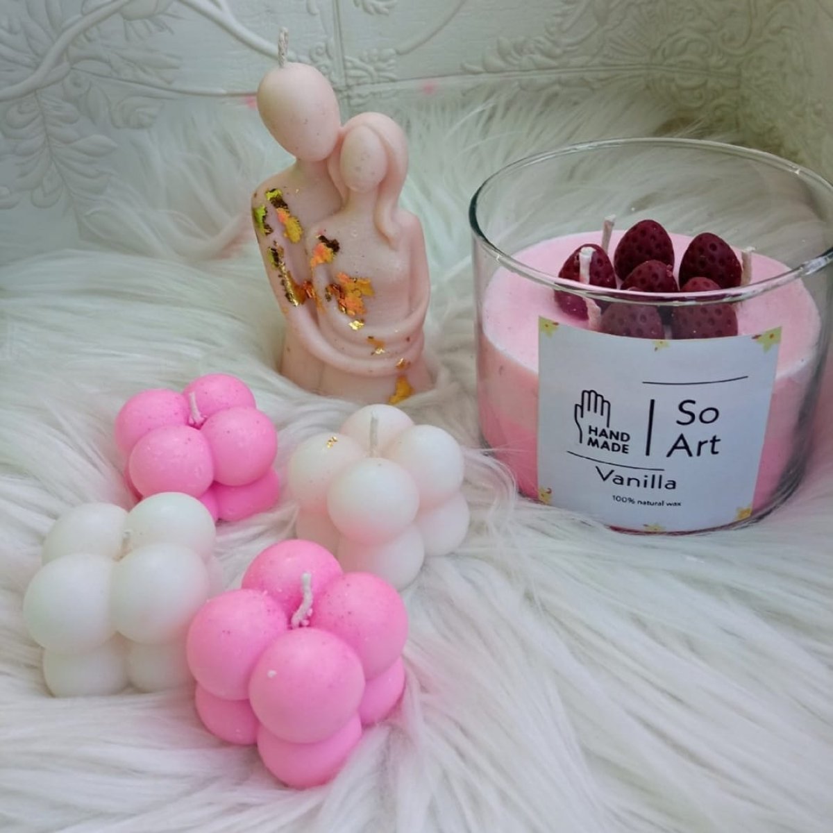 مجموعة شموع الفانيليا مكونه من 1- شمعه بعطر الفانيليا وزن 380 جرام 2- شمعه كابلز بعطر الفانيليا وزن 120 جرام 3- 4 شموع مينى بابلز بعطر الفانيليا وزن الشمعه 40 جرام
