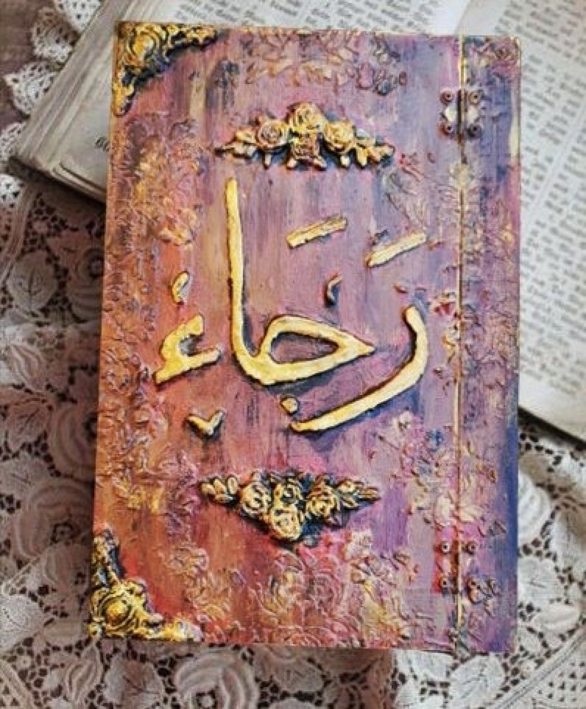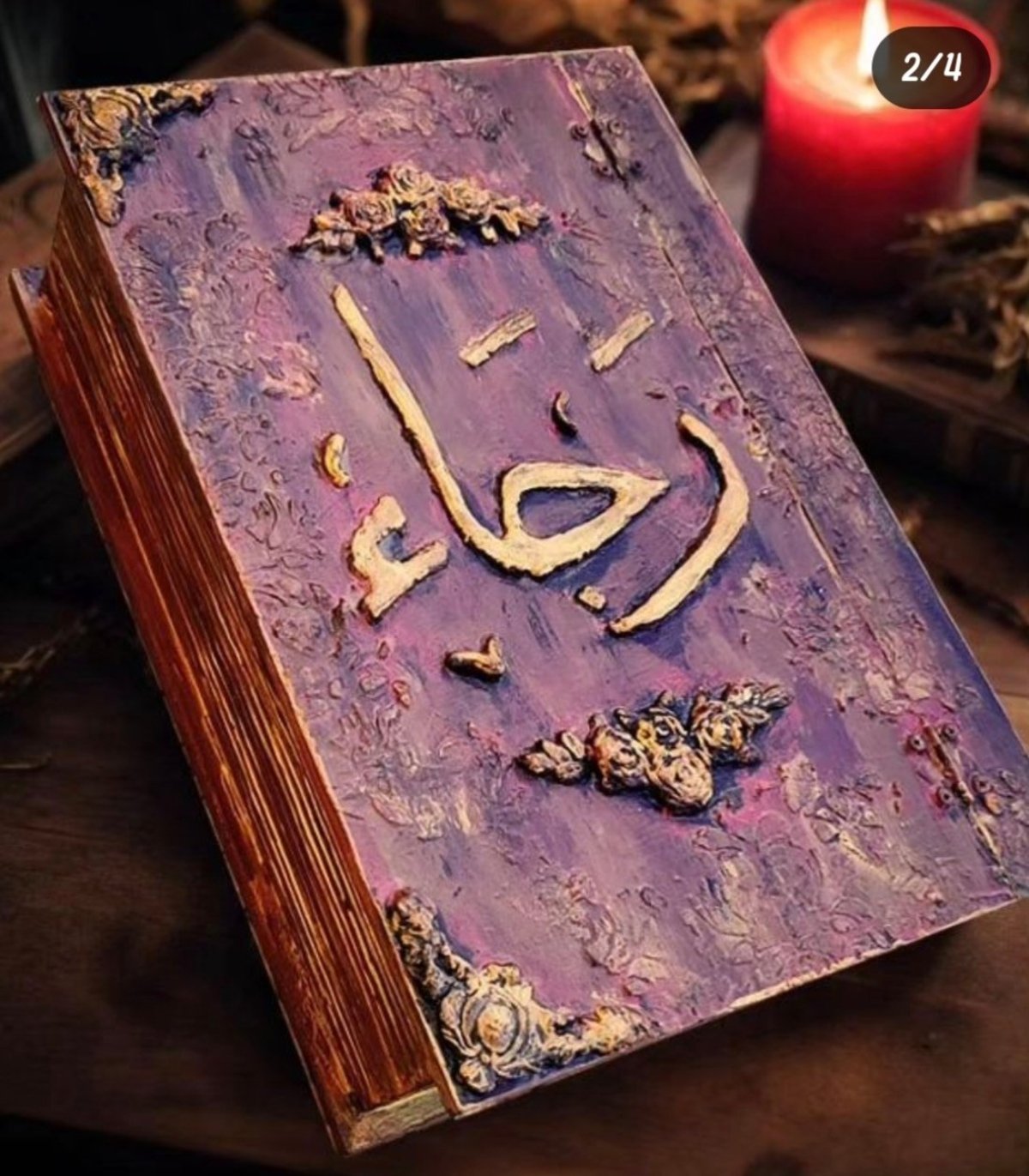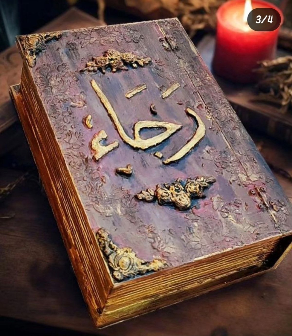 صندوق شكل كتاب محفور بالاسم من الخارج
