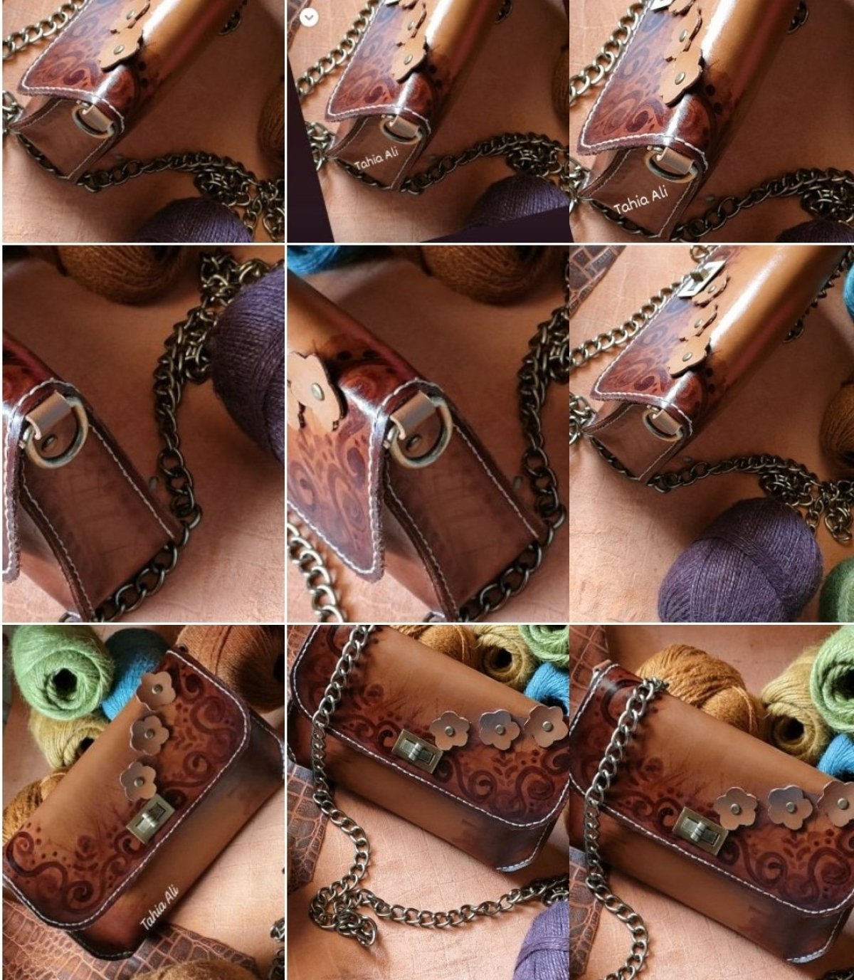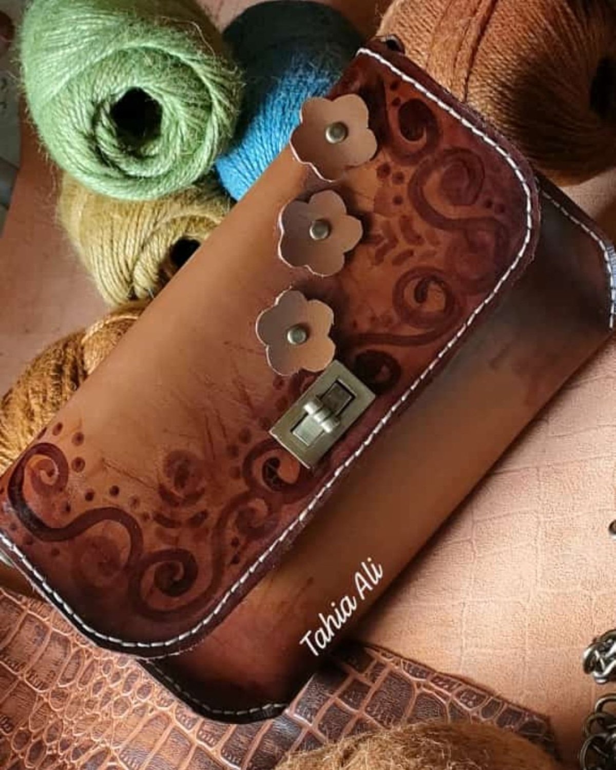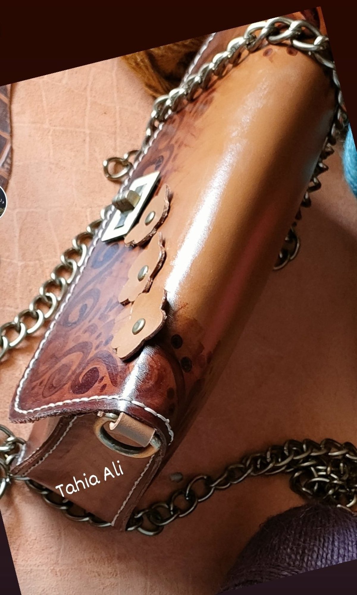 شنطة حريمى جلد طبيعي بتصميم مميز قفل معدنى