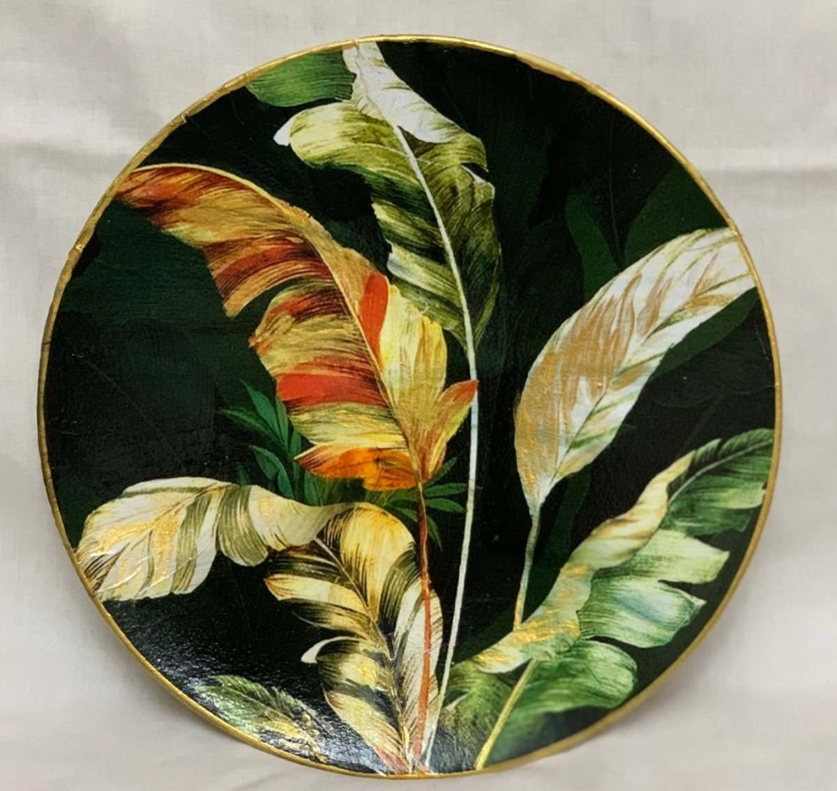 طبق بورسيلين هاند ميد ديكوباج مع رسم صنع باتقان صنع بحب لأجلك المقاس ٢٨ جاهز للتعليق علي الحائط