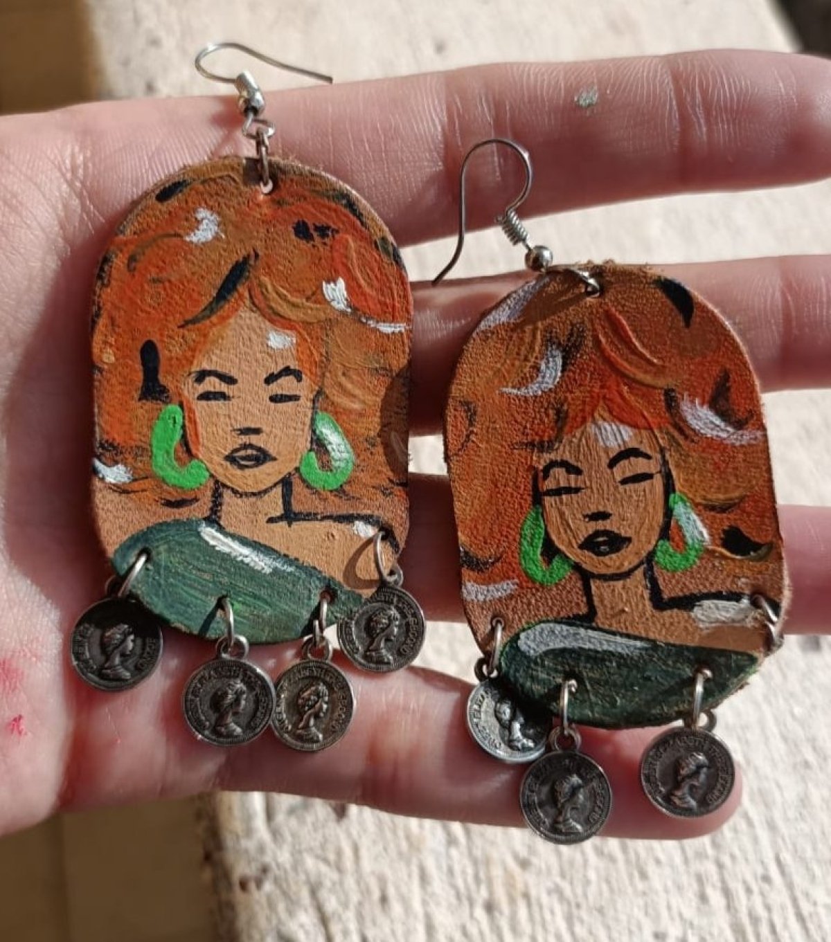 حلق جلد طبيعي الوان اكريلك رسم وتلوين يدوي طول 7سم