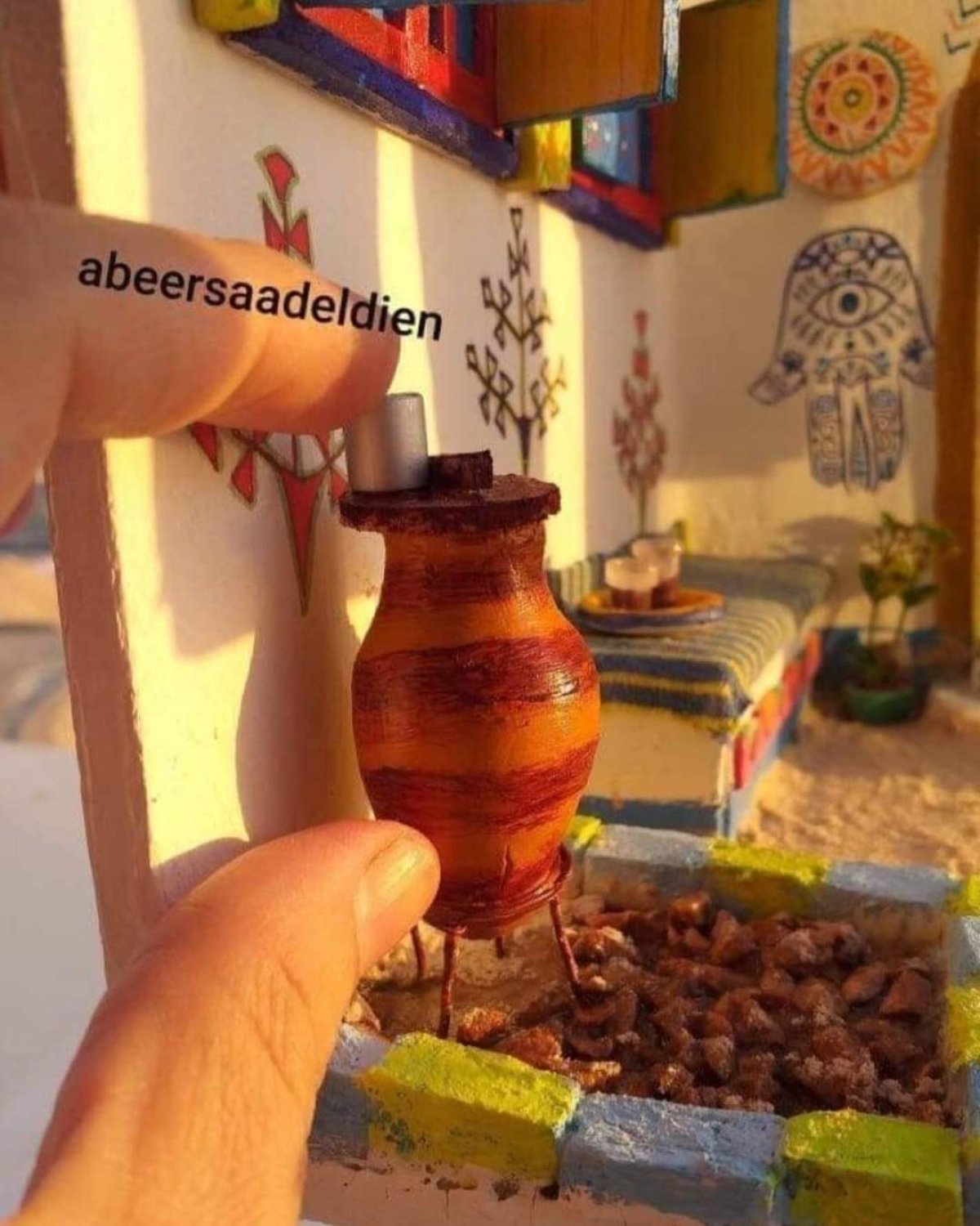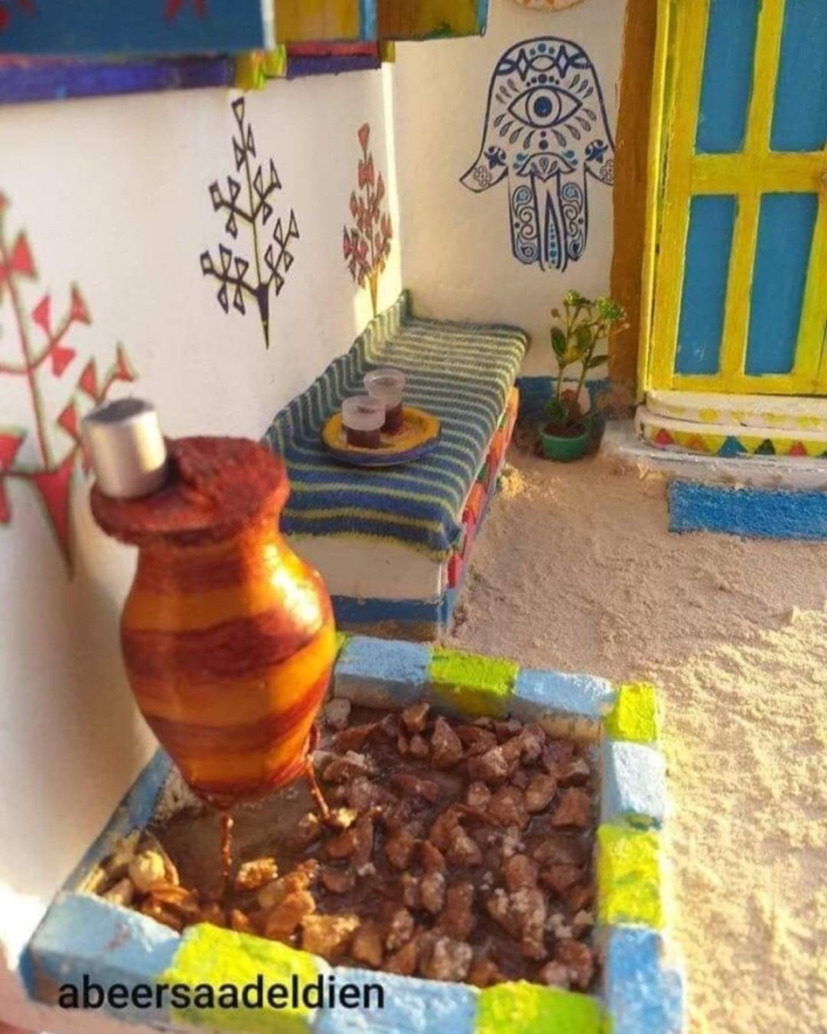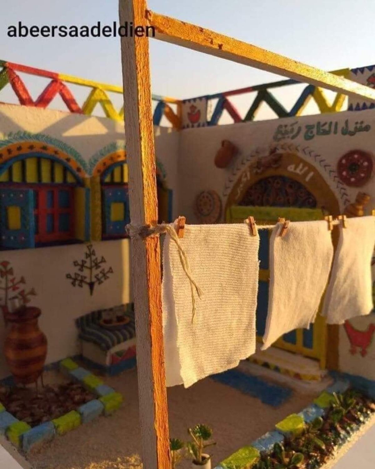 بيت نوبي مصغر الخامة خشب المقاس ٢٠×٢٠ سم مزود باضاءة