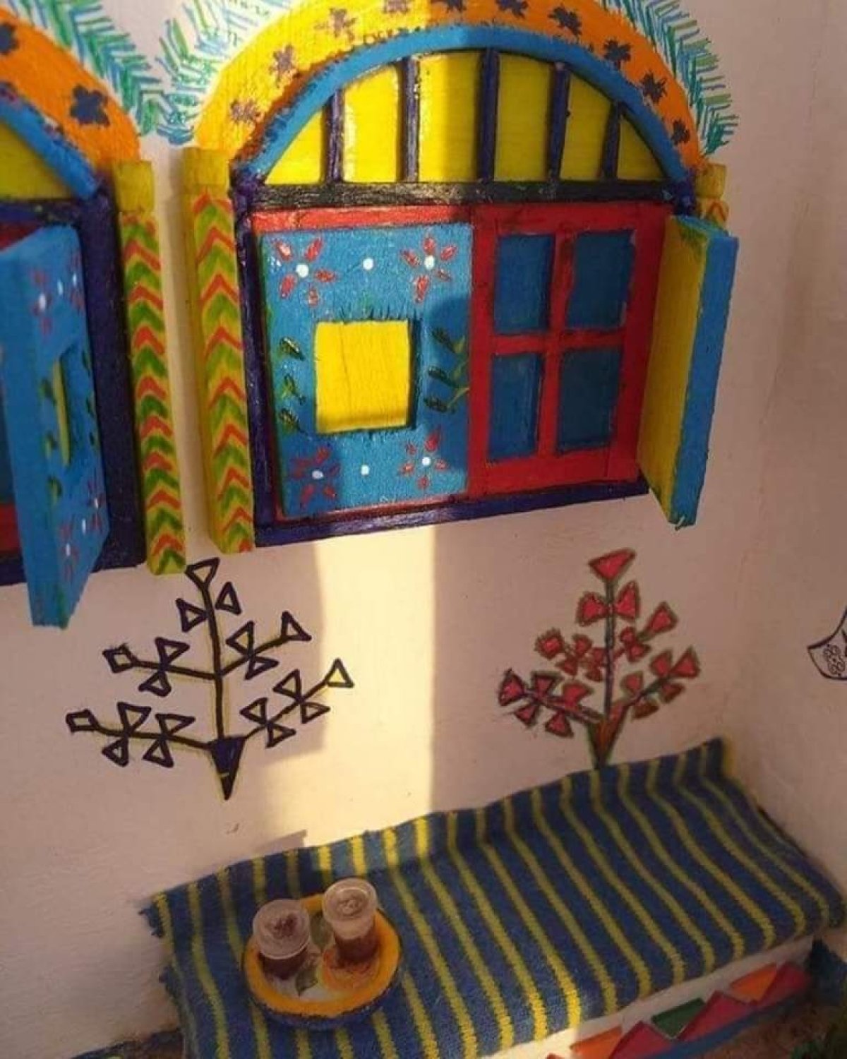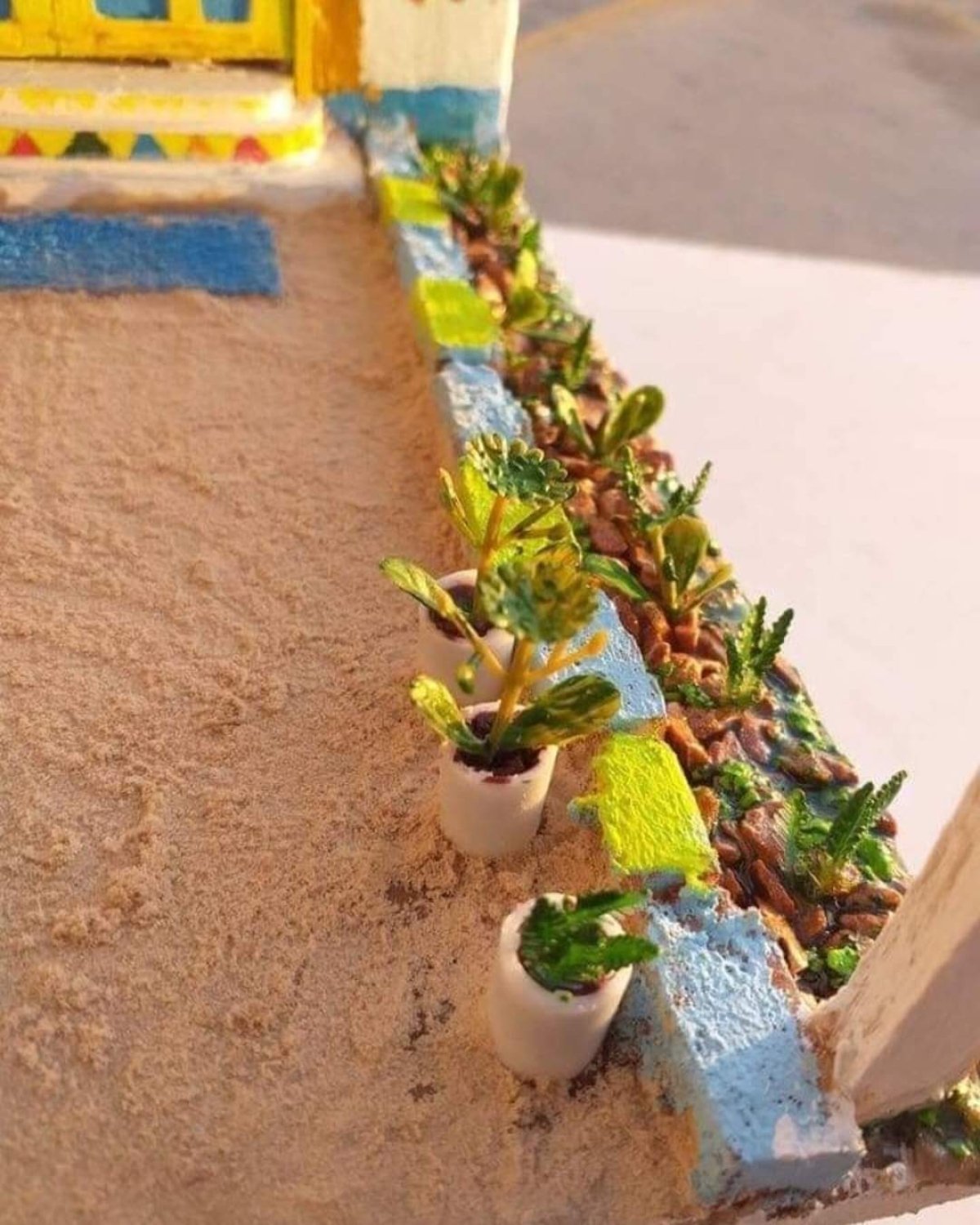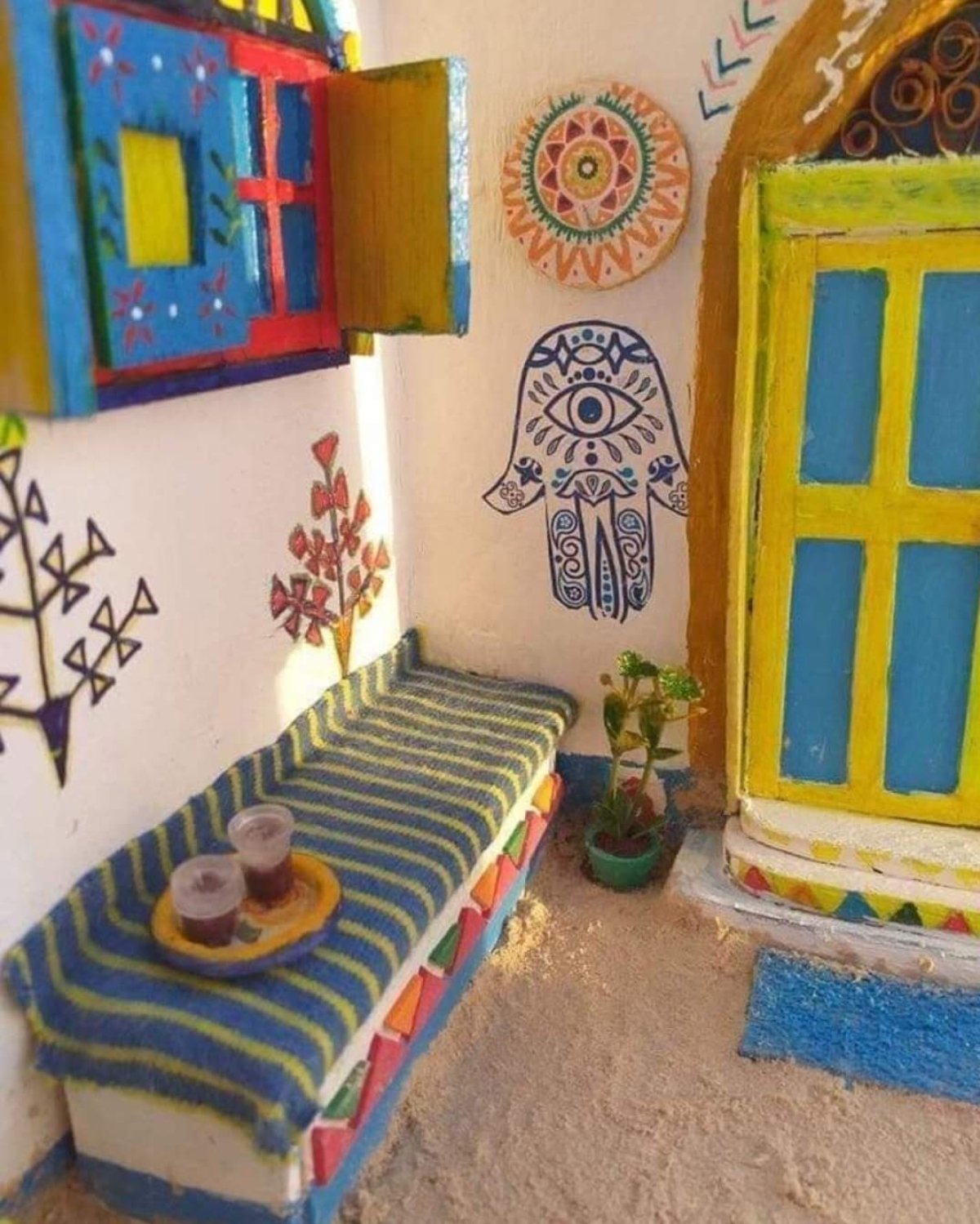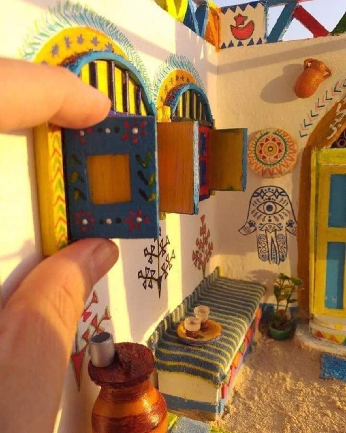 بيت نوبي مصغر الخامة خشب المقاس ٢٠×٢٠ سم مزود باضاءة