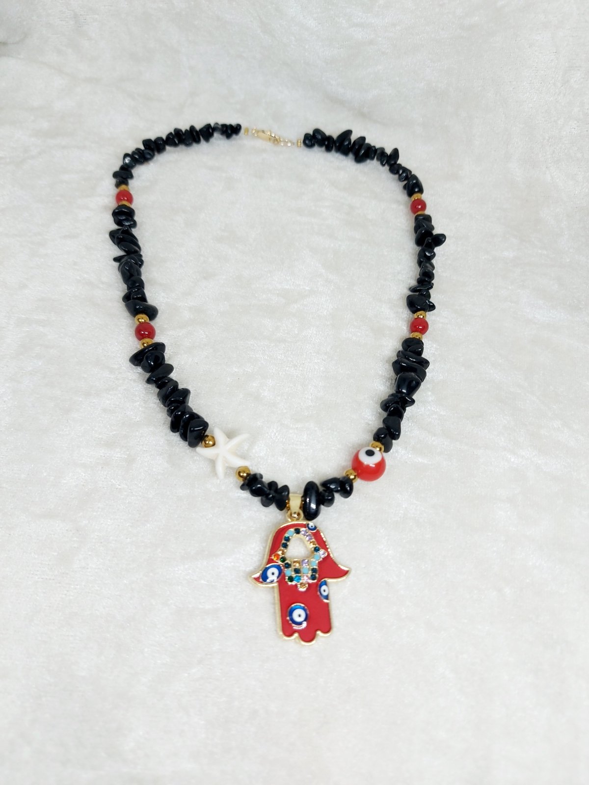شوكر من احجار العقيق مطعم بفواصل هيماتيت ونجوم حجر فيروز مزود بسلسلة للطول