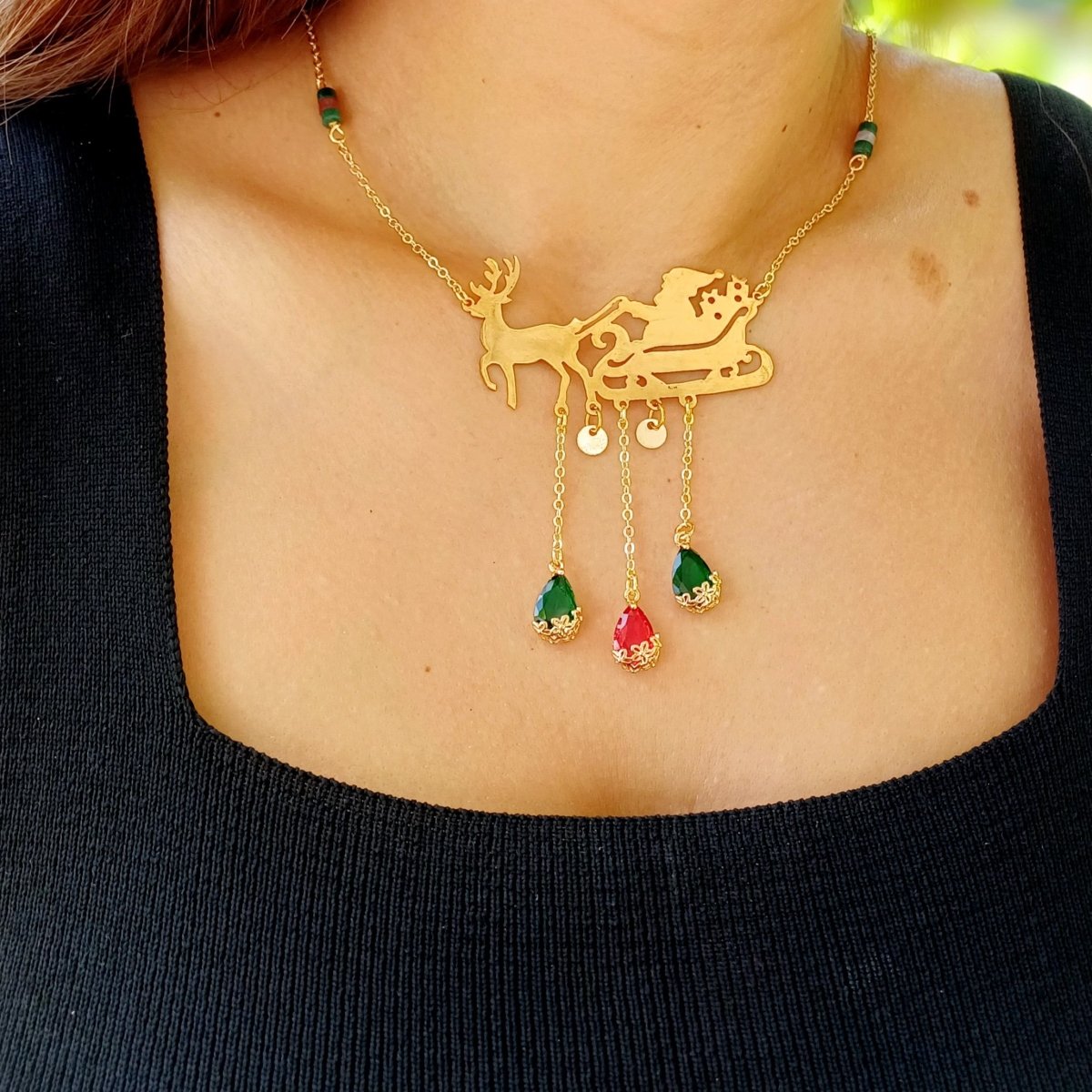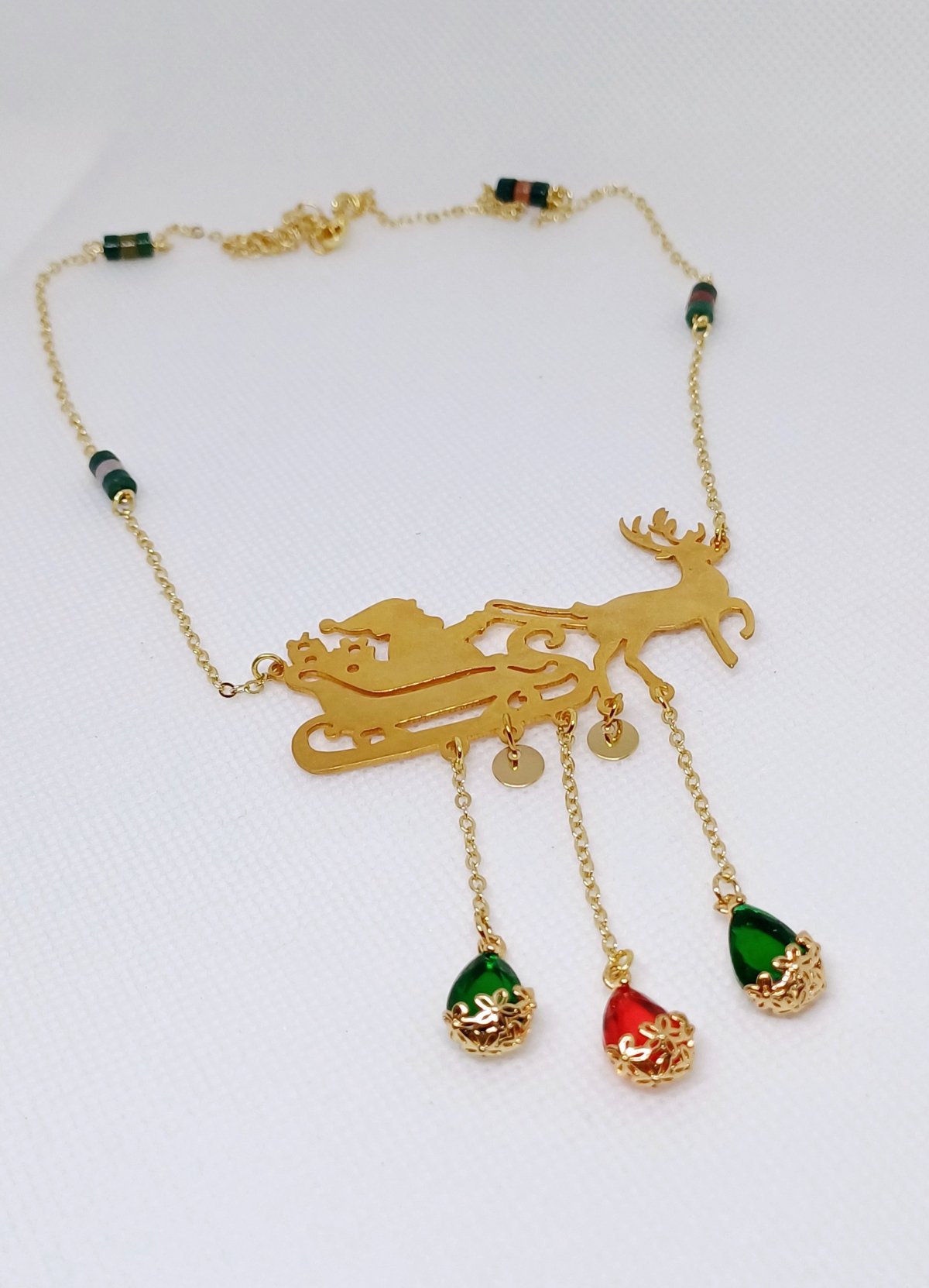 كوليه مميز من النحاس المطلي دهب مستوحي من اجواء الكريسماس المميزة