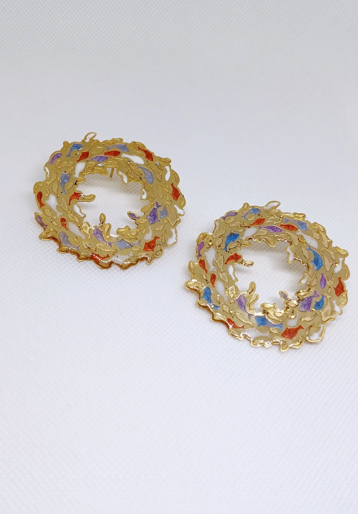 حلق مميز ع٢ري مناسب لاجواء الصيف من النحاس المطلي دهب و مطعم بألوان الريزن هاند ميد بالكامل