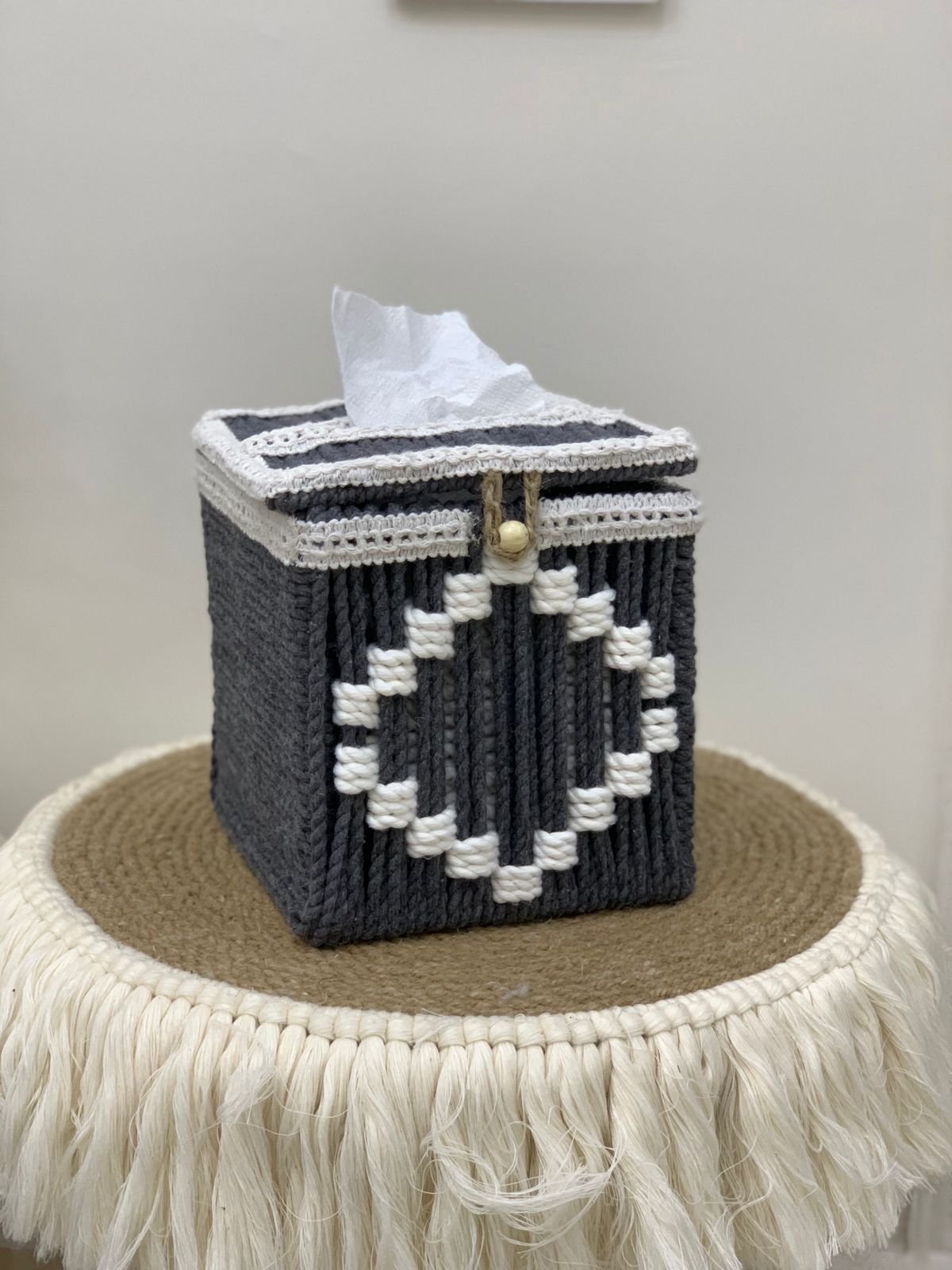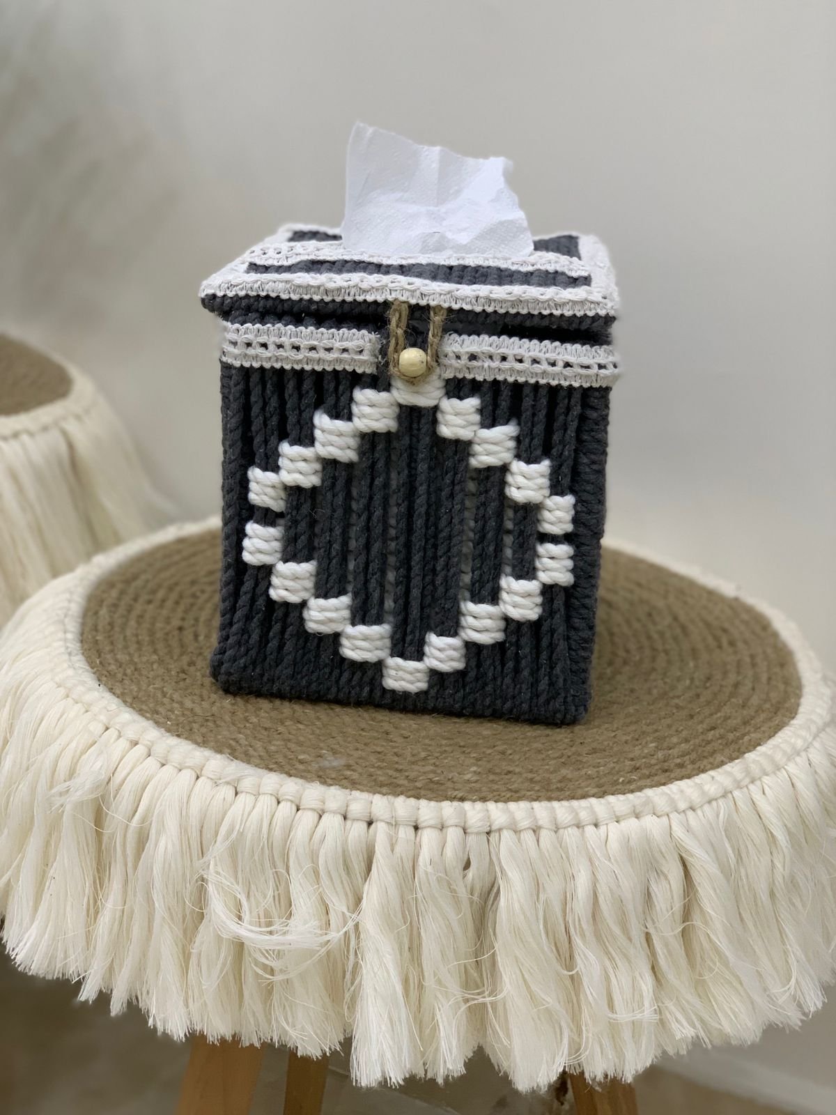 مصممة على شاسيه معدن مصنوعة من أجود أنواع خيوط المكرميه... لونها سنجابي *أبيض