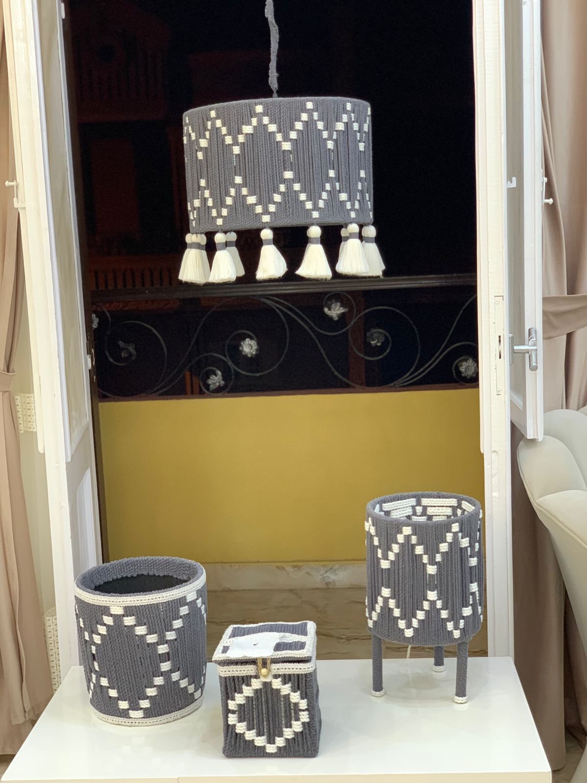 نجفه /قطرها 40 سم ×ارتفاع 25 سم و بالشراشيب حوالي 37 سم