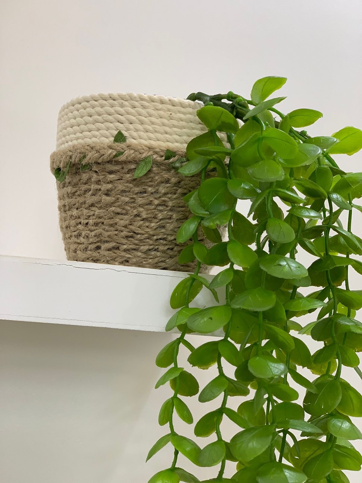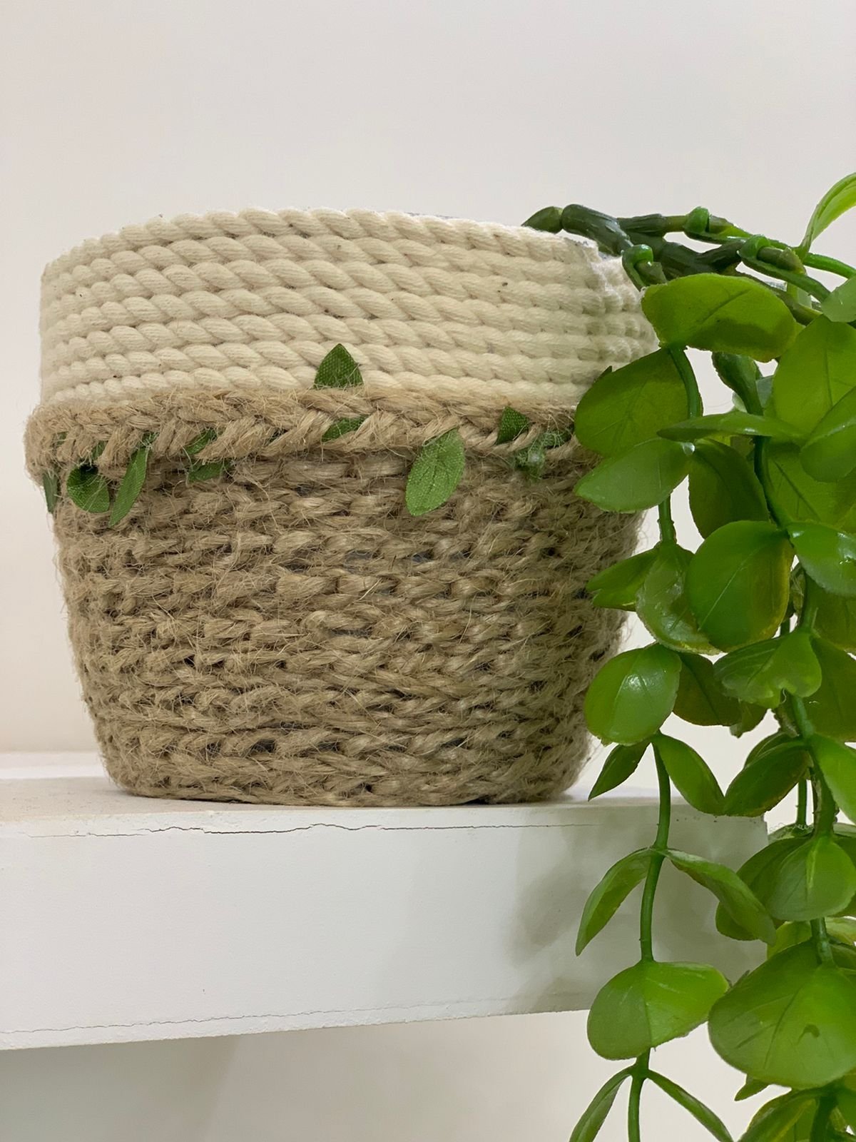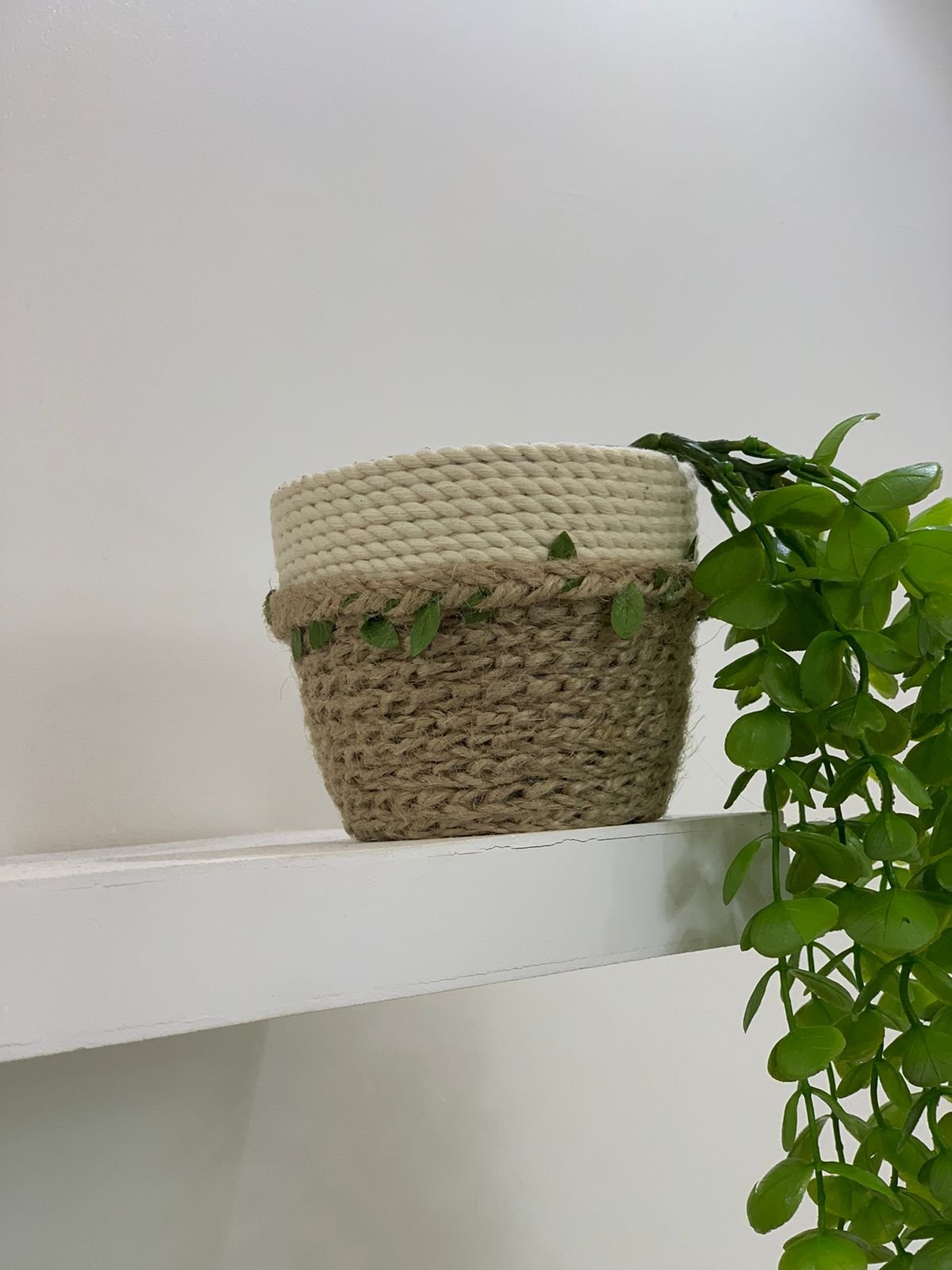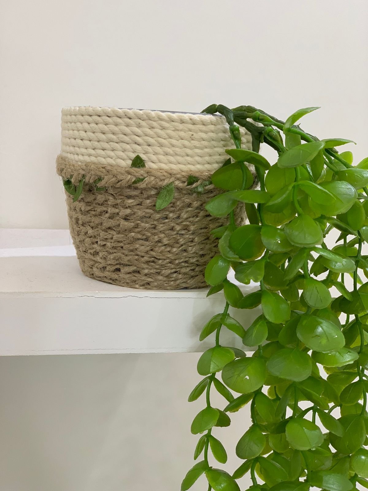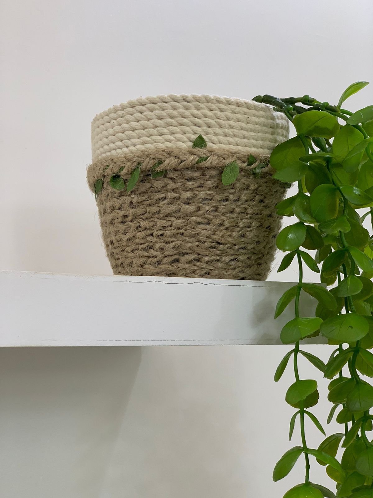 شكل جديد لبوت أزياء الزرع.. مصمم بخيوط المكرميه + خيوط الخيش المغزوله على شكل غرزة سلسلة وبينها فاصل على شكل ضفيره من الخيش.. شكلها ممتع دون.. وتخلص الشلال على رف ديكوري او أي مكان مرتفع