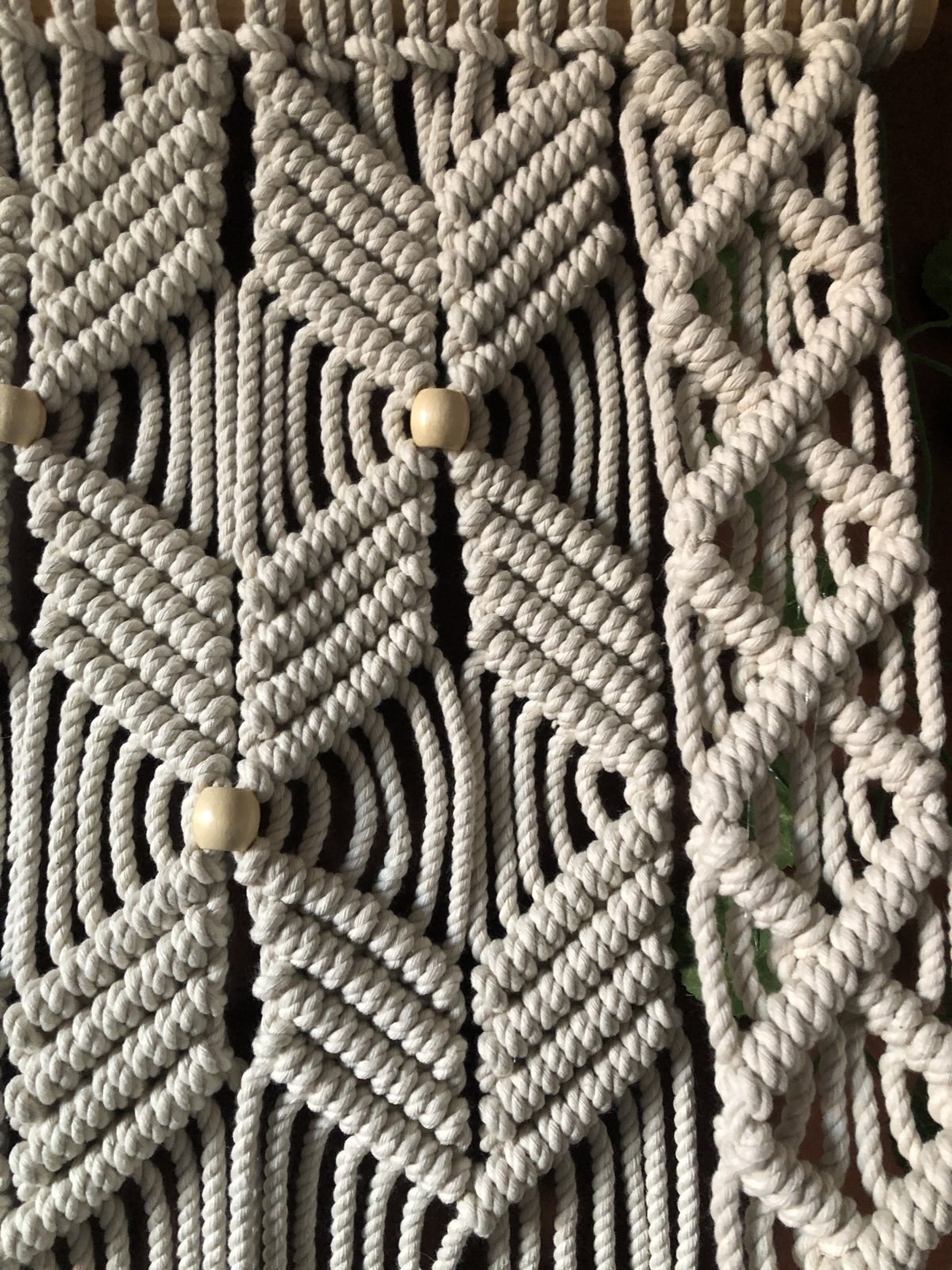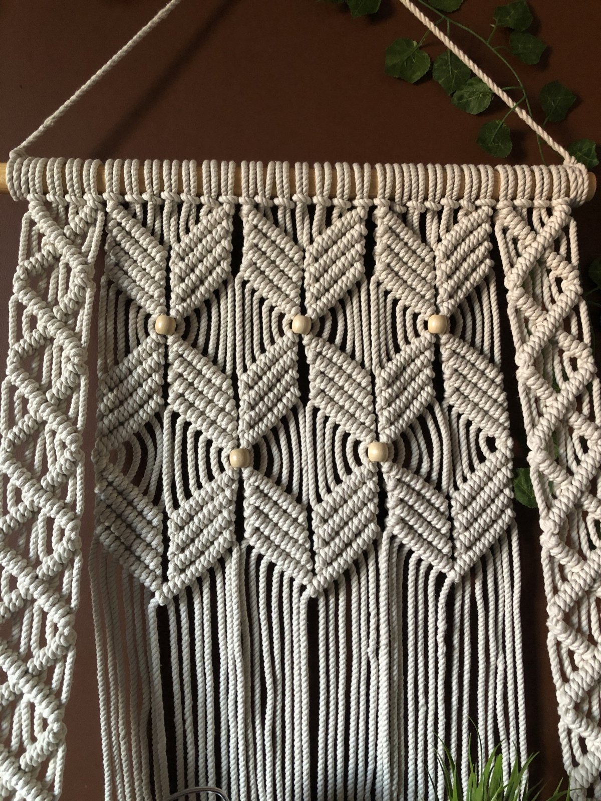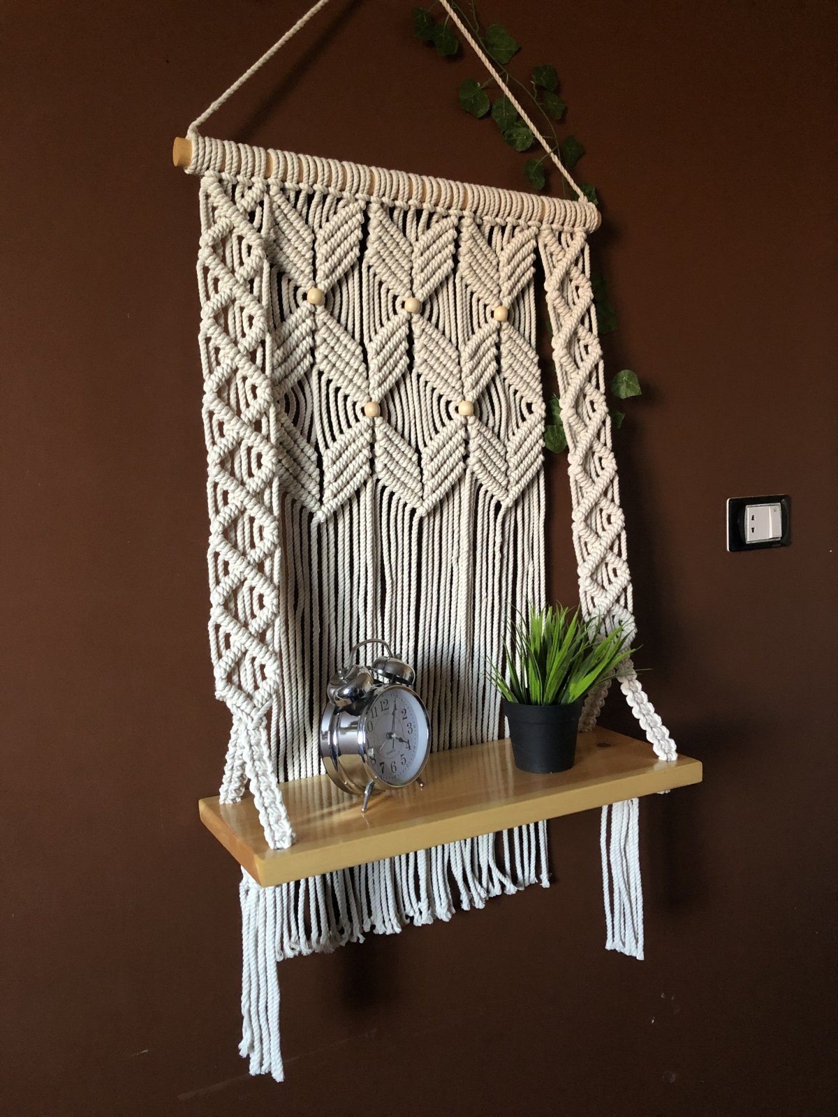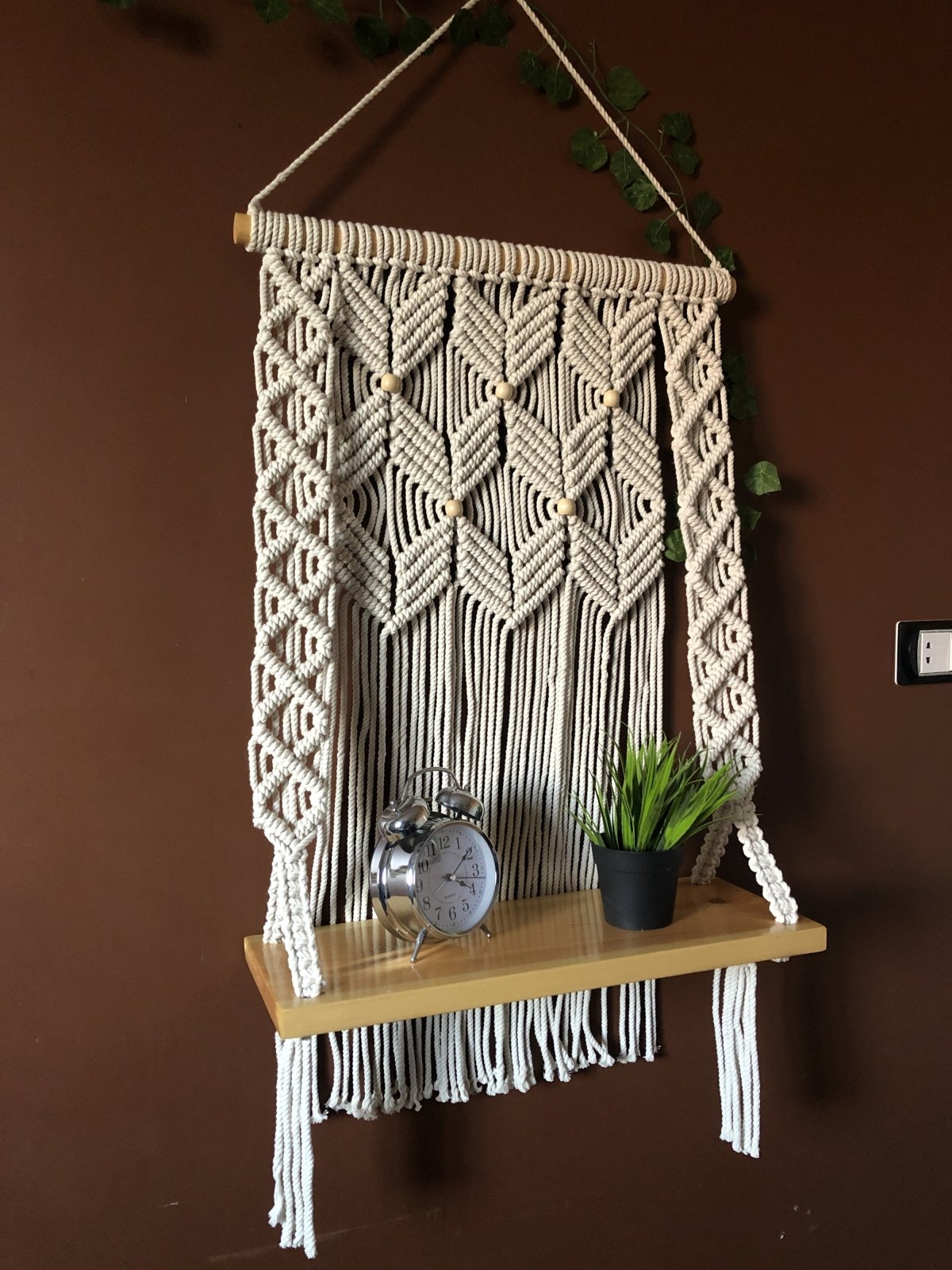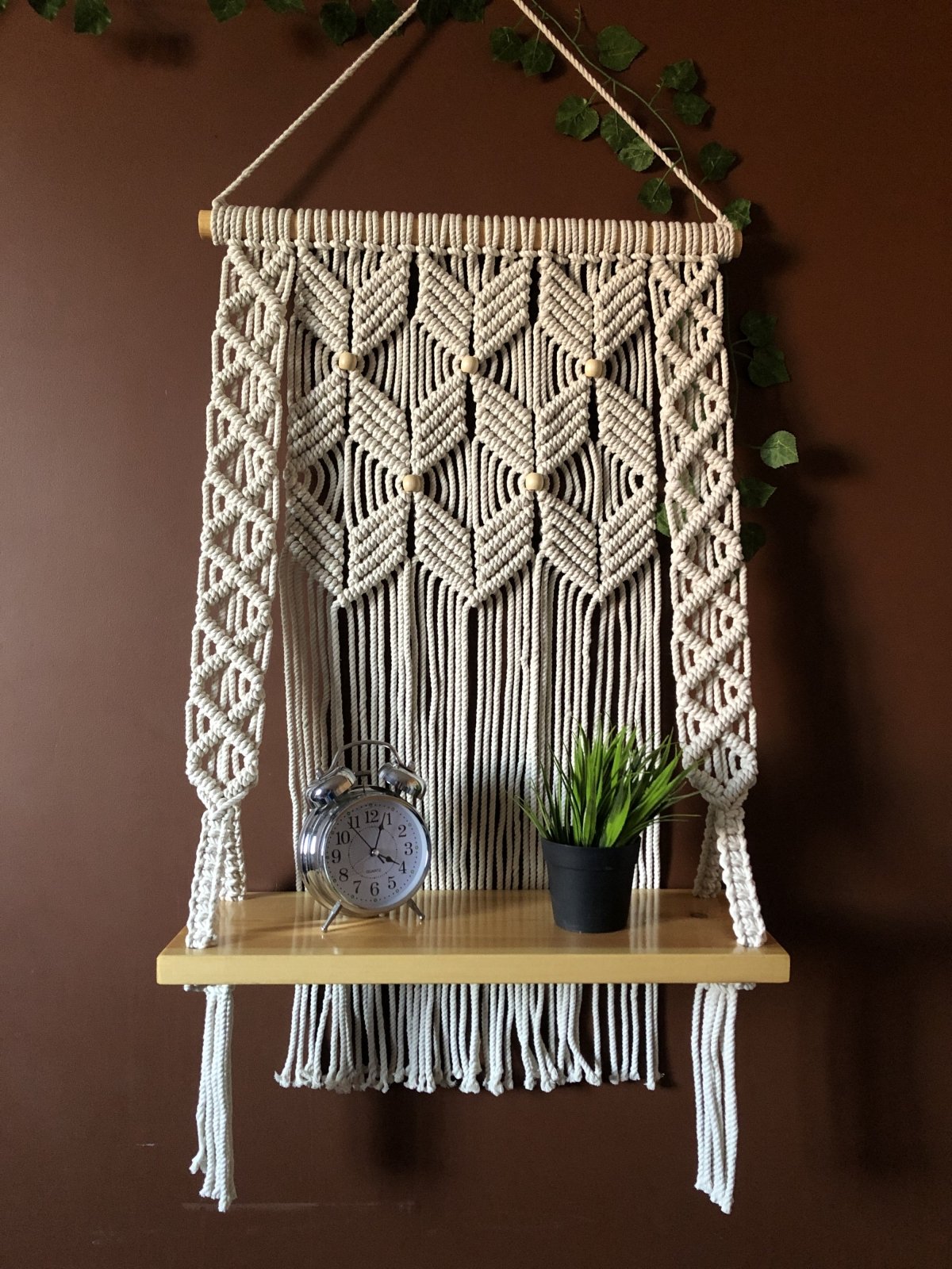 رف مكرمية بتصميم عصري مُزيّن بالخرز ، مقاس ٦٠ عرض ، متاح تنفيذ جميع المقاسات والألوان
