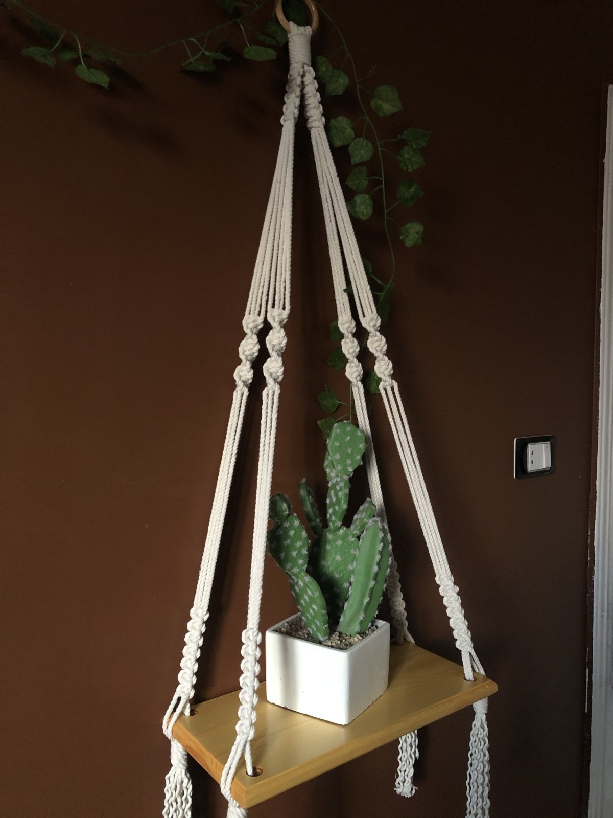 رف مكرمية بتصميم بسيط مقاس ٤٠ سنتي ، متاح تنفيذ جميع المقاسات والألوان
