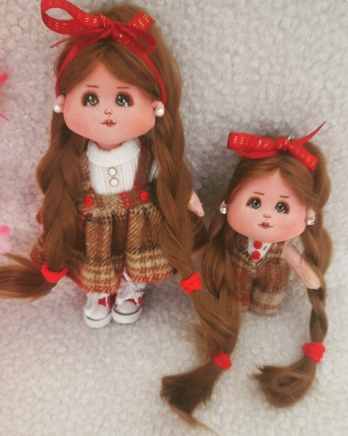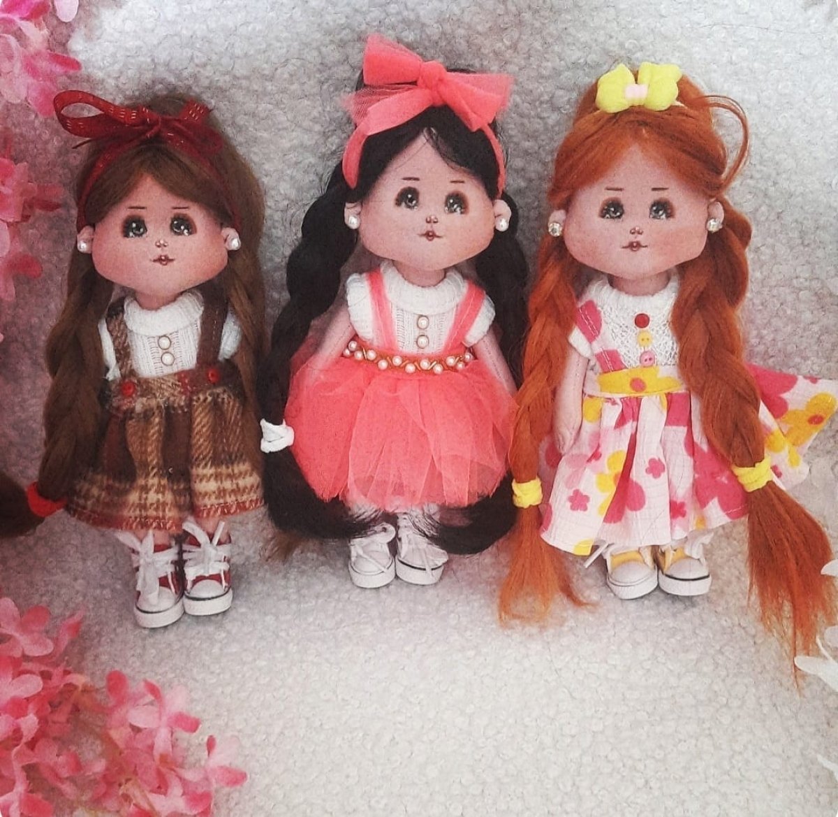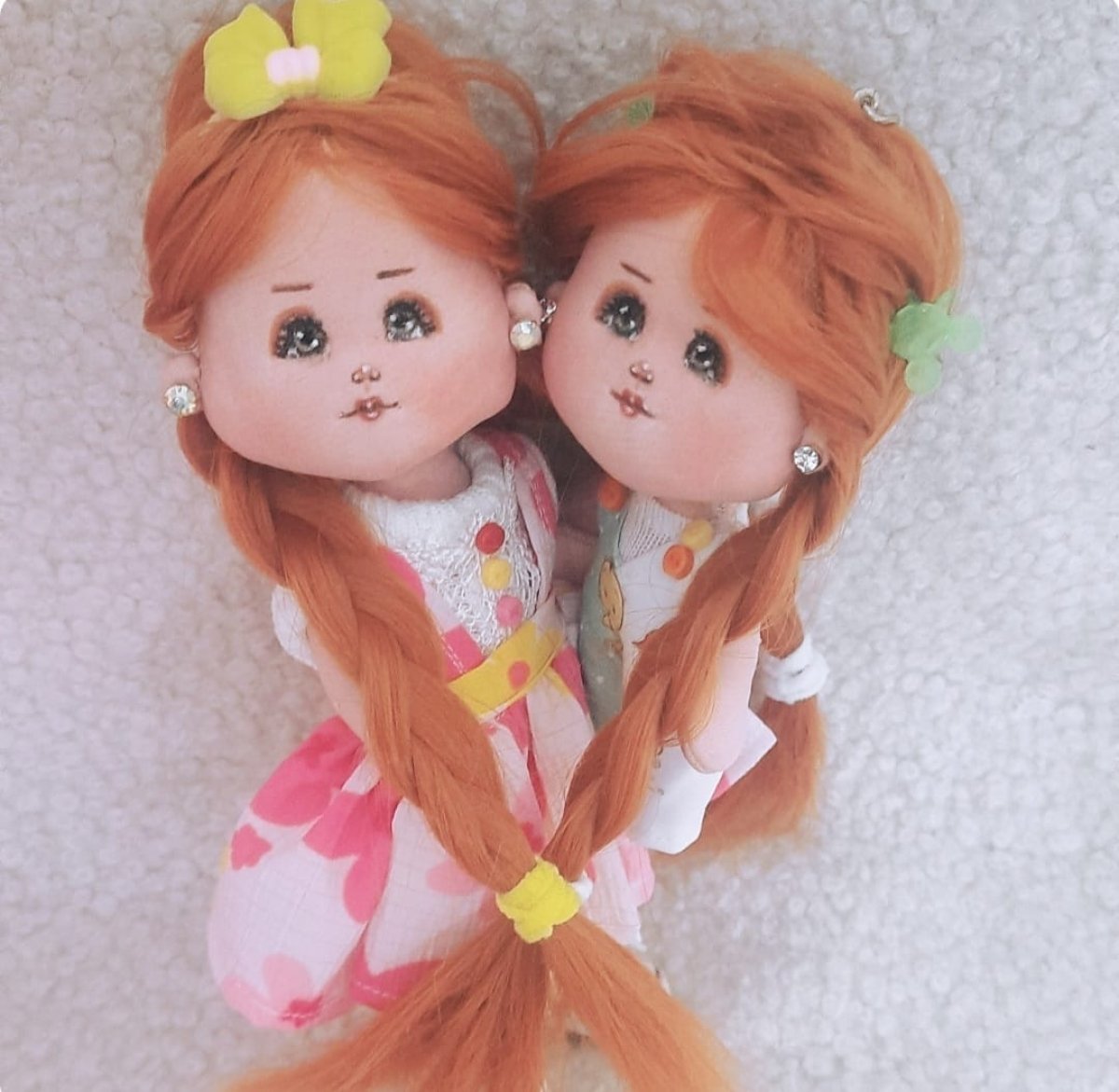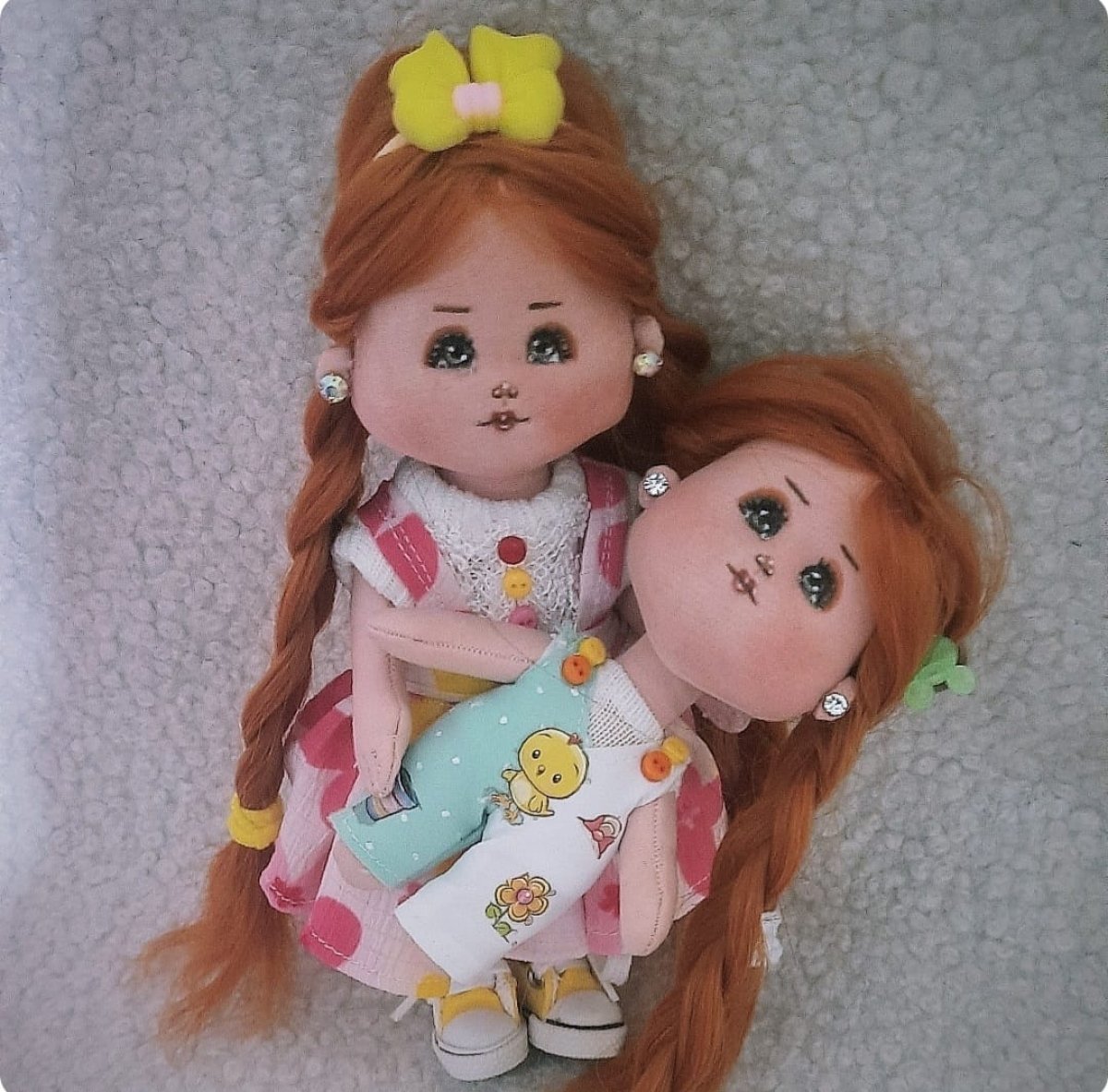 عرايس هاند ميد من القماش مناسبه لكل الأعمار وآمنه تماما علي الأطفال الملامح مرسومه يدوي وعليها ماده عازله لثبات الالوان وحمايتها والحفاظ عليها والشعر حراري مخصوص للدمي والملابس منفصله يمكن خلعها