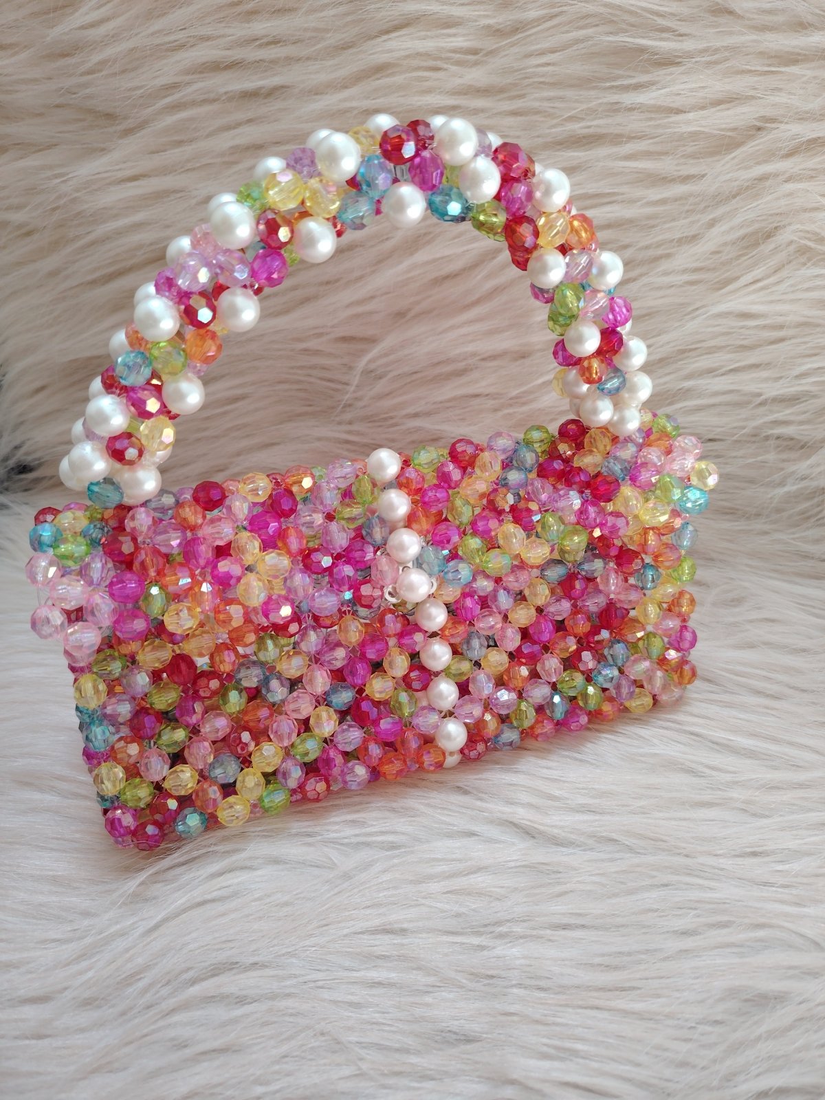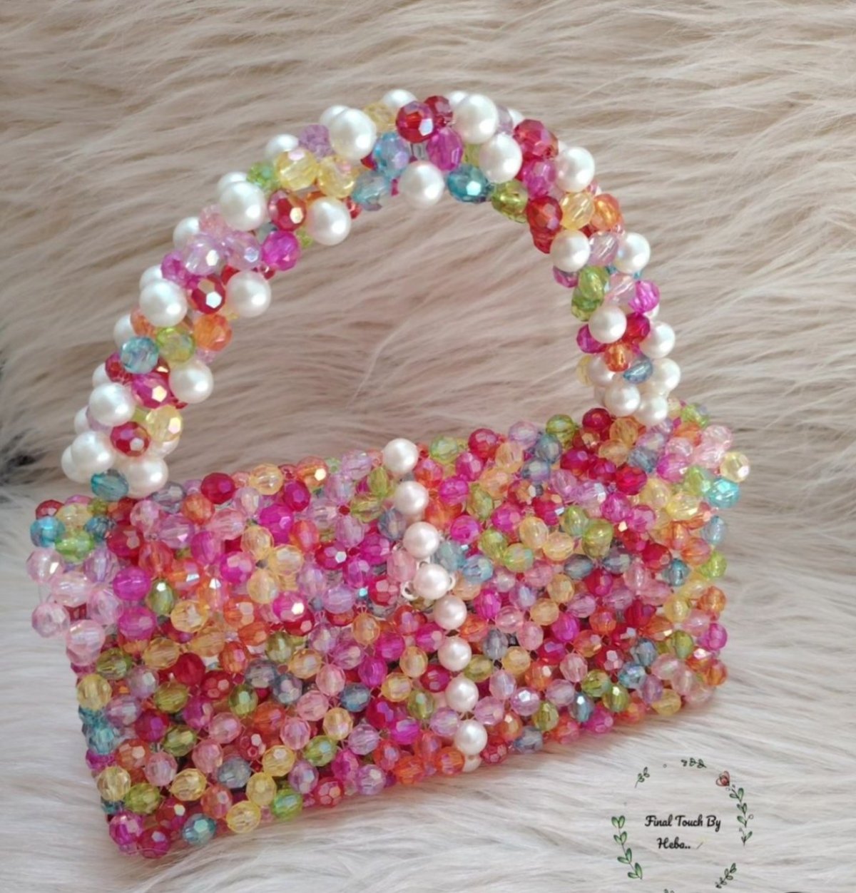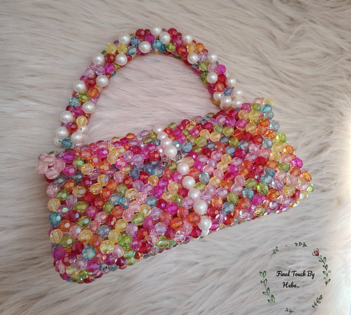 شنطة ميكس الوان كريستال چانچا مع اللؤلؤ