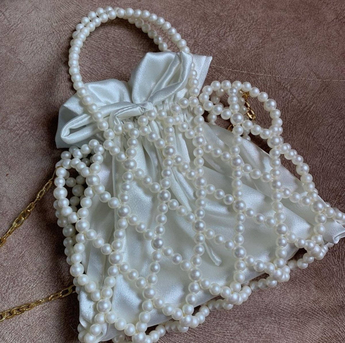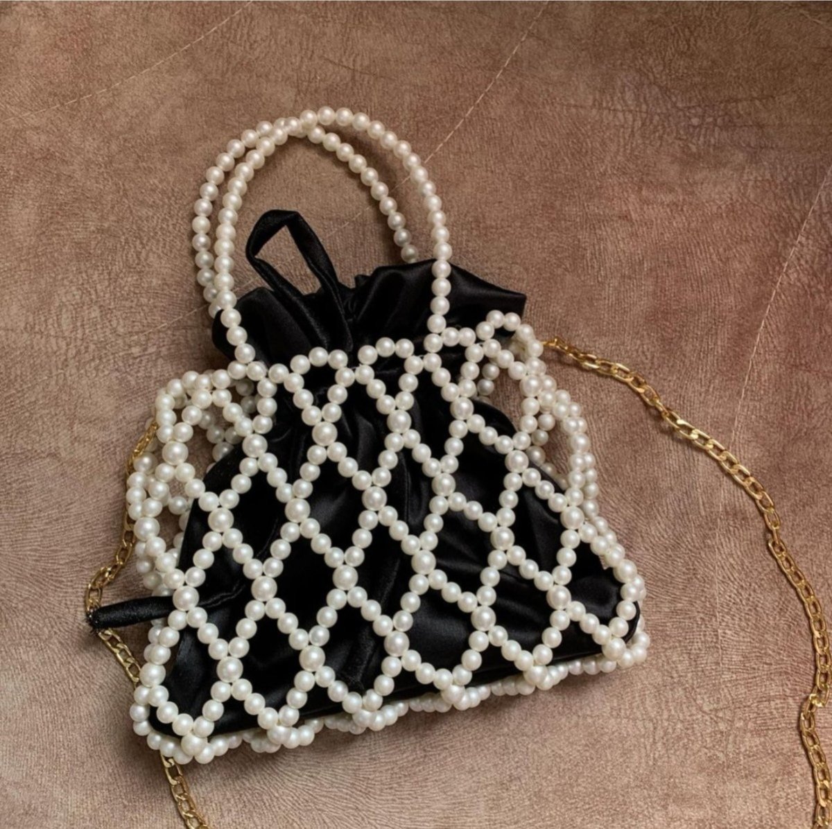 مع حزام طويل من اللؤلؤ أو سلسلة ذهبية