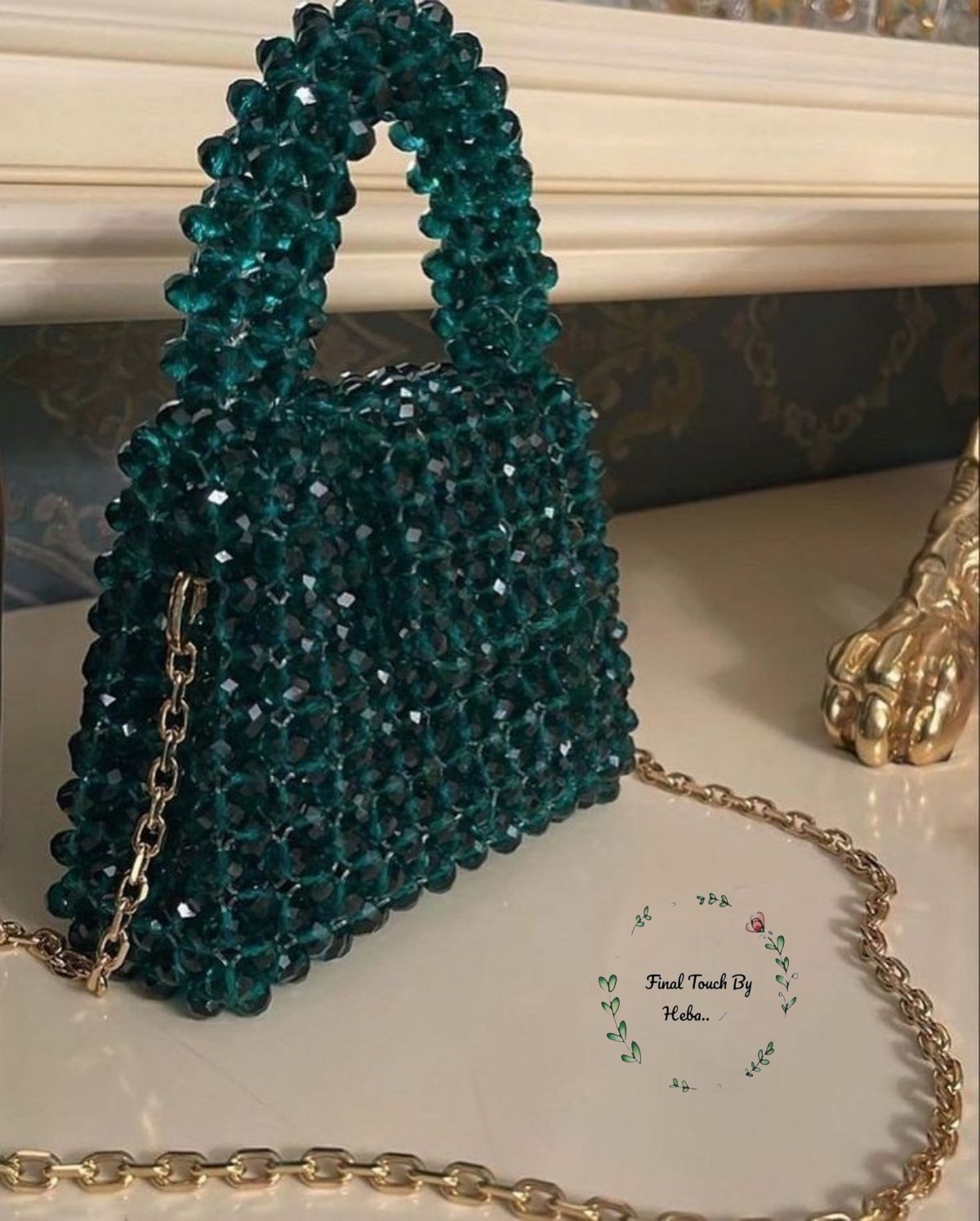 شنطة من اللون الاخضر الملكي حجم متوسط مزودة ب يد من اللون الجولد