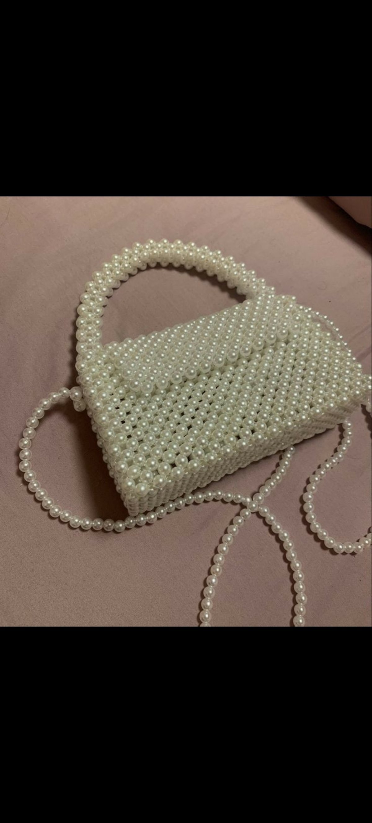 شنطة من اللؤلؤ متوسطة الحجم مزودة بيد طويلة من اللؤلؤ