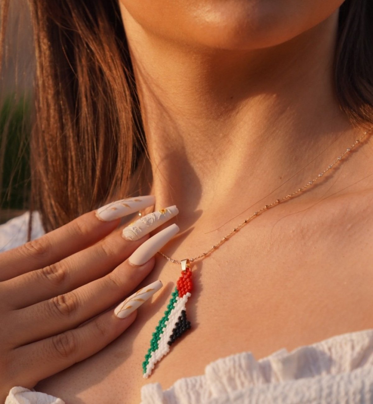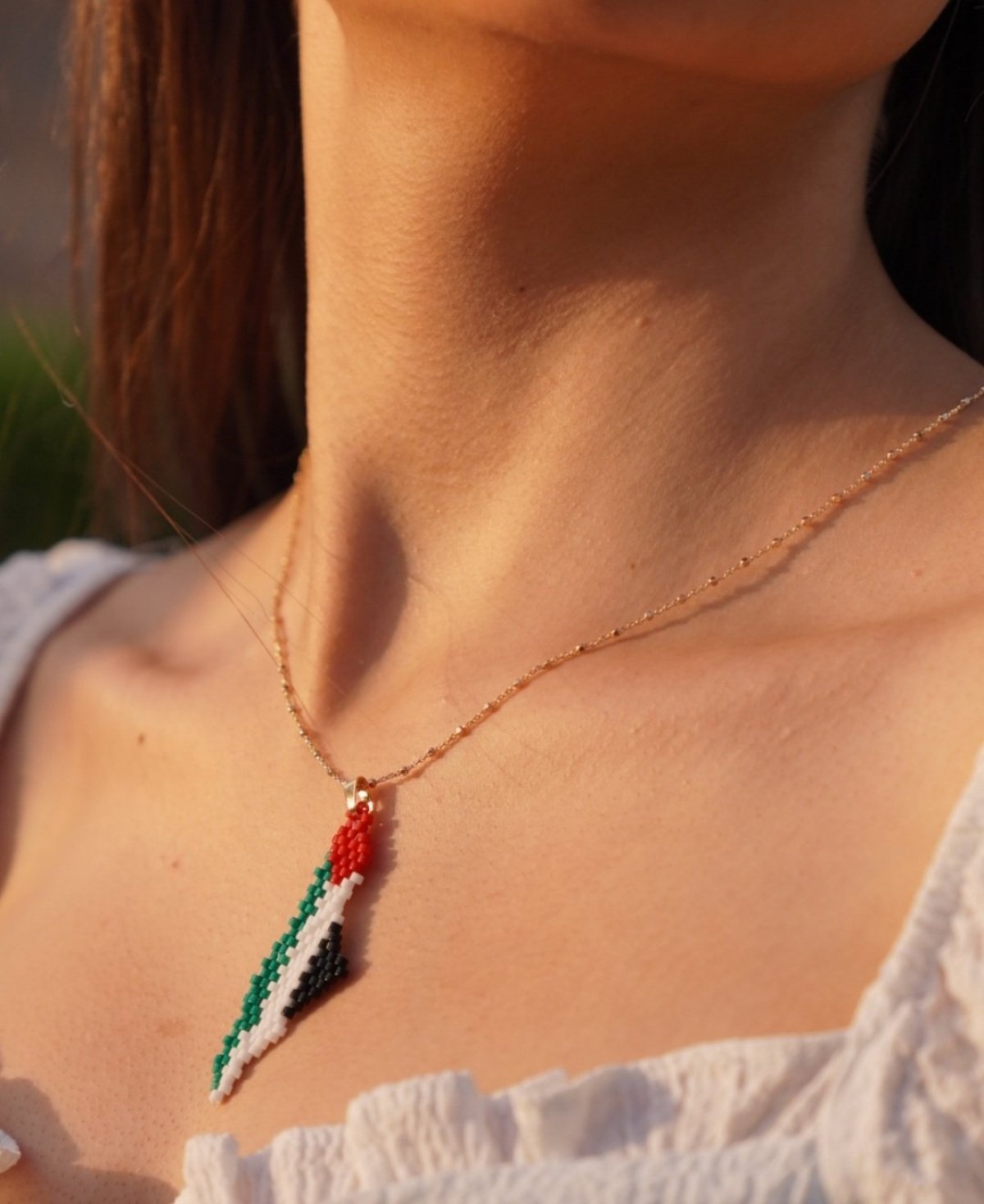 سلسال خريطة فلسطين بألوان العلم من خرز الميوكى