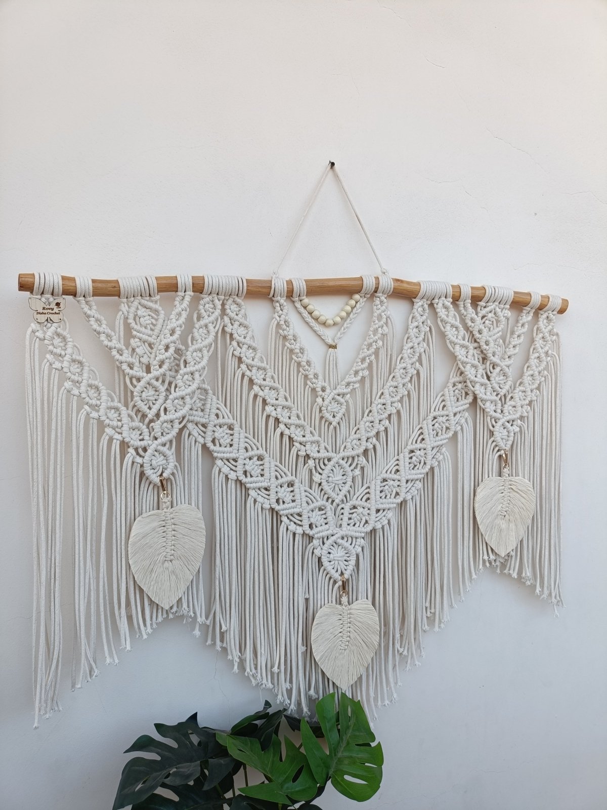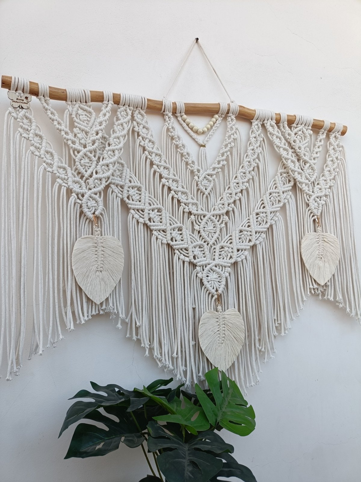 جدارية مكرميه بخيط الكوردون المستورده بفنش عالي جدا عرض متر وبها 3 ورق شجر حرفيا بتخلي المكان في حته تانيه خالص.