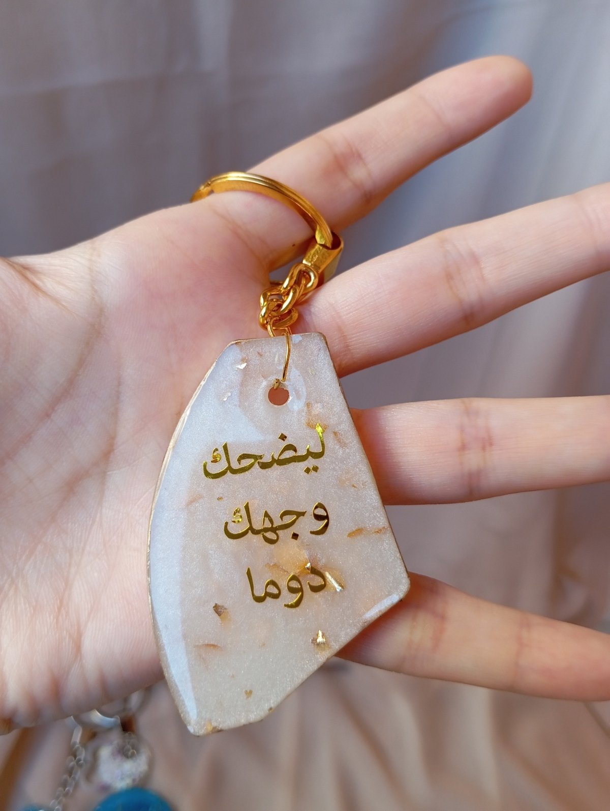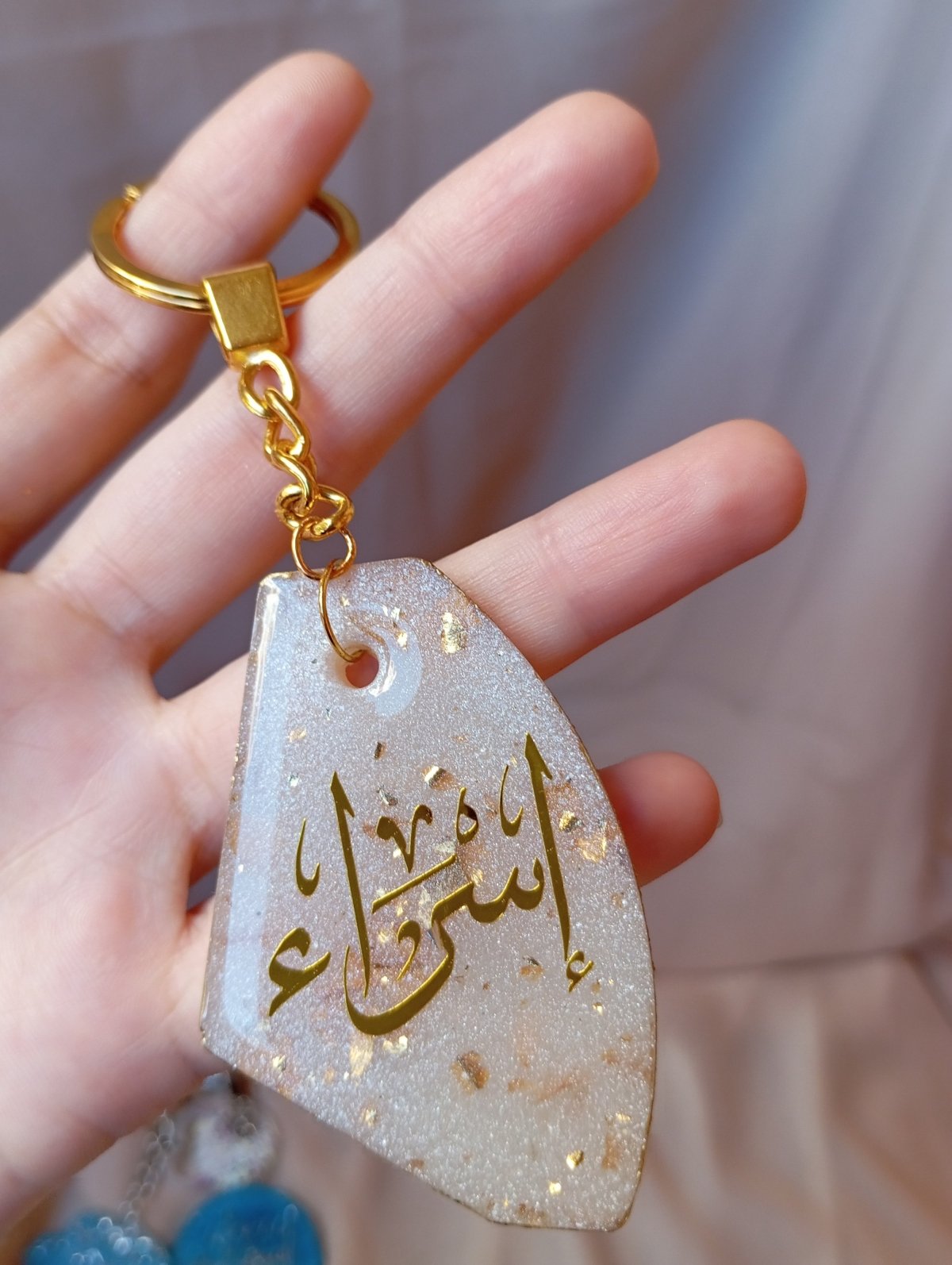 ميدالية ريزن وجهين باسمك باللون الابيض اللؤلؤى وورق الذهب مع حواف ذهبية